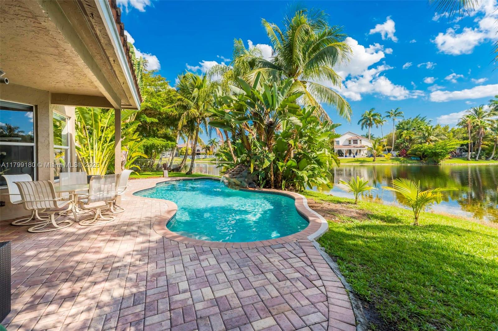 This 5-bed, 3-bath lakefront gem in Chapel Lake Estates offers a rare blend of privacy, comfort, and natural beauty. Enjoy a Private heated + saltwater pool, lush landscaping, a mango tree, and a tranquil waterfall, all with stunning lake views. Inside, find hardwood floors, fresh paint, updated lighting, and impact sliding doors that open to your private oasis. A full bedroom and bath downstairs make the perfect guest suite or home office. Set on a strategically positioned oversized lot, there's ample space to relax or entertain. Zoned for A-rated schools, with cable and high-speed internet included, plus parks and Chapel Trail Nature Preserve nearby.