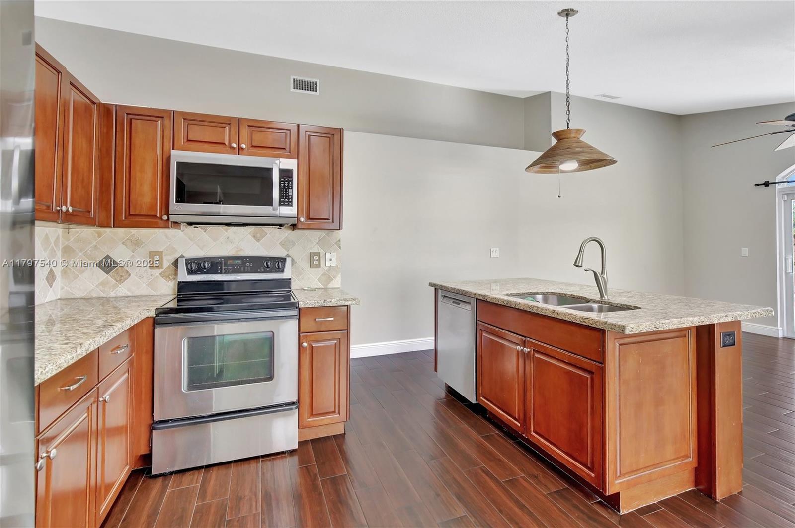 Welcome to your new home in SilverLakes Community. This well maintained home offers one of the larger floor plans in the desirable community of Coconut Key. The kitchen features an Island Breakfast Bar and room for a dinette. The formal living with the informal dining room room is separated by a an accent wall with bricks imported from the Chicago Fire. The private, fenced yard is perfect for entertaining as there are no homes at the rear of the propert. Amenities include a private pool at Coconut Key. The Roof is 2016. The SilverLakes amenities include a large pool, clubhouse, playgrounds, tennis courts, biking paths and more. Shopping, restaurants and YMCA is nearby. A Rated School and easy access to HWY 75. It's South Florida Living at It's Best.