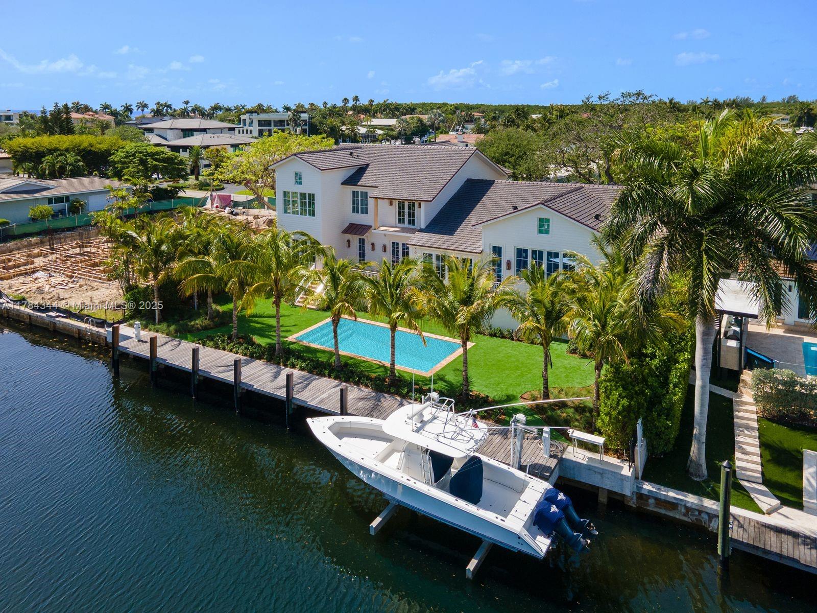 Gables by the Sea 100’ direct ocean access completely gutted, expanded & fully renovated 5bd 4.5 ba Modern Meets Cape Cod 6366 total sf elevated home on 12k waterfront lot. All new 4800 ac sf w/custom features including white oak wide plank floors, chef’s kitchen w/10’ Calacatta island, white oak cabinets, Sub-zero appliances,Wolf gas range, Butler’s pantry, formal & informal dining. Primary w/generous closet, marble wet room w/waterway views & balcony. Summer kitchen, palm trees surrounding htd saline pool. Lift-ready 4-car gar. All new: 100' seawall & 80' ipe wood dock, 25k lb boat lift, 2 dock towers 50/30 amp. Coral Gables premier ocean access guard-gated community w/top-rated schools, park, pedestrian-friendly tree-lined streets - a true community. Home to be finish ready by mid July