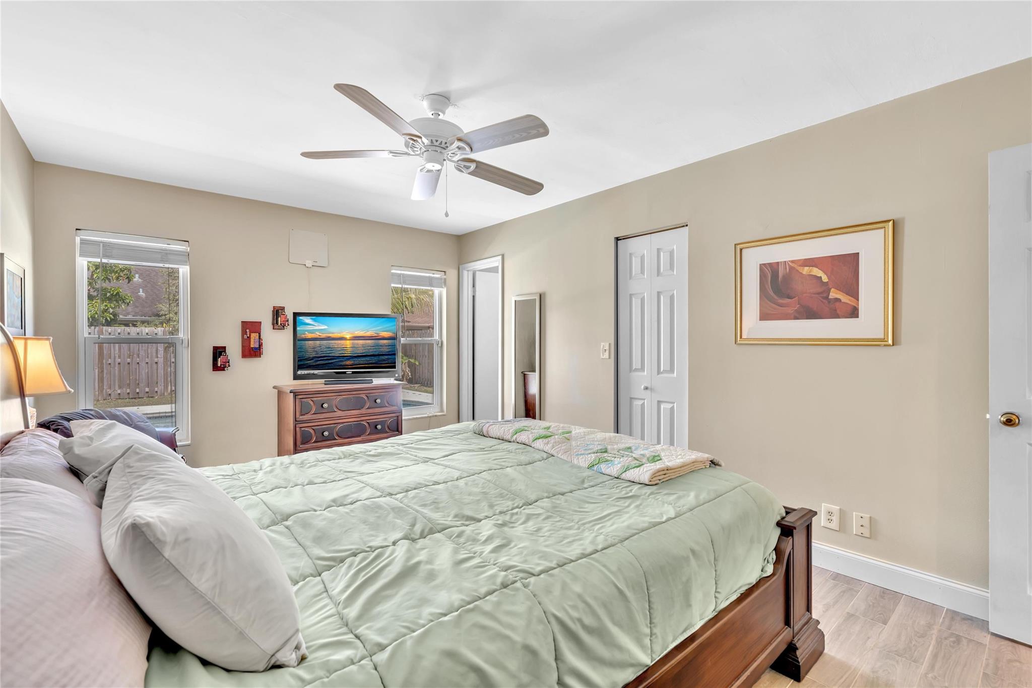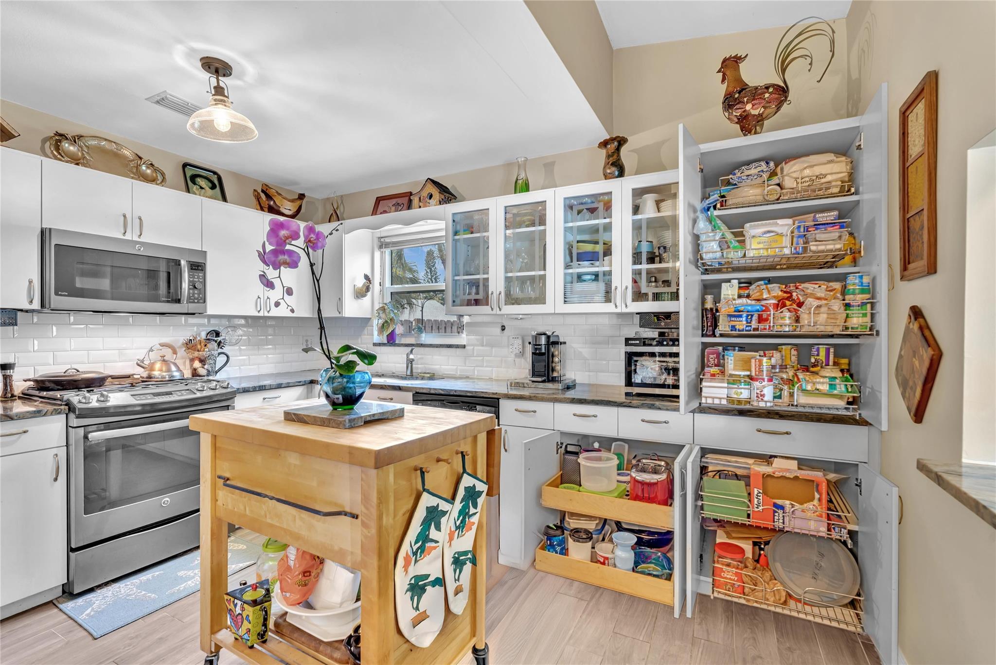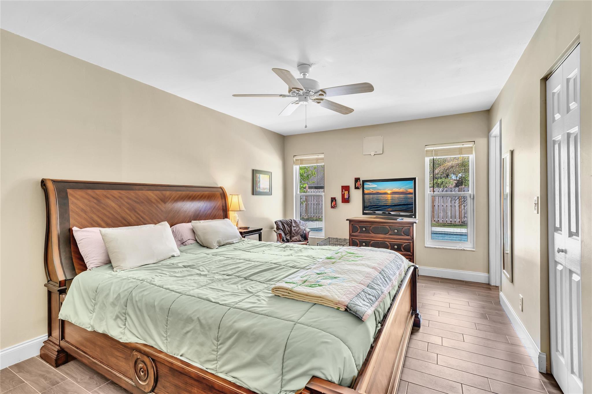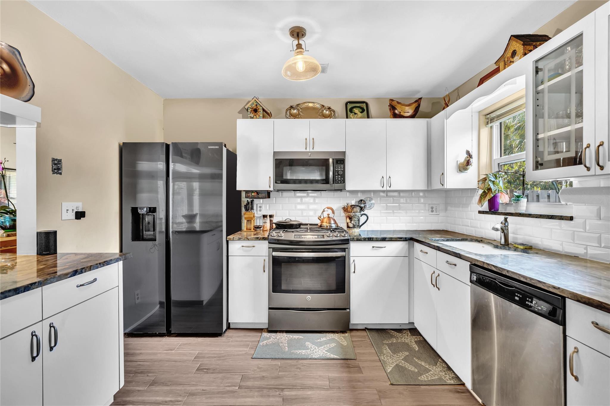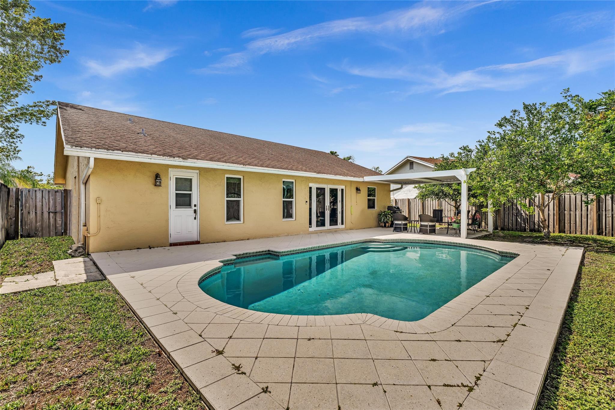 Perfect home for first-time buyers * move-in-ready * no remodeling needed! * 3 bedroom 2 bathroom pool home, 1 car garage, hurricane impact windows/doors throughout, beautiful inground pool with a fully fenced yard, room for RV/boat/trailer, newer central A/C and water heater, spacious kitchen with gas stove/cooktop, all new stainless steel appliances, granite counters, tons of storage with pullouts in kitchen cabinets, custom remodeled master bathroom, walk-in closet, guest bathroom has a jacuzzi tub, wood style ceramic tile floors throughout, large yard with fruit trees. No age/pet/parking restrictions. FHA/VA OK *** Please see broker remarks and MLS attachments