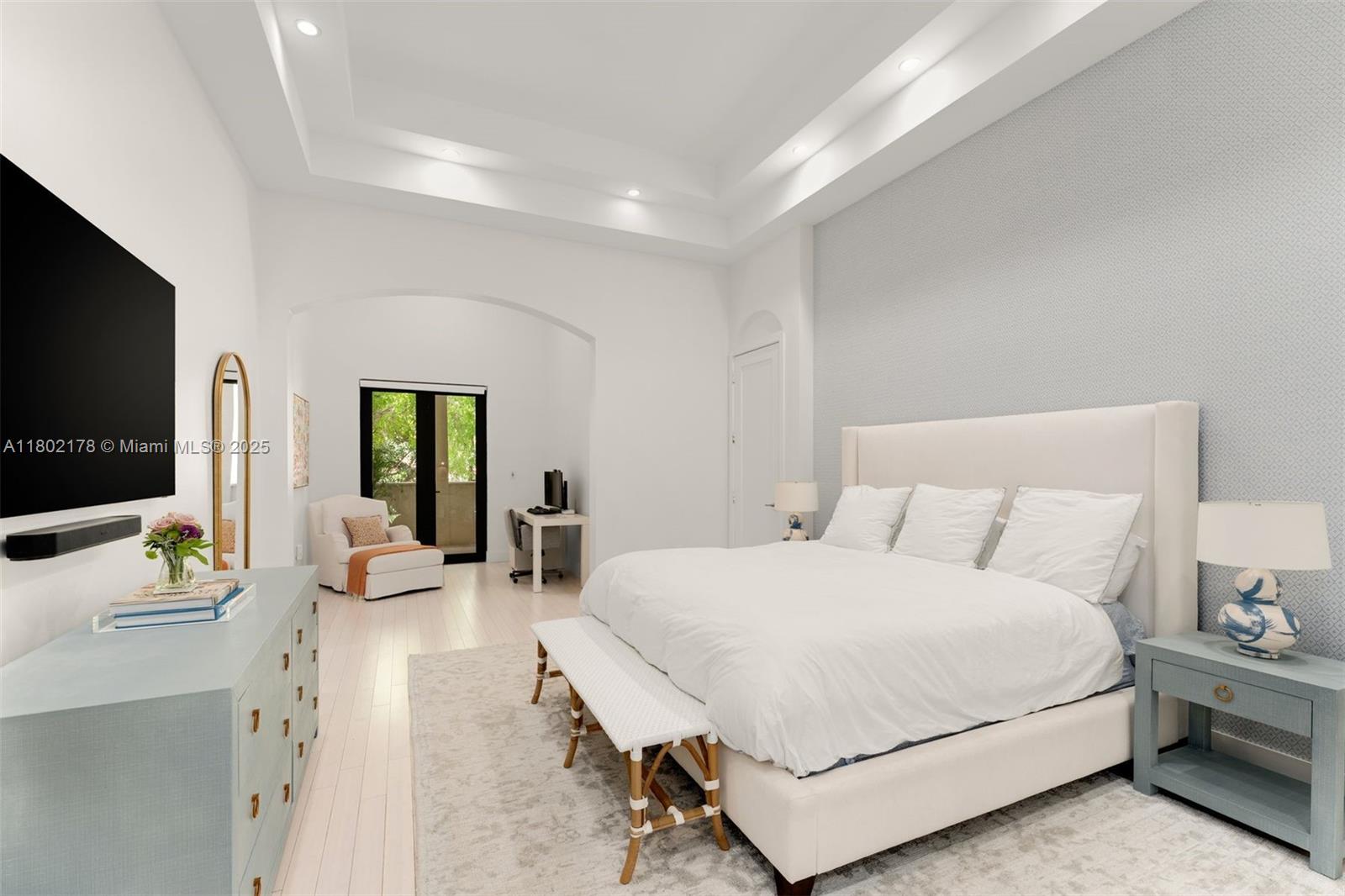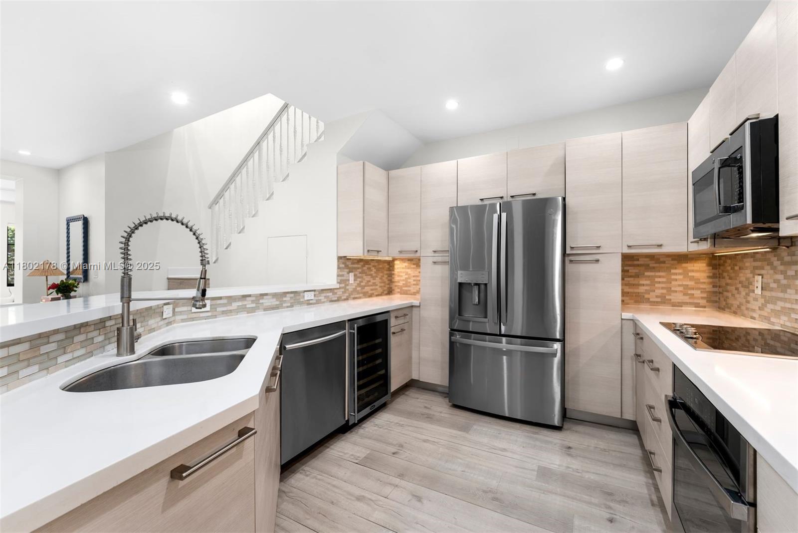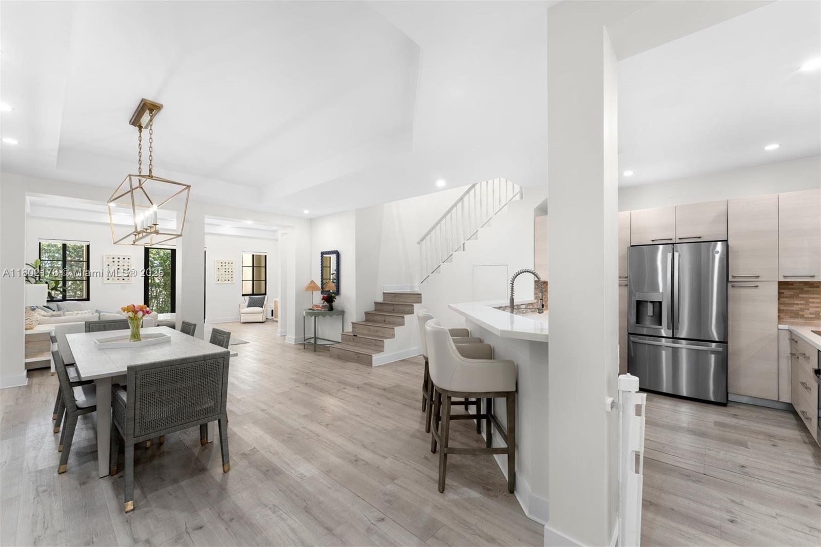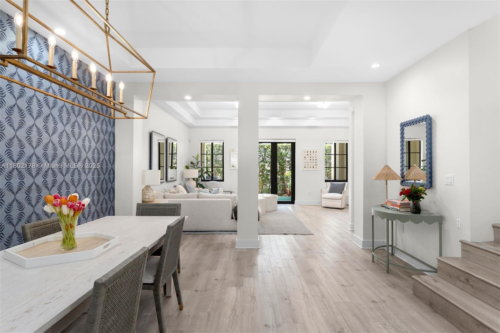 Located in the prestigious Palazzo Malaga, this 3BD/2.5BA townhouse reflects George Merrick's Spanish-inspired vision, blended with modern elegance. With 2,615 SF of refined interiors (3,593 total SF), it features soaring ceilings, bamboo and limestone floors, and an open layout ideal for both entertaining and daily living. The chef's kitchen offers quartz countertops, custom cabinetry, and GE/Samsung appliances. The expansive primary suite boasts two walk-in closets, a private balcony, and spa-like bath with dual vanities, Jacuzzi, and separate shower. Additional highlights include 2024 Carrier AC, impact windows and doors, concealed storage, upstairs laundry, covered terrace, front and rear balconies, and 3-car parking. Close to Miracle Mile, fine dining, parks, and boutique shops.