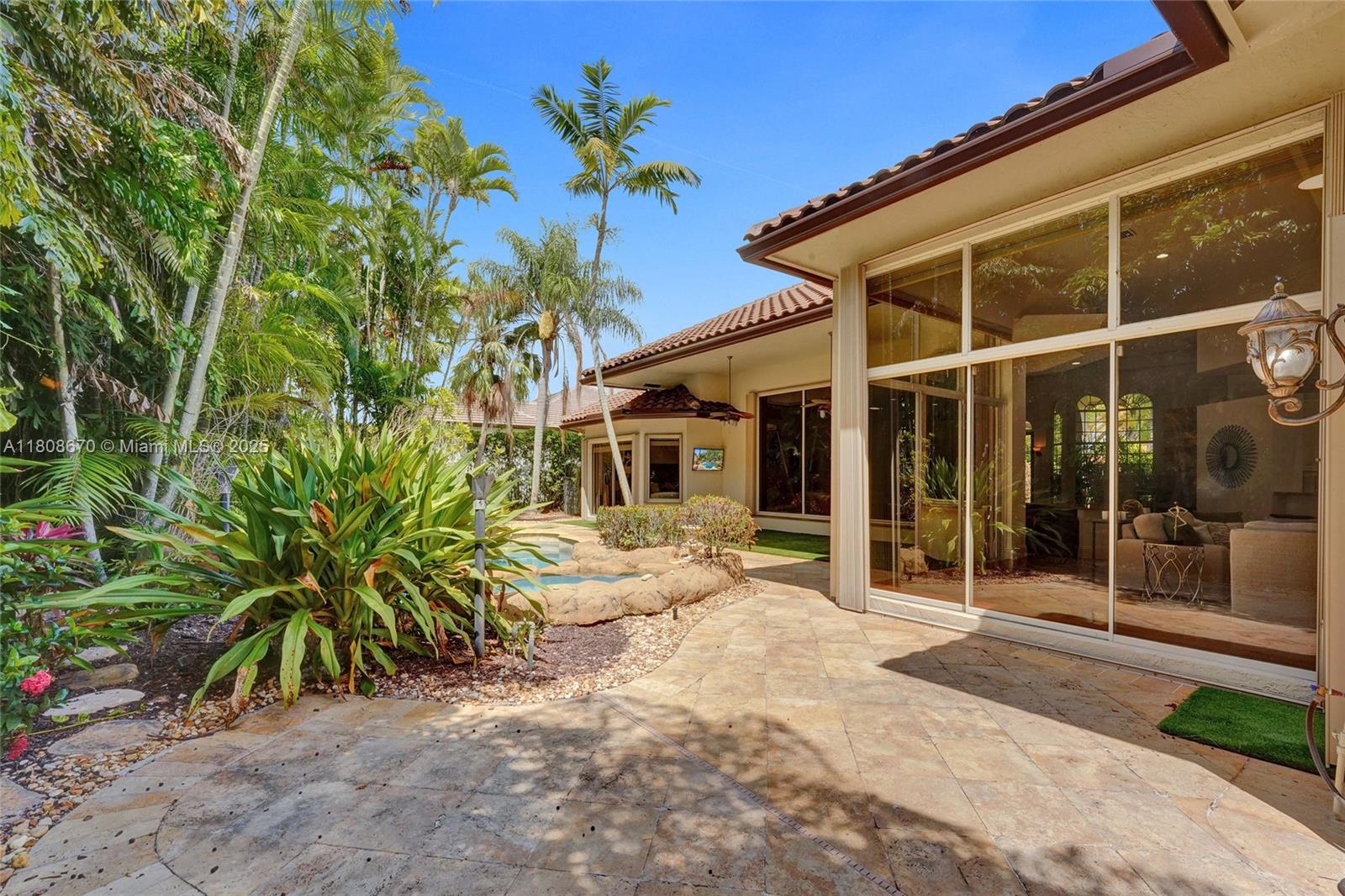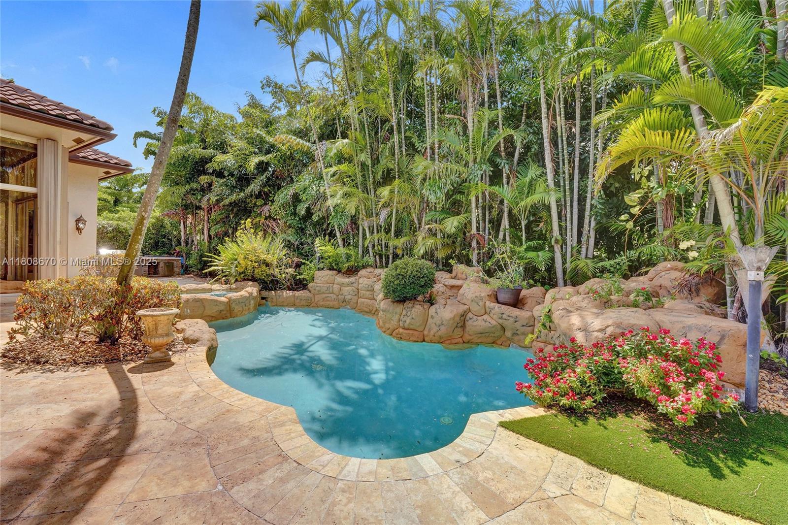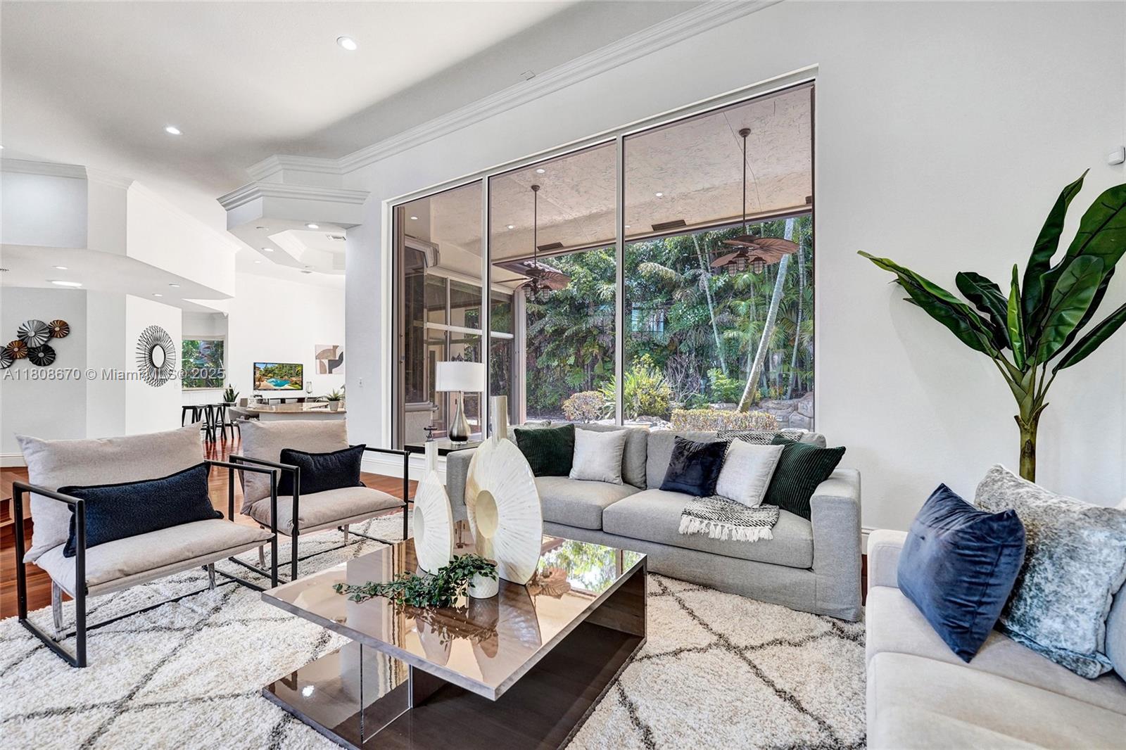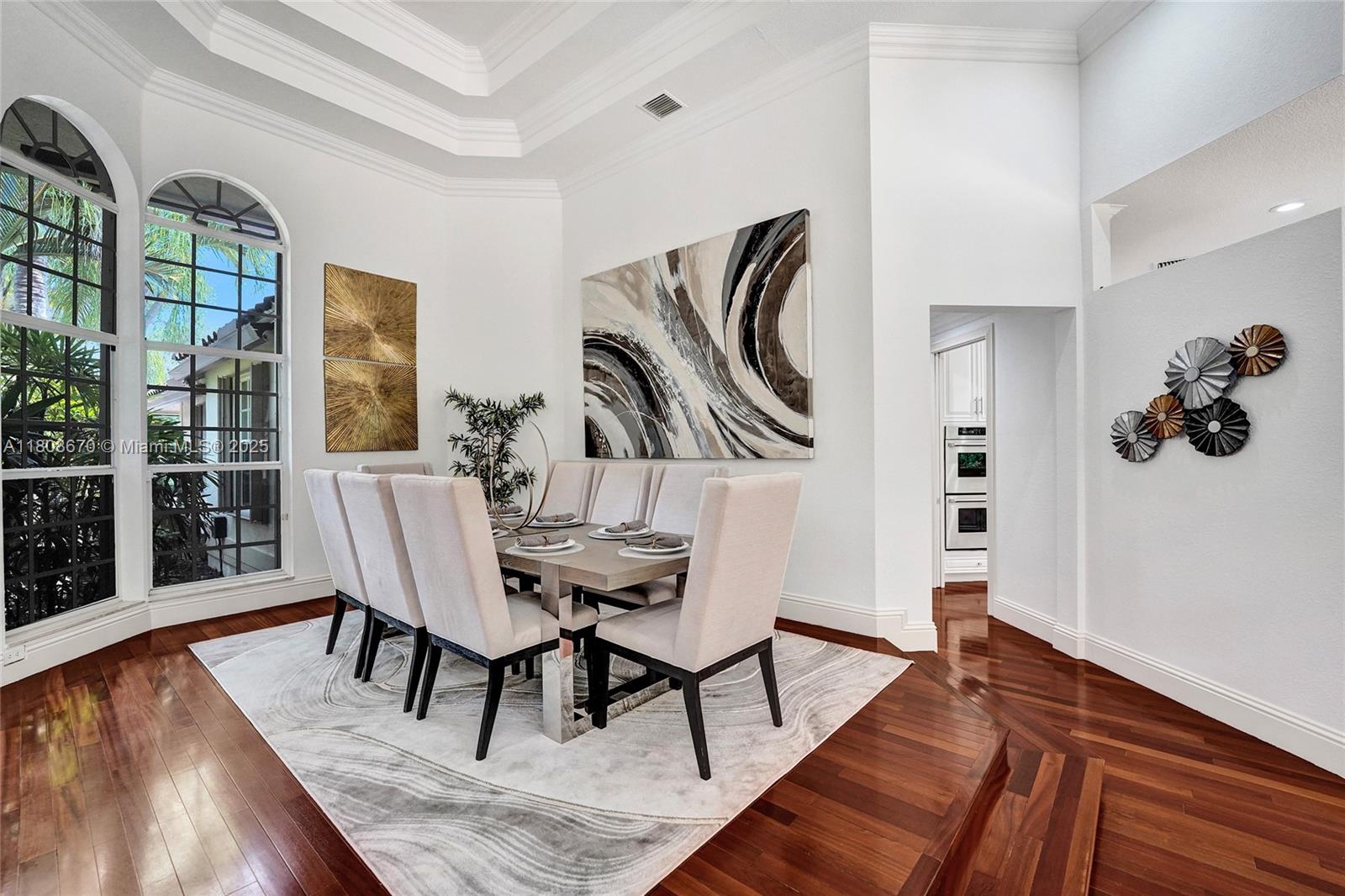 Set on beautifully landscaped 14418 sqft lot, this custom 3,818 sqft residence offers 2020 roof, paver driveway, and accordion shutters. Inside, rich wood flooring, fresh paint, and refined crown molding. At heart of the home, chef's kitchen showcasing white cabinetry, granite countertops, Sub-Zero refrigerator, and Thermador cooking appliances. Expansive primary suite is a retreat with tray ceilings, dual closets, spa-inspired bath, and direct access to backyard. Three additional bedrooms, private office, and 3.2 baths ensure ample space for family and guests, while thoughtful upgrades: LED lighting, cabana bath, and epoxy-finished garage. Outside, unwind in your own paradise: saltwater pool and spa framed by travertine deck. Perfect blend of luxury, function, and style!