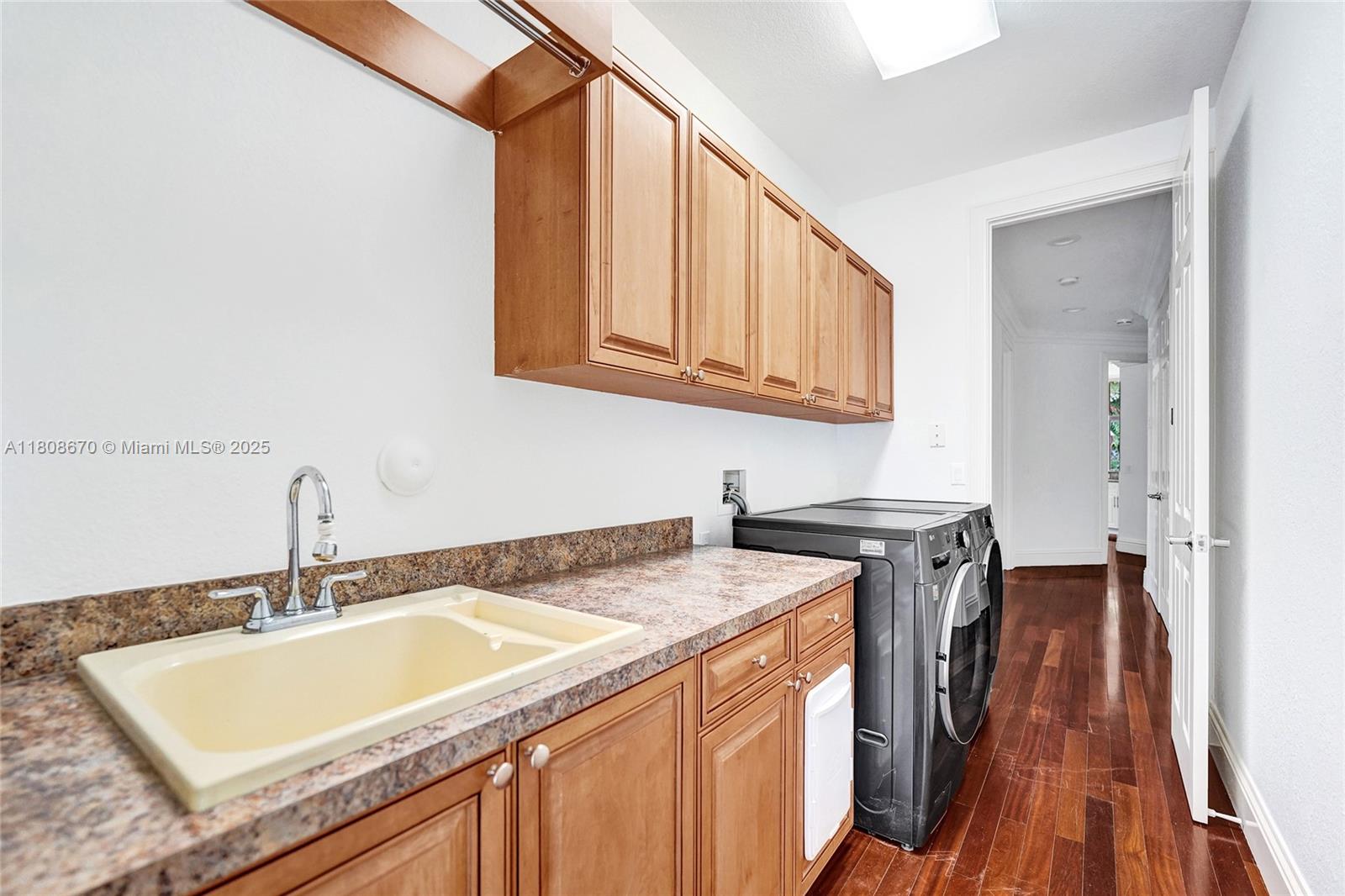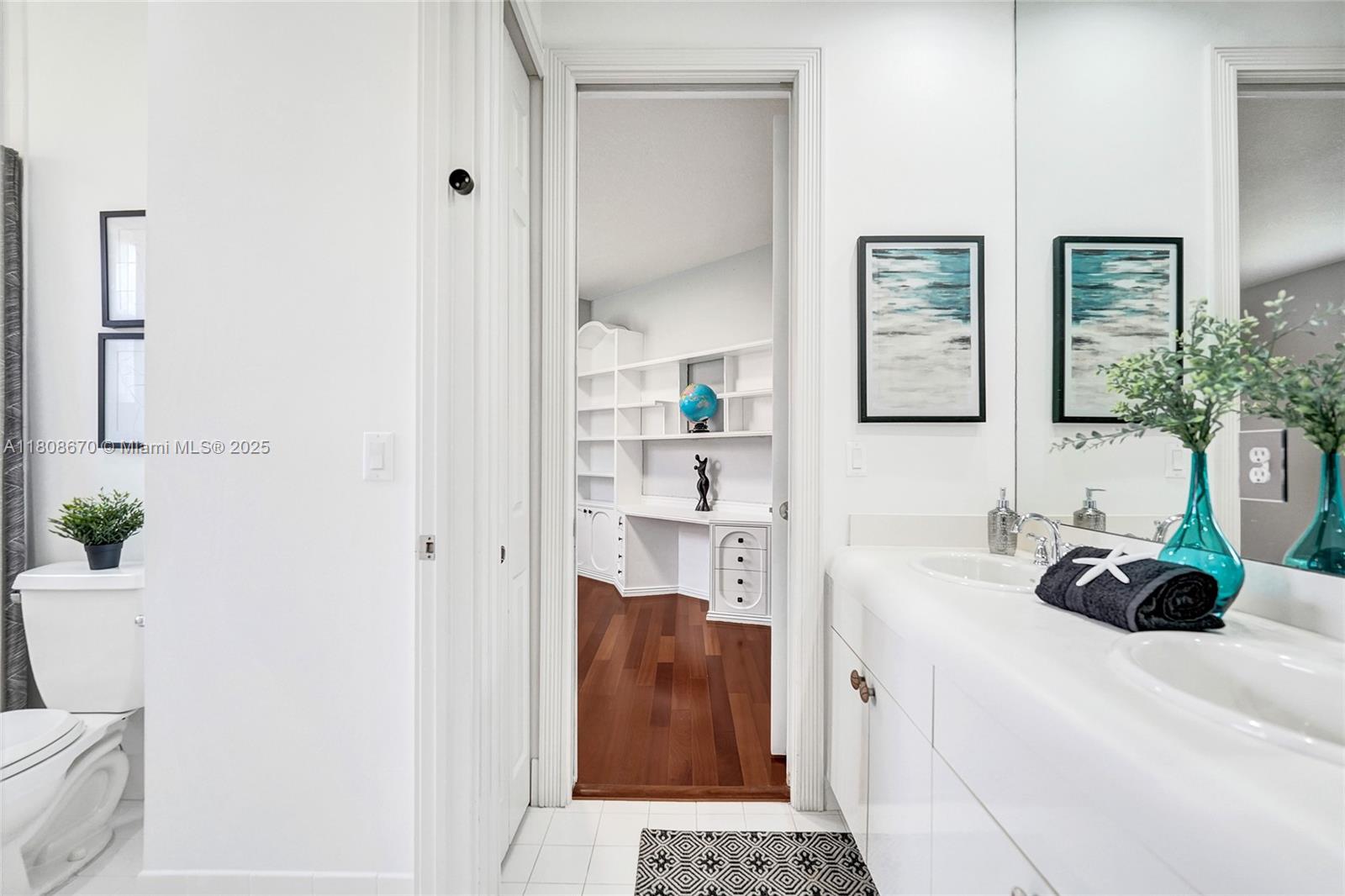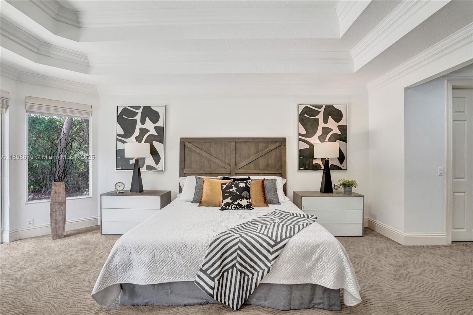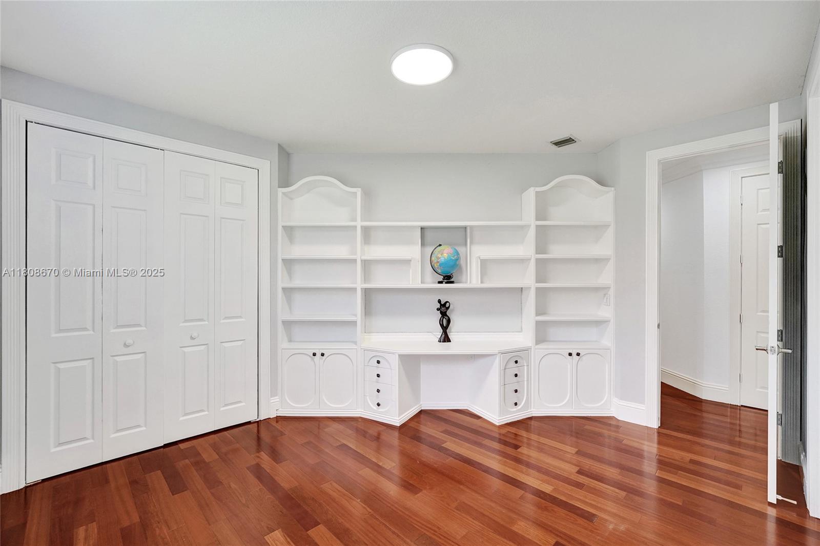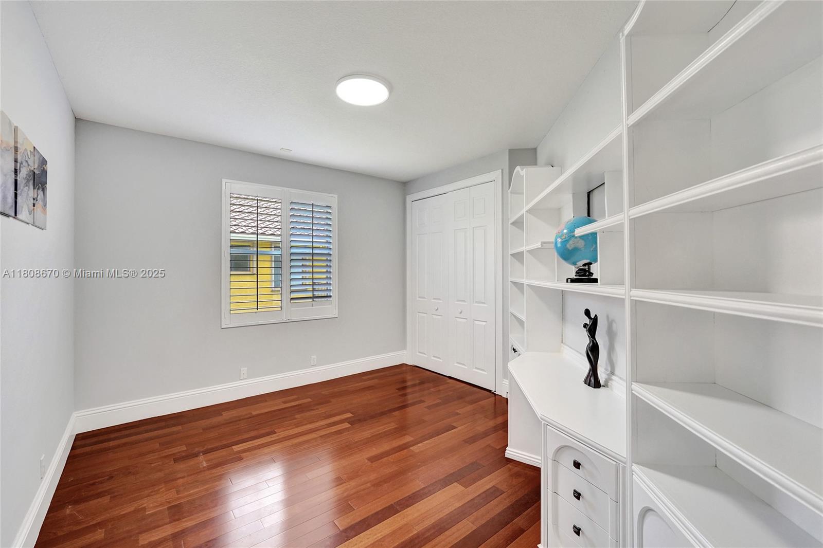 Set on beautifully landscaped 14418 sqft lot, this custom 3,818 sqft residence offers 2020 roof, paver driveway, and accordion shutters. Inside, rich wood flooring, fresh paint, and refined crown molding. At heart of the home, chef's kitchen showcasing white cabinetry, granite countertops, Sub-Zero refrigerator, and Thermador cooking appliances. Expansive primary suite is a retreat with tray ceilings, dual closets, spa-inspired bath, and direct access to backyard. Three additional bedrooms, private office, and 3.2 baths ensure ample space for family and guests, while thoughtful upgrades: LED lighting, cabana bath, and epoxy-finished garage. Outside, unwind in your own paradise: saltwater pool and spa framed by travertine deck. Perfect blend of luxury, function, and style!