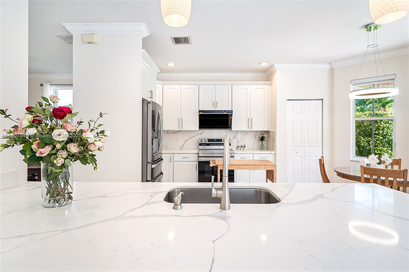 Impeccably maintained 5-bedroom, 4-bathroom residence located in the prestigious gated community of Savanna. This thoughtfully designed home features one of the community's most desirable layouts, offering expansive living spaces filled with natural light. The fully upgraded kitchen is appointed with quartz countertops, a generous center island, and stainless steel appliances. All bathrooms have been tastefully renovated with premium finishes. Recent upgrades include two newer A/C units (installed in 2024 and 2025). Positioned within a resort-style community offering a clubhouse, pools, sports courts, and more, and zoned for Weston's top-rated A-rated schools, this residence presents an exceptional opportunity at a highly competitive price point. First open house: 12--2 PM on 5/24.