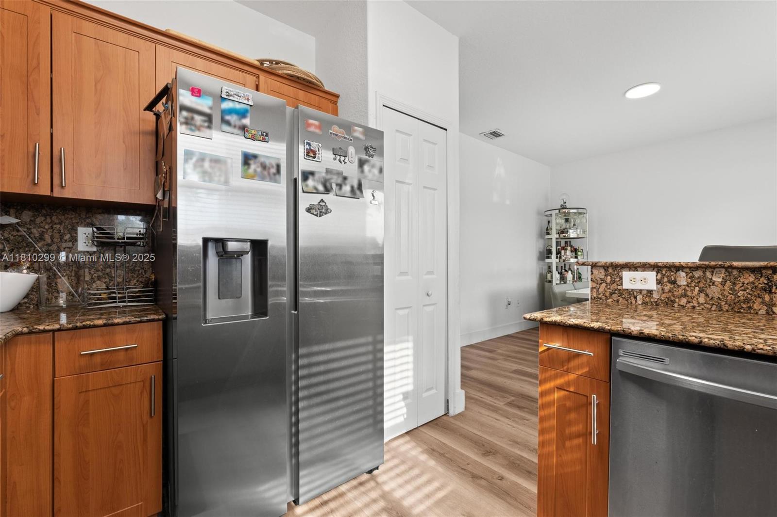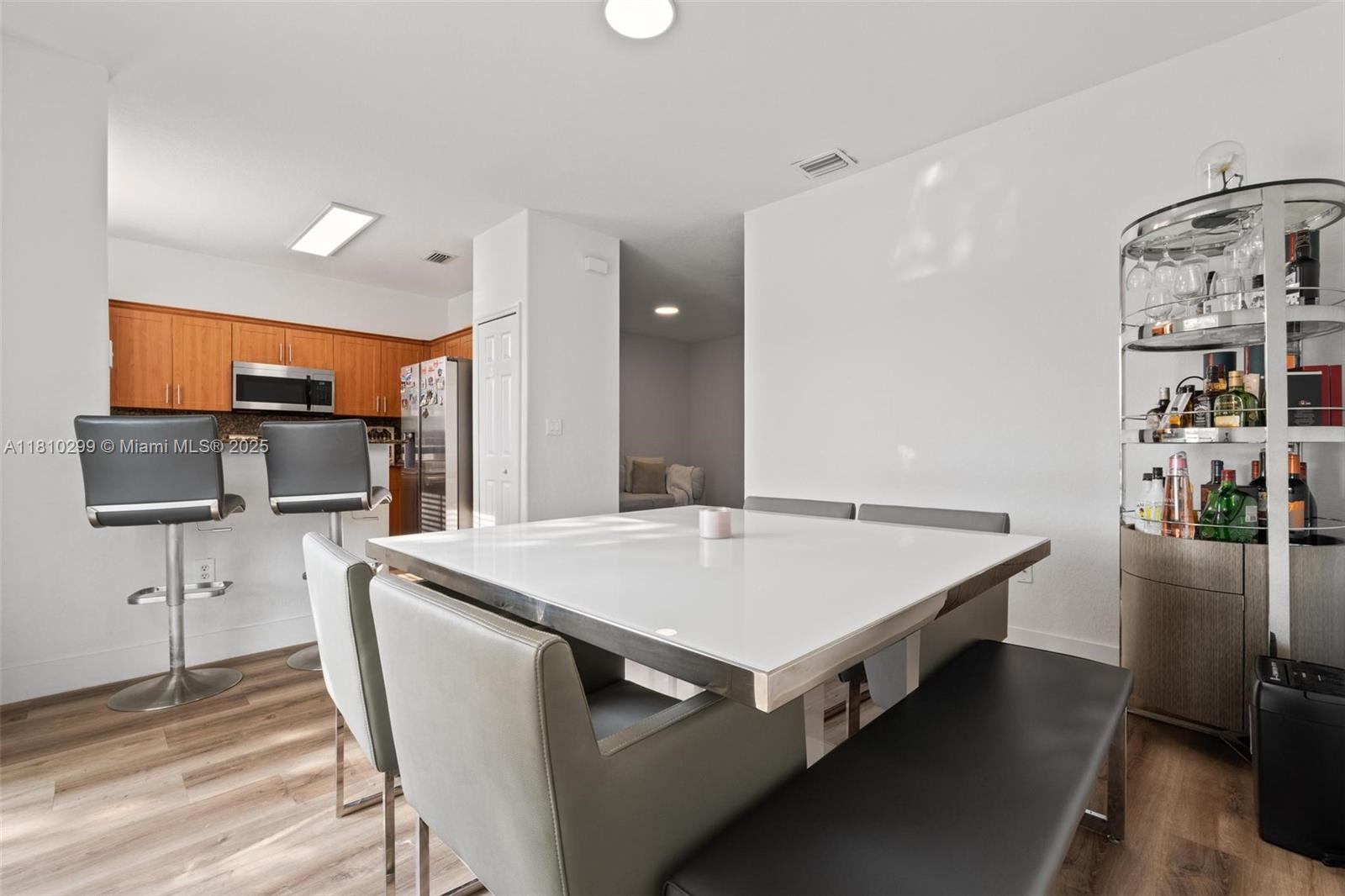 Discover this contemporary gem offering serene lake views and a low-maintenance patio, perfect for enjoying the outdoors without the hassle. Inside, you'll find stylish vinyl flooring throughout, leading to beautifully remodeled open spaces that create an inviting atmosphere. The gourmet kitchen, equipped with stainless steel appliances and modern finishes, is ideal for entertaining friends and family. Nestled in a vibrant community, this home boasts access to fantastic amenities, including a pool, clubhouse, children's playground, basketball and tennis courts, all while being just 3 minutes from the Florida Turnpike and 826 Expressway. Experience the perfect blend of luxury and convenience in this exceptional property, complemented by great schools nearby.