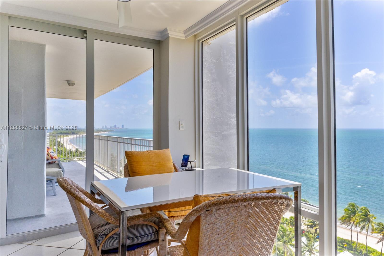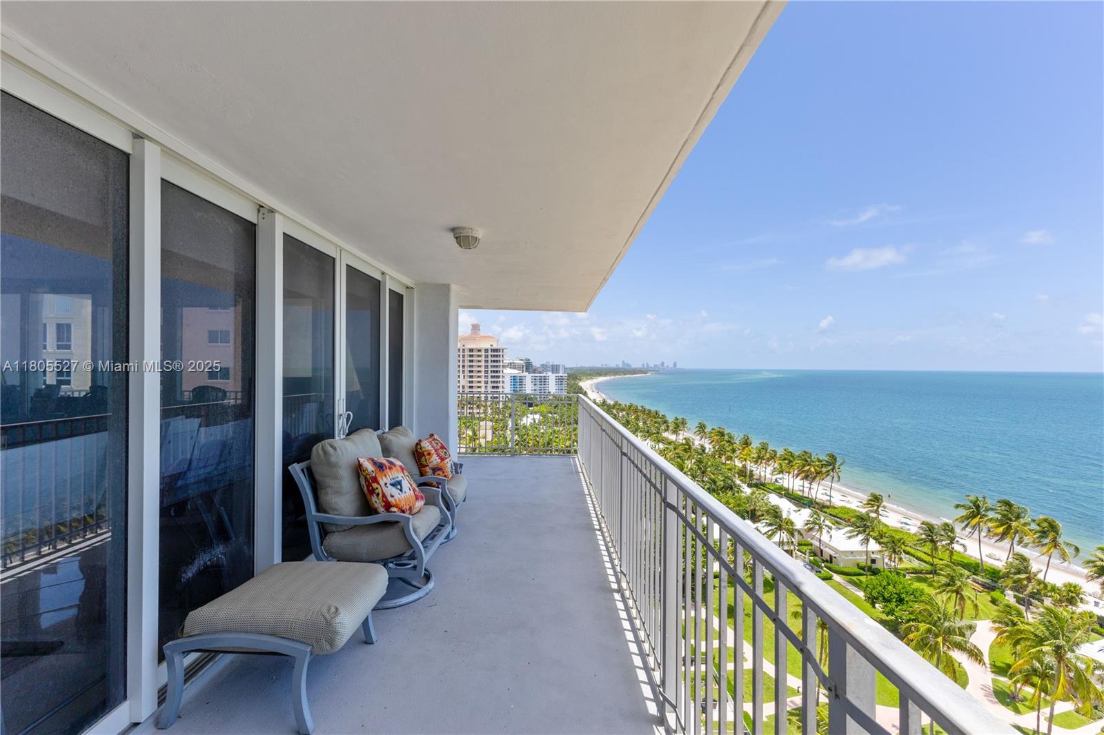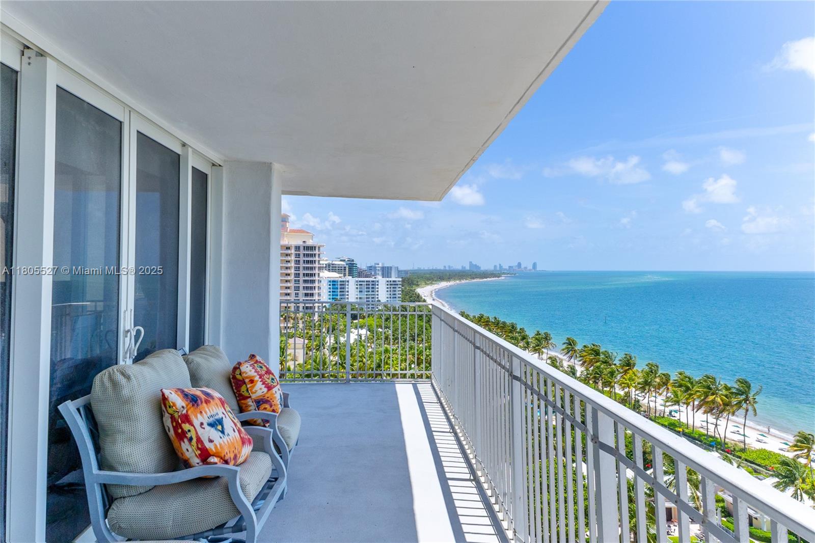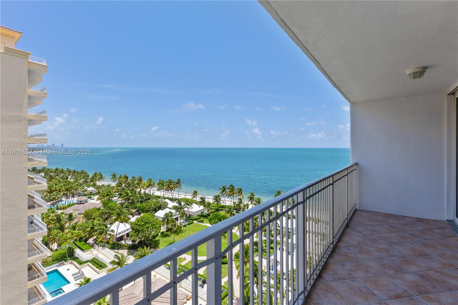 Spacious 3 bed / 3 bath corner unit with stunning, unobstructed views of the Atlantic Ocean, Downtown Miami skyline, and the pristine beaches of Key Biscayne. Enjoy sunrise and sunset from expansive balconies that wrap around this light-filled residence, offering the comfort and feel of a true home. Features include impact windows and sliding doors, private laundry area with trash chute. Direct elevator access opens into a private foyer shared with only one neighbor. Located in a prestigious, sought-after building with direct beach access and resort-style amenities: pool, tennis courts, gym, playground, party room, and 24/7 guard-gated entry. A must-see!