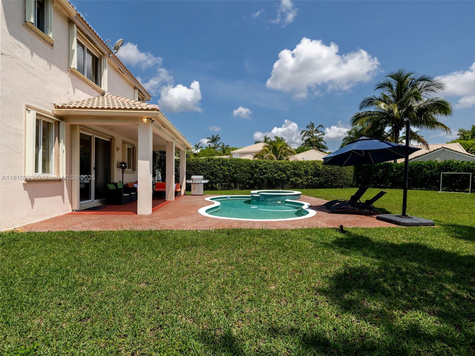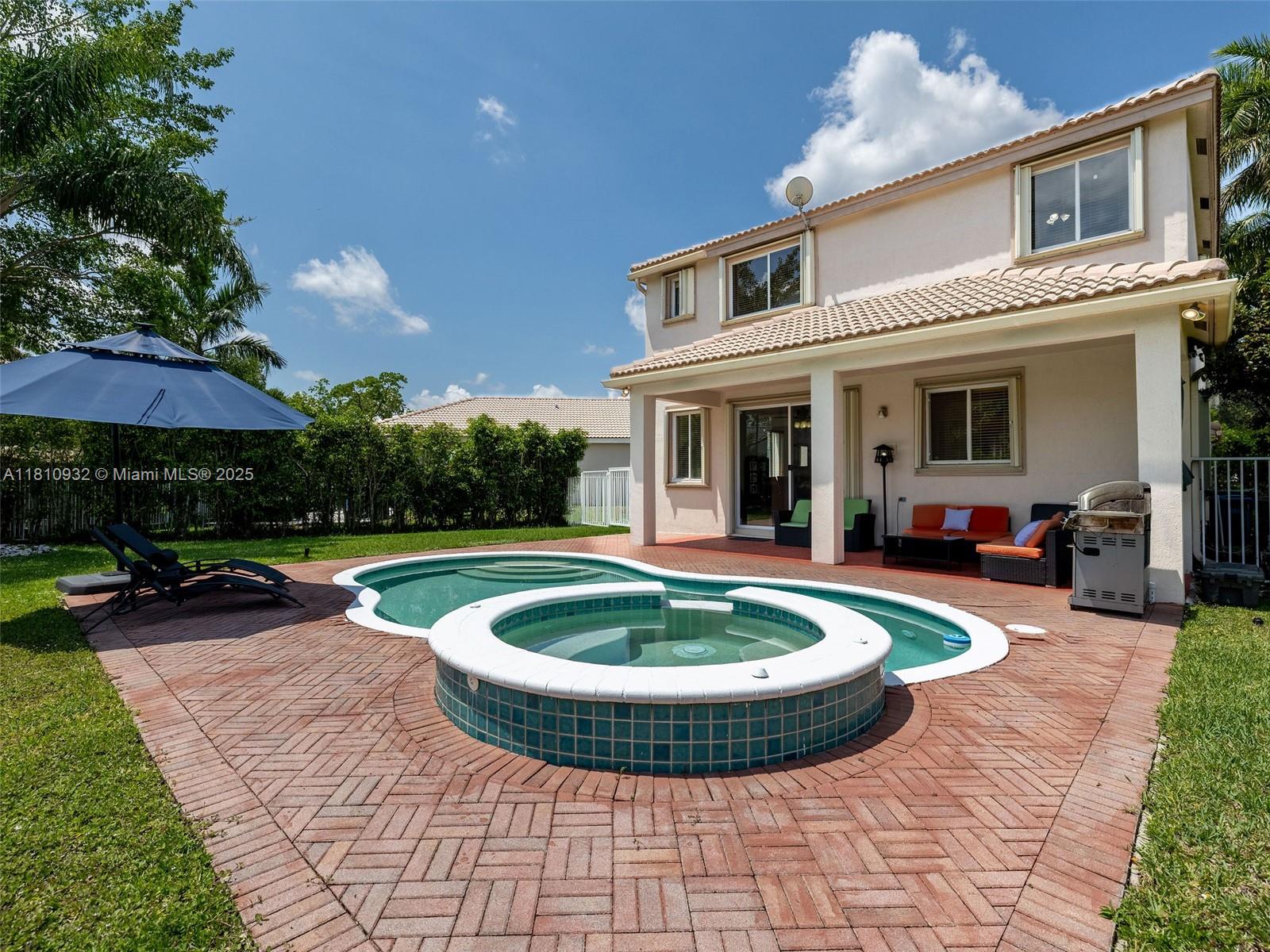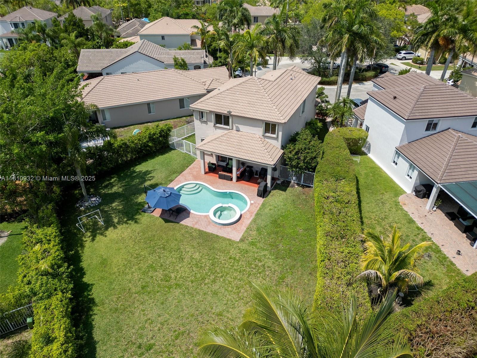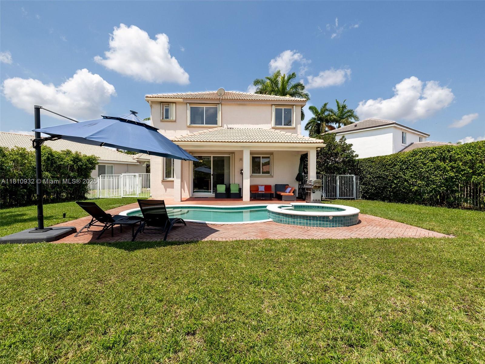 Discover this amazing property in Savannah, featuring an oversized pie-shaped lot. Featuring four bedrooms and 2.5 bathrooms, conveniently located on a cul-de-sac. The fully fenced yard boasts a paved pool area and a covered terrace. Inside, you'll find an open-plan great room, a dining area, and an eat-in kitchen equipped with stainless steel appliances. The first level has tile flooring, while the staircase and second floor are finished with wood laminate. Very nice-sized bedrooms. Accordion hurricane shutters.