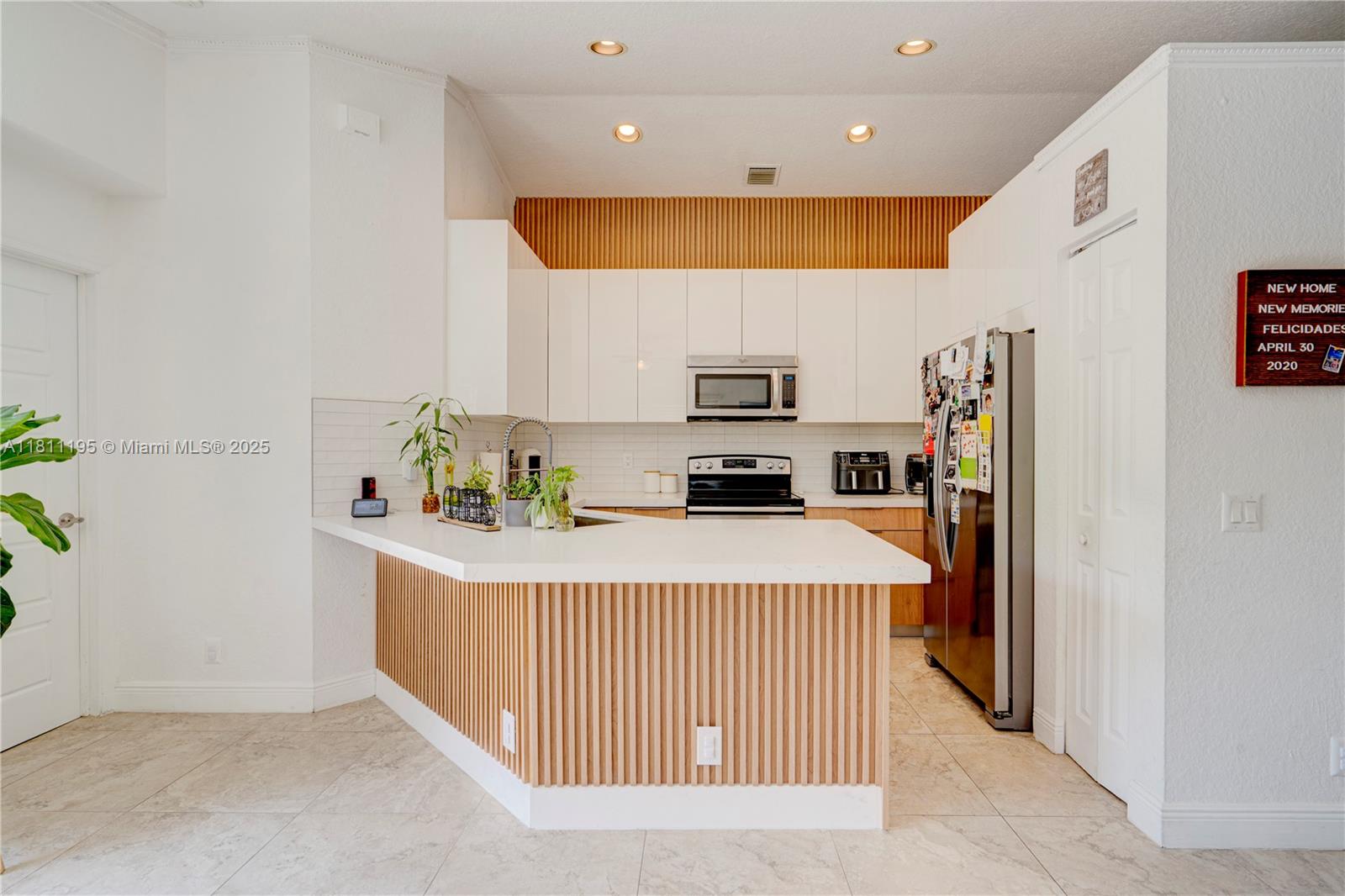 Beautiful home located in the highly desirable community of Savanna in Weston!. Great location and top-rated schools. The community offers a stunning clubhouse with pools, soccer fields, mini golf, party rooms, playgrounds, and more for the whole family to enjoy. The home features a recently remodeled kitchen with quartz countertops and warm wood accents, blending modern style with a cozy feel. Bright and full of natural light, it offers 3 bedrooms and 2 bathrooms all on one level. New doors, A/C unit from 2023, air ducts from 2021, new water heater (2023), and dishwasher (2024). Well maintained and a great opportunity to live in a prime area. No HOA approval needed. One-year rental restriction applies.