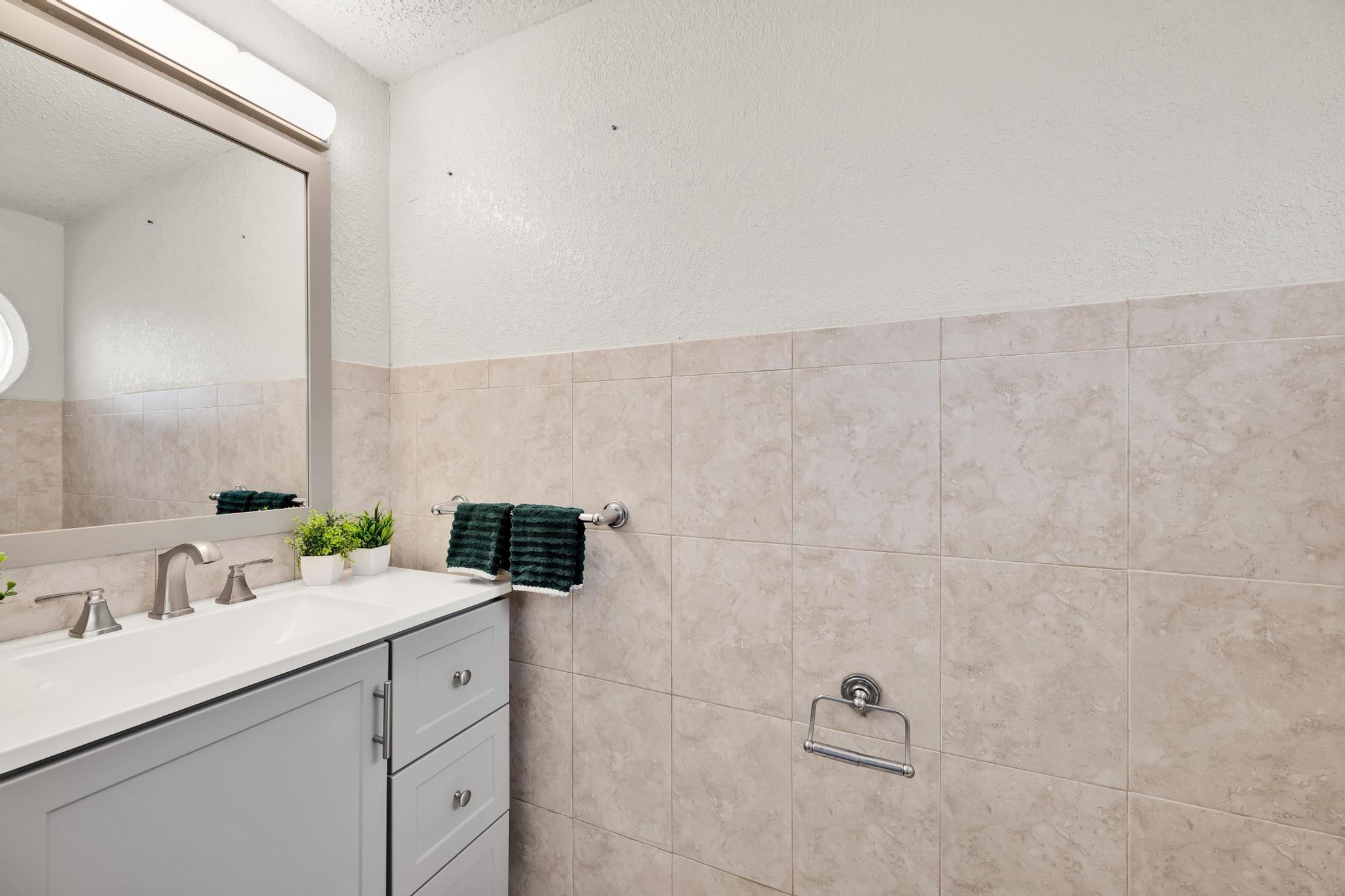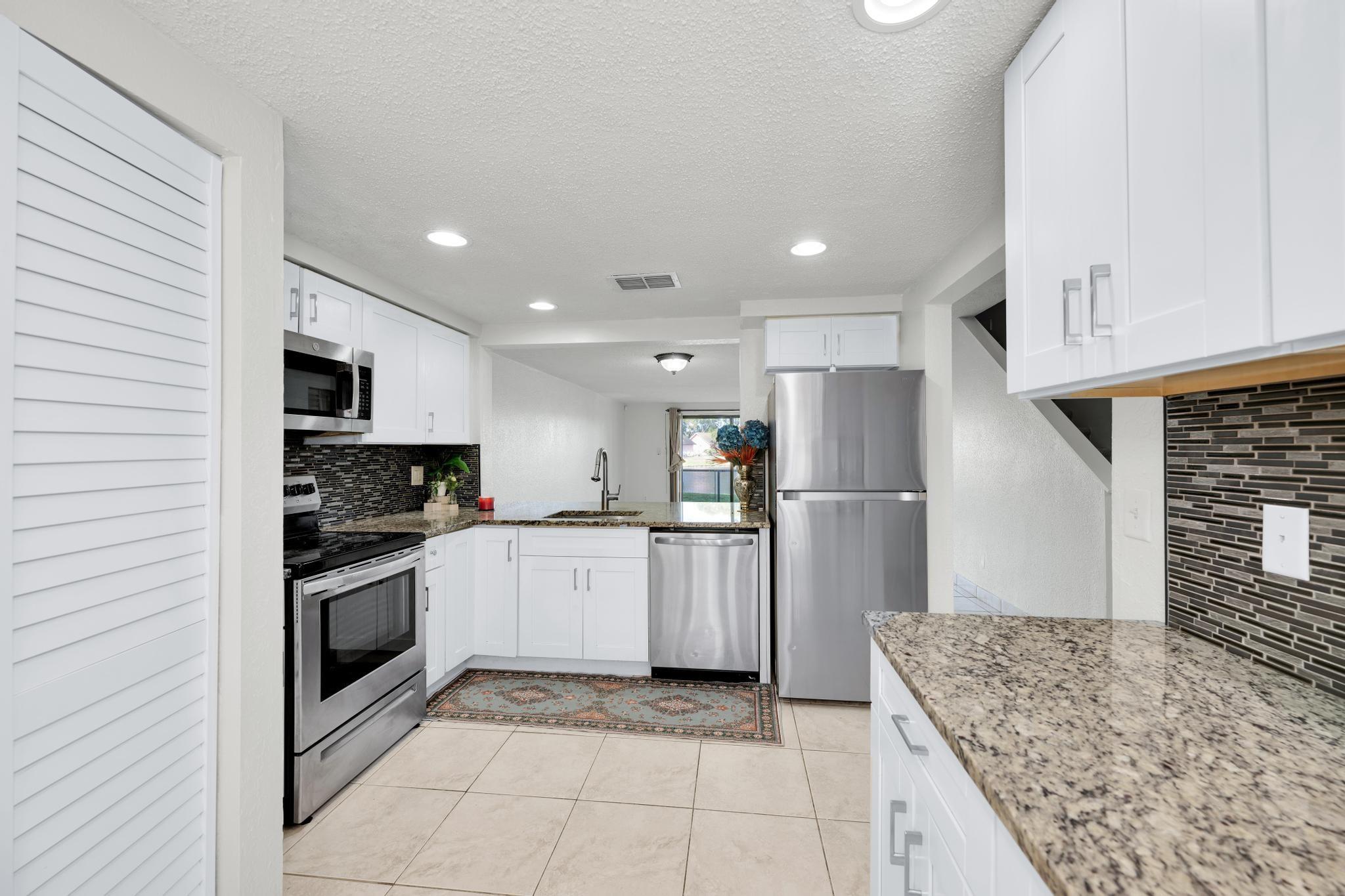 Renovated townhome with wide lake views in Sunblest Townhomes. Everything has been tastefully upgraded. Move-in ready. Seller offering concession for closing costs or interest rate buydown. Save $$$$. Buy with confidence. Call now! Spacious kitchen offers granite countertops & self-closing Shaker cabinetry & drawers, SS appliances, deep SS sink & more. Bathrooms are elegantly appointed. Large stone-look porcelain tiles & modern baseboards upstairs. Hurricane protection: high impact windows & accordion shutters for entire patio. New paint for interior, porch & patio. The A/C is 4 years old. All plumbing replaced. Full size washer & dryer. Good location close to highway, shopping, Sunrise Sportsplex & schools (one block away). Community pool, playground & more. HOA is pet & investor friendly