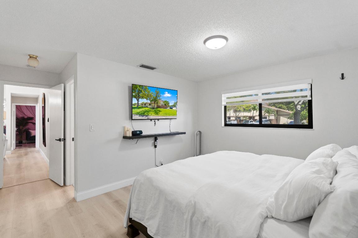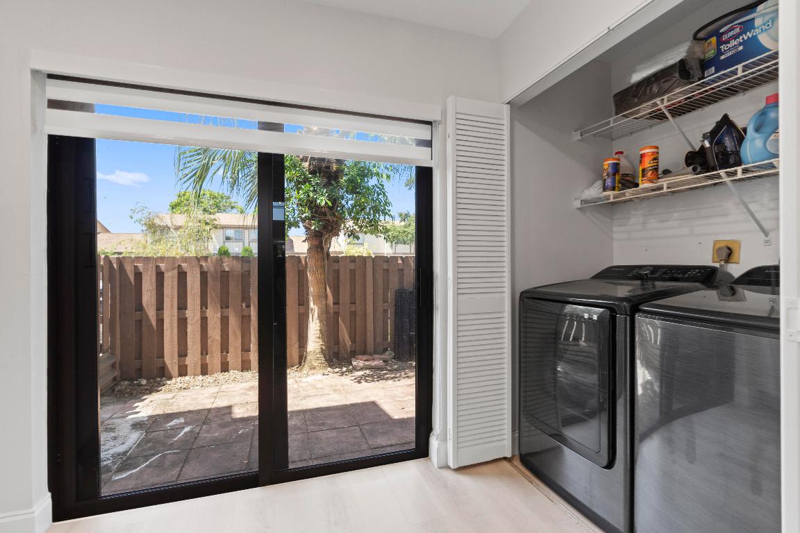 Come see this beautifully renovated, move-in ready, 3-bedroom, 2-bathroom corner townhome! This modern home offers an open floor plan, vaulted ceilings in the great room, and large windows with sliding glass doors that flood the space with natural light. Custom zebra blinds have been thoughtfully installed on the windows. The fully updated kitchen features wraparound quartz countertops, soft-close white cabinetry, subway tile backsplash, and a deep 10-inch black stainless steel sink with air-push disposal. The home boasts stylish waterproof grey-toned laminate flooring, updated lighting, remodeled bathrooms, and a cozy electric fireplace for added ambiance. Enjoy peace of mind with brand-new roof, newer water heater, impact windows and doors, and a full-size washer and dryer.