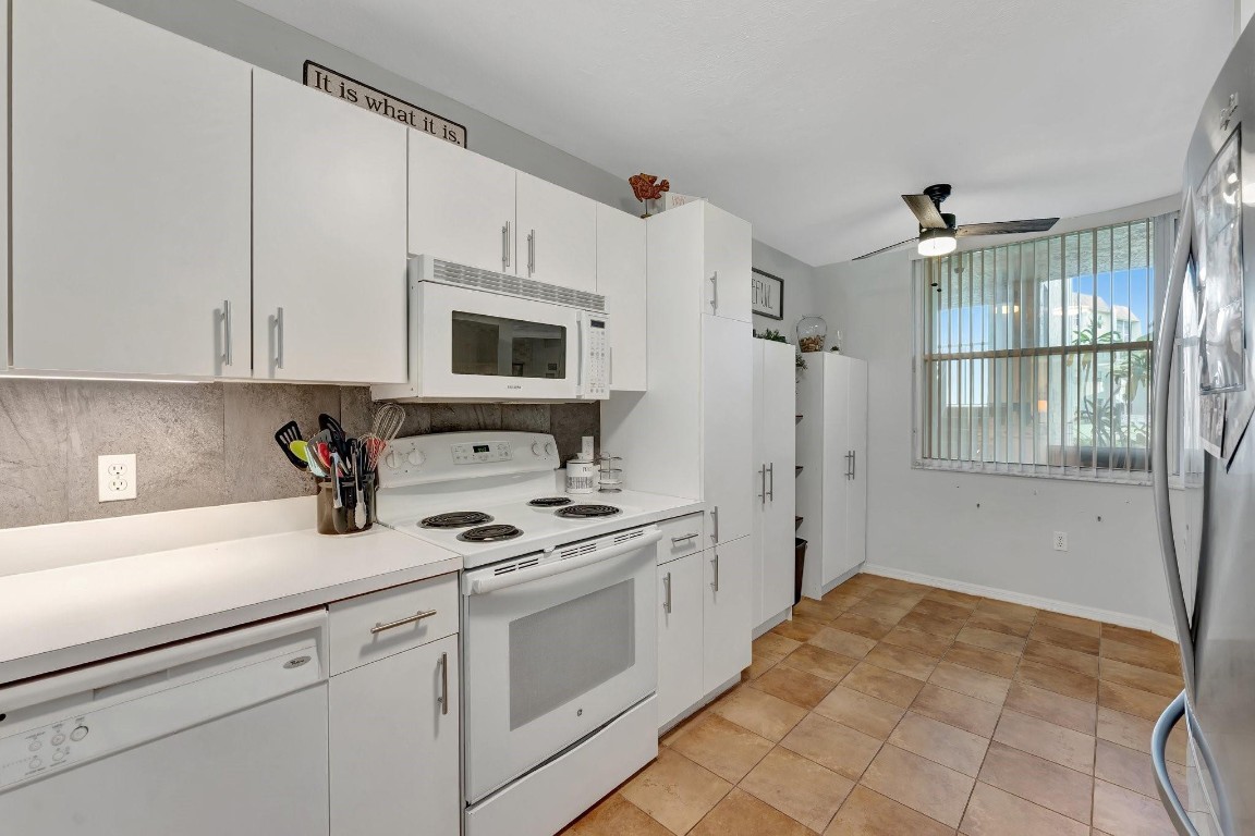 Welcome to your dream retirement home in the heart of Sunrise Lakes! This rarely available first-floor corner unit on the golf course is a spacious 3-bedroom, 2-bathroom home. It offers first-floor convenience, golf course views from your private patio, reserved parking just steps from your front door, and plenty of natural light. Both bathrooms have been remodled. Washer and dryer in the unit! Maintenance includes water, sewer, garbage, and internet. Golf is $10 a year. The recreation fee covers 5 pools, activity centers, a gym, theater, and golf course maint.