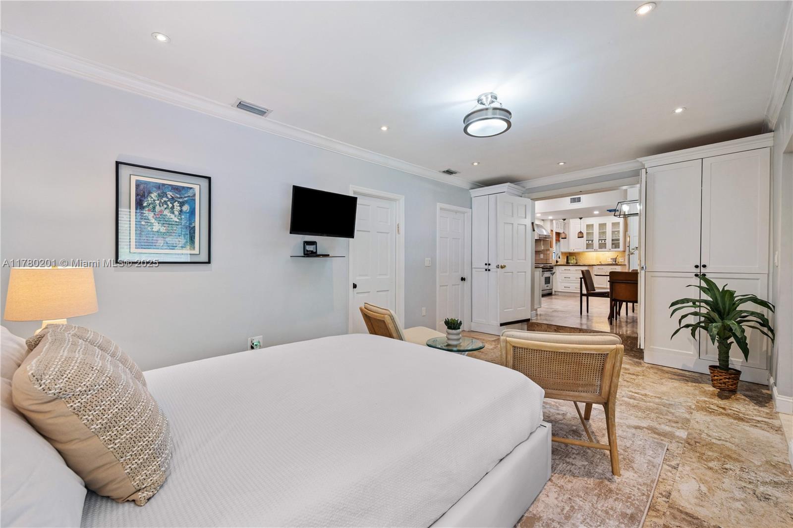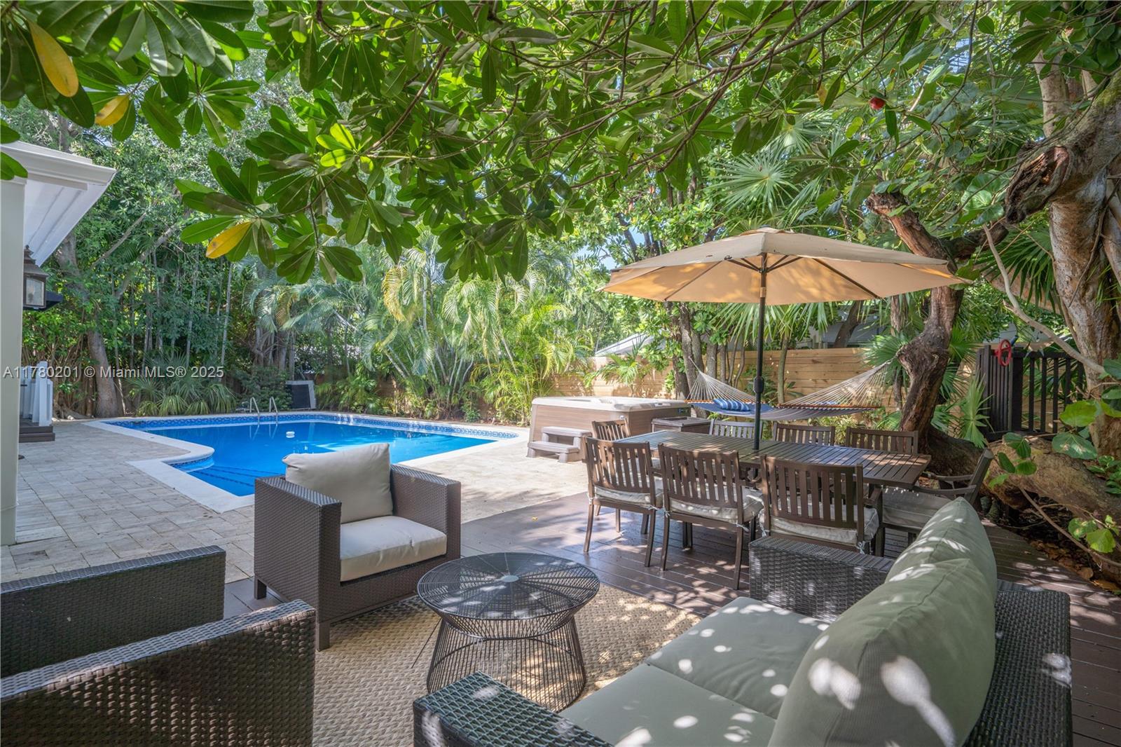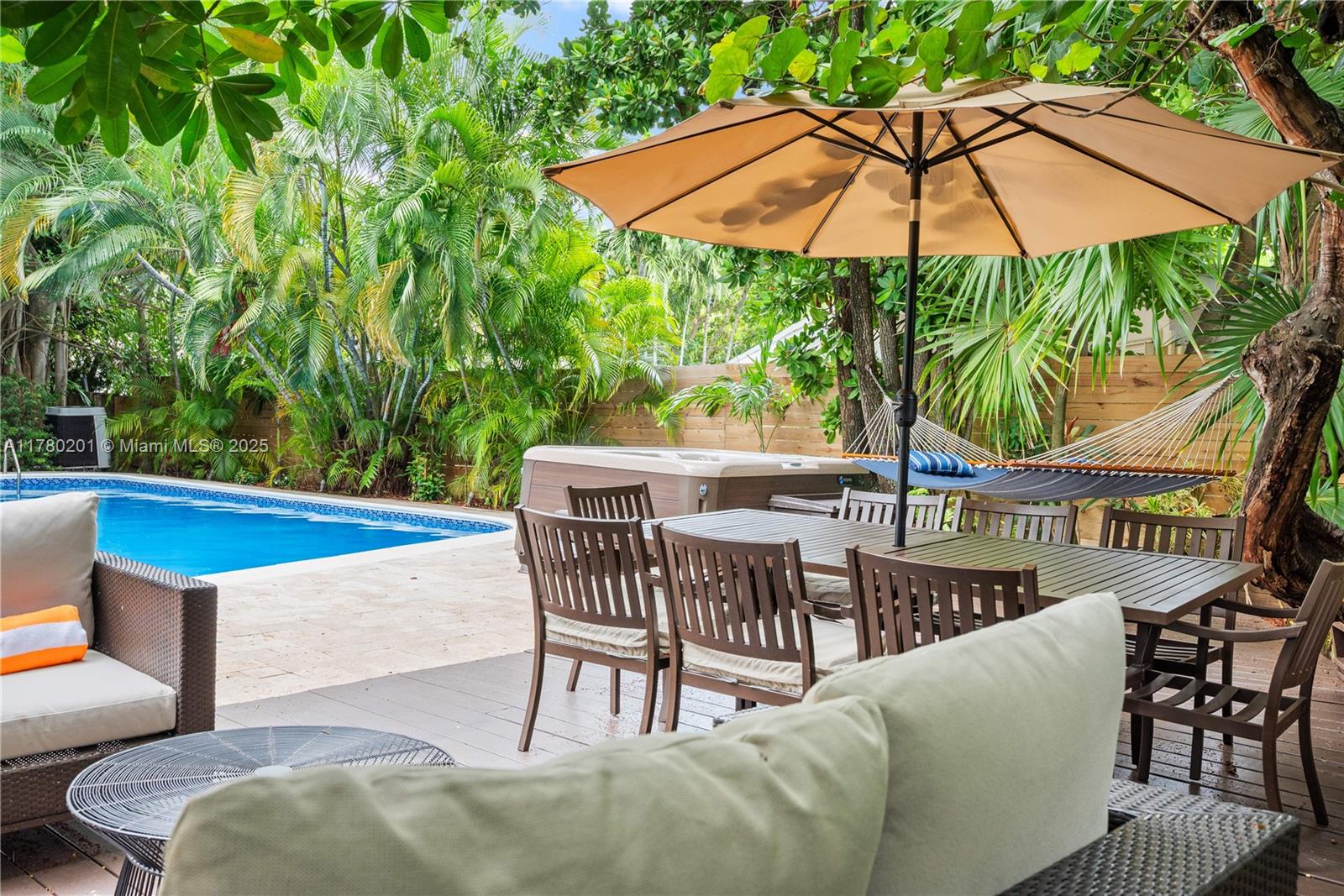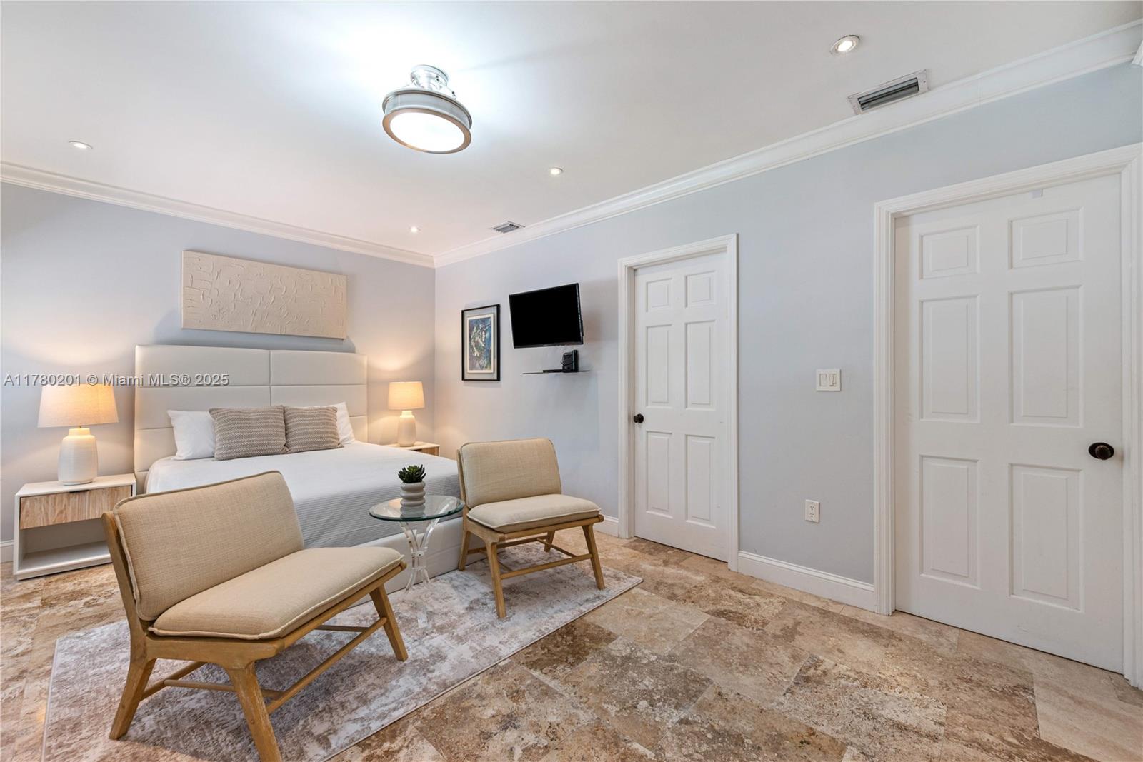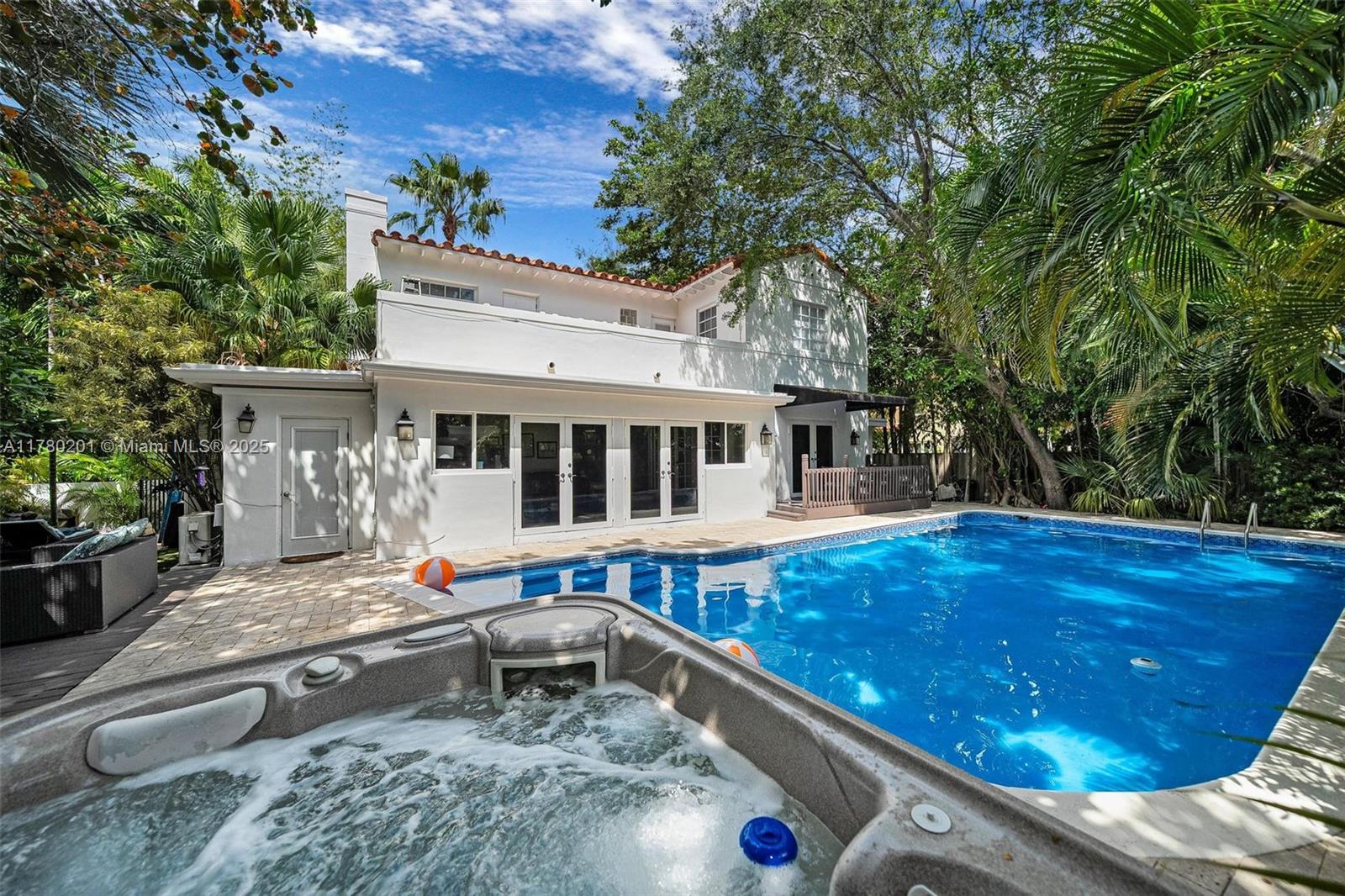 Spanish Mediterranean home set on a lush and spacious 9,680 SF lot with 3,325 SF of living space. This residence offers 5 bedrooms, 4.5 baths, a newly renovated gas kitchen, an upstairs balcony, a cozy den overlooking the backyard, and a downstairs bedroom with a separate entrance—perfect for an office or in-law suite. Step outside to your private resort-style oasis with a newly rebuilt heated pool, 6-person spa, tree house, play area, cabana bath, breakfast patio, and multiple outdoor living and dining areas nestled among mature trees. Located on a quiet, one-block street in the heart of Mid-Beach, this home blends classic charm with modern comfort. Minutes to the beach, parks, houses of worship, restaurants, JCC, and North Beach schools.