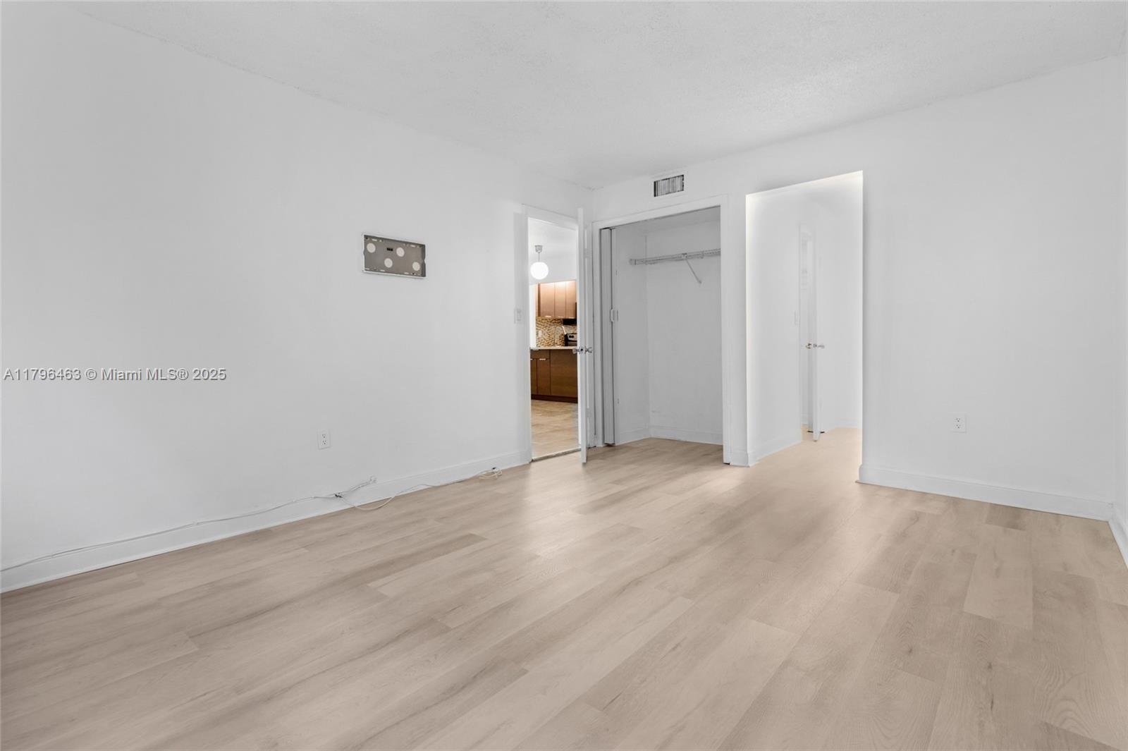 Vacant and easy to show! This spacious 750 sqft 1 bedroom, features a DEN area, excellent for an office space, kid room or extra-large closet. Freshly painted with brand new flooring in bedroom, den and closets. Speaking of closets, this unit has 4 of them! Updated kitchen with SS appliances. Open and private balcony facing North. Gated community comes with an assigned parking space, elevator and laundry room next to unit.