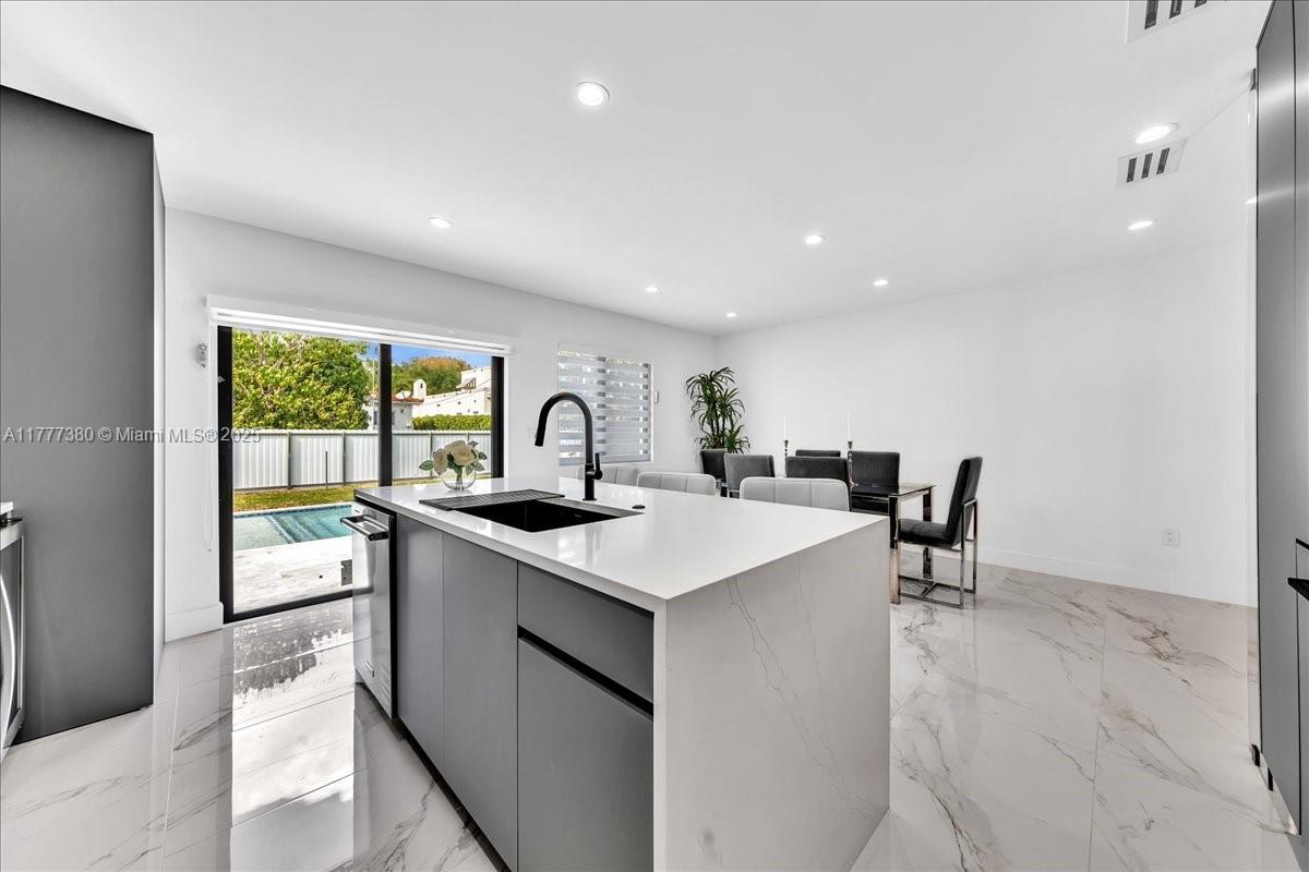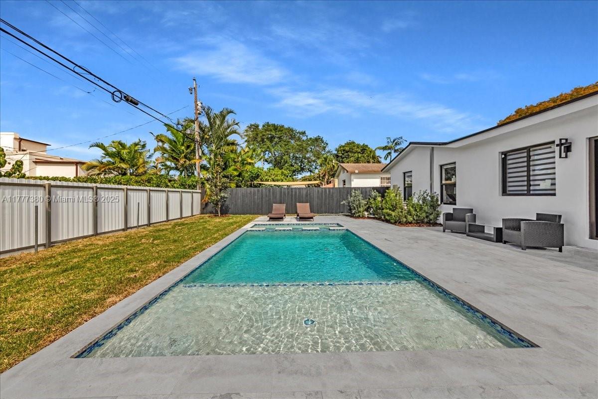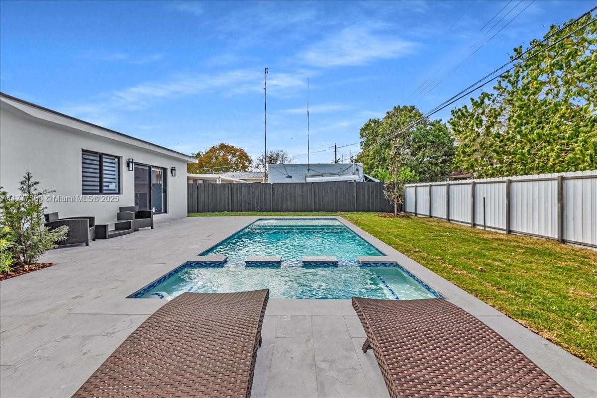 This stunning 5 bedroom (5th bedroom shown as office), 3 bathrooms home has been completely remodeled to perfection, offering a luxurious living experience. With impact windows and doors, new roof, a sparkling pool and relaxing spa, it’s ideal for both entertaining and peaceful retreats. Every detail has been thoughtfully designed, featuring top-of-the-line appliances, wince cooler, wine rack, built in refrigerator, cooktop, neutral colors with windows and glass doors which flood the space with natural light. The brand-new roof and AC provide added peace of mind. Whether you’re a buyer seeking your dream home or an investor looking for high-end value, this property is a rare find that combines elegance and functionality in a prime location.