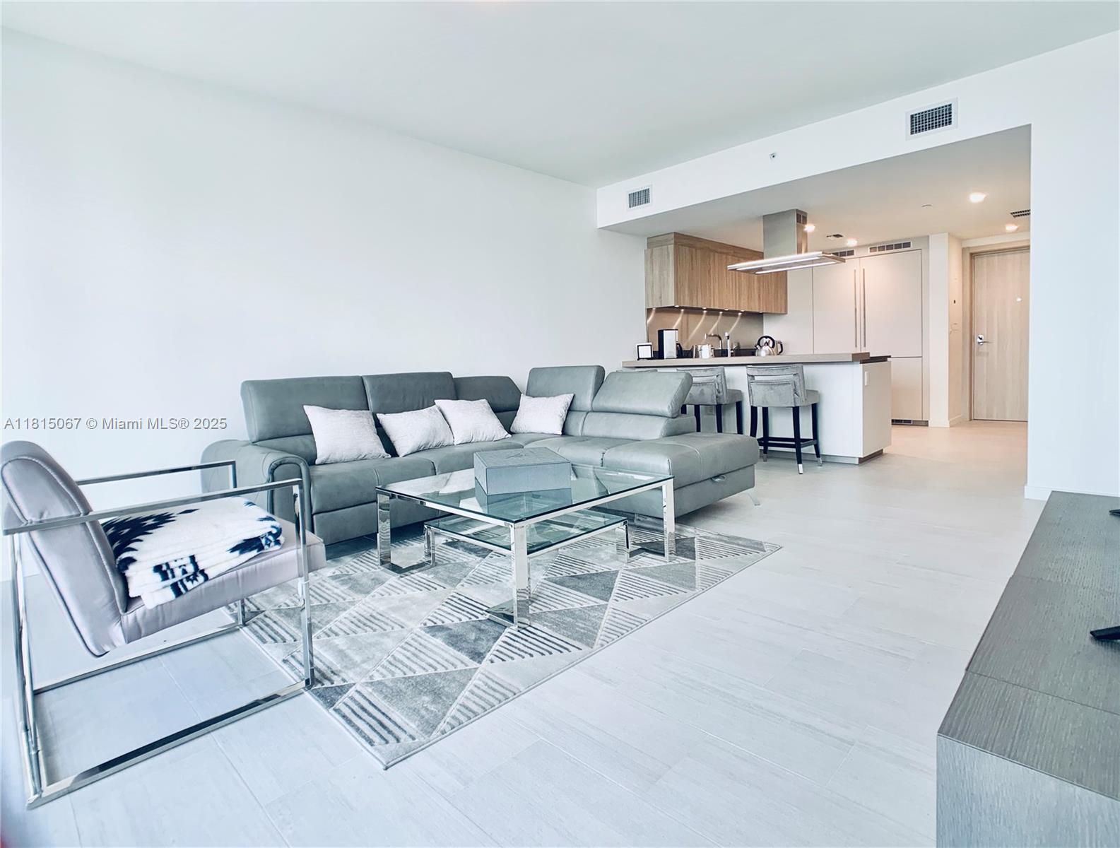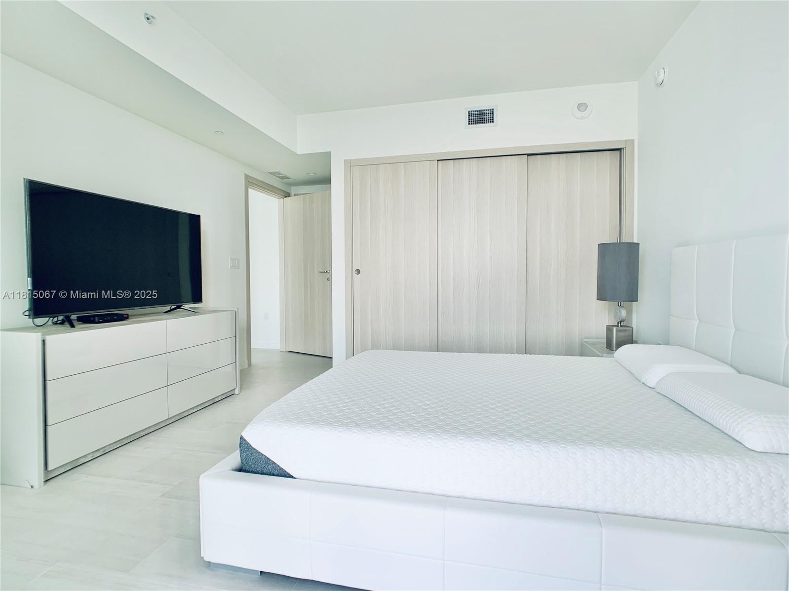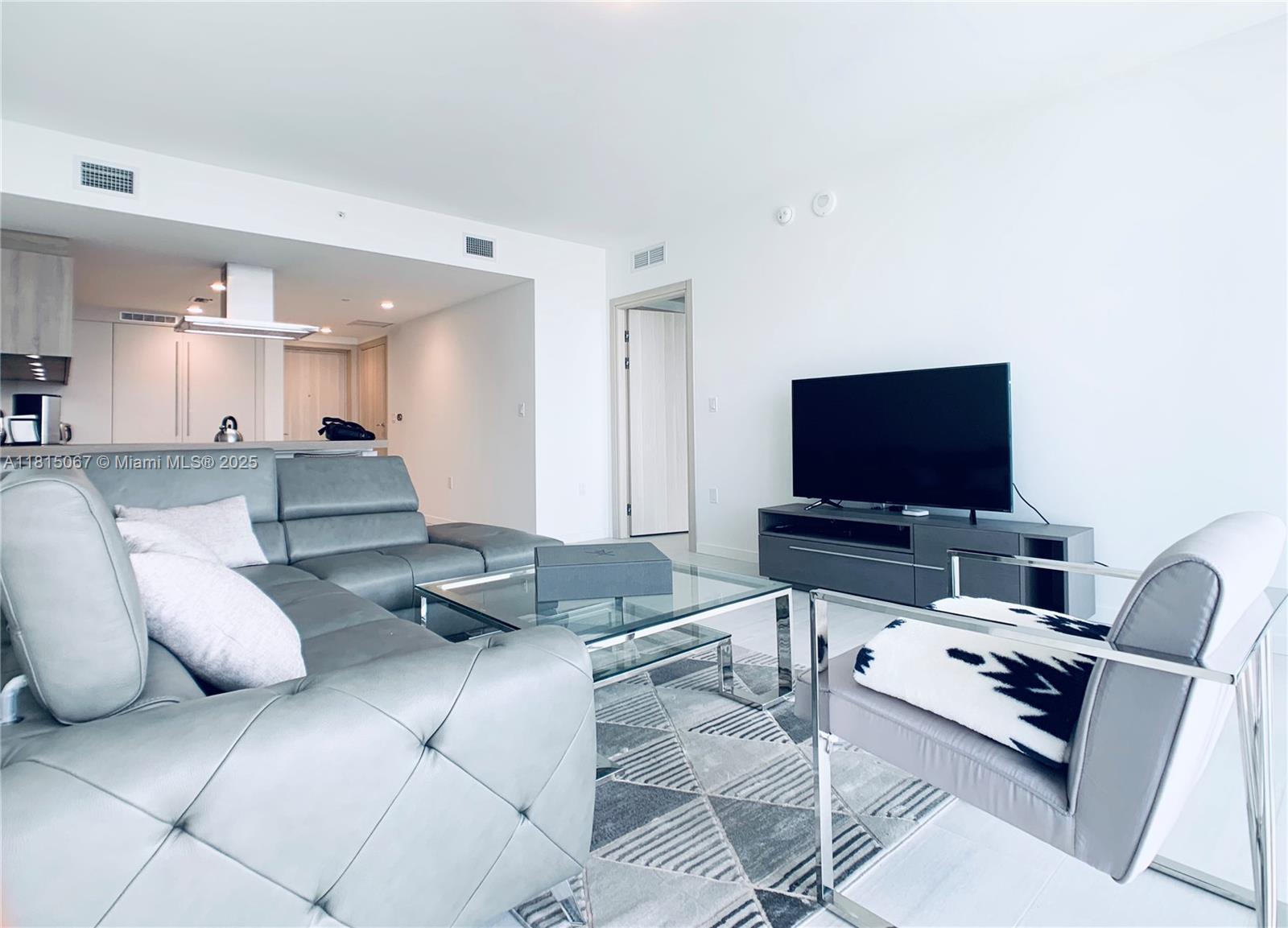The best view from all the one bedrooms units at the Flatiron, located in the 45th floor. Furniture included in the sales price. Developed by the remarkable Italian developer Ugo Colombo a master of detail a high end condos in Miami. This unit offers top-of-the-line Miele appliances, Snider Italian cabinets, marble bathrooms, electrical shades, and a Nest AC controller. Experience unparalleled amenities including massage rooms, a state-of-the-art fitness center, two pools (one on the rooftop at the 64th floor), a children's playroom, club room with bar and billiard table, cigar room, private state-of-the-art theater, library, 24-hour concierge and valet services, and a beautifully designed lobby. 30 days minimum rental restrictions 12 times a year.