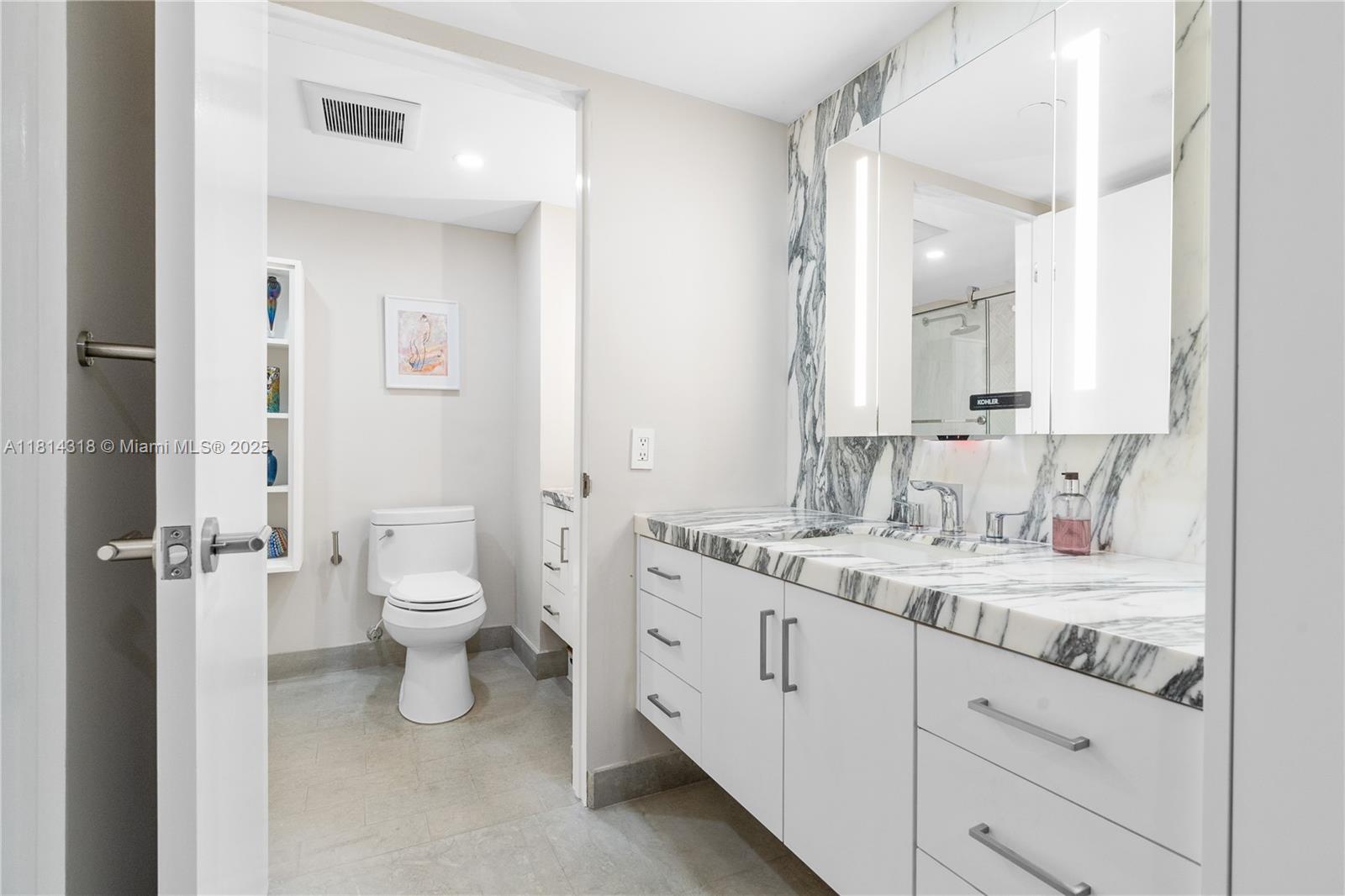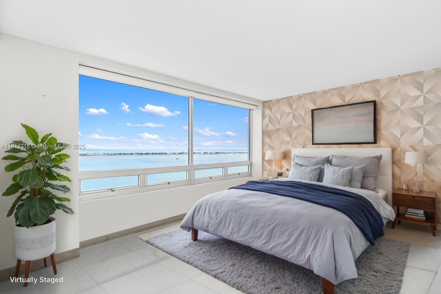 Enjoy Million Dollar Sunrises from your spacious east-facing balcony to Biscayne Bay and unwind with stunning sunsets over the Brickell Skyline from your west facing balcony This fully renovated 2/2 residence offers open airy living and dining spaces custom built-in storage, and elegant 24" limestone floors throughout. The kitchen and bathrooms sparkle with Italian marble. The oversized primary suite facing he Bay boasts ample closets. The guest bedroom is private with en-suite bath. Amenities include a bayside terrace, outdoor BBQ, a state of the art fitness center, lighted tennis courts, vale parking and concierge service. Located on the quiet side of Brickell but nearby to Brickell City Centre shopping, dining and & world-class offices. East access to I-95 and MIA