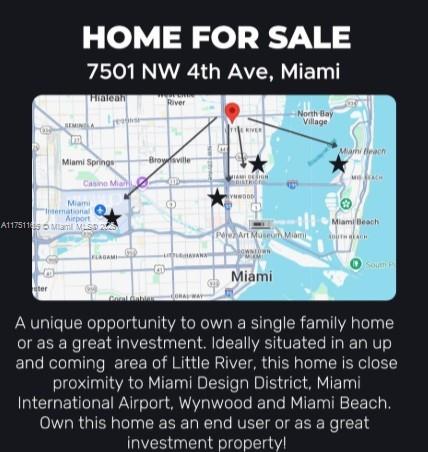Investors dream or Owner's delight! This charming detached single-family home on a corner lot in up-and-coming Little River neighborhood in Miami. This cozy 1,354 sq. ft. 4 beds/2 baths home is a single-family home that is being rented to tenants as a 2/1 on each side. Zoned T3-O for Duplexes in the city of Miami. This fenced home with fruit trees and a backyard to relax is great for entertainment. This income generating home is minutes from I-95 and is ready for investors or for future owners in this artsy industrial neighborhood minutes from amazing restaurants, galleries and Dinko pickleball courts. Some noteworthy restaurants are Citadel, Sunny's steakhouse, Ogawa, Gaucho Ranch Grill, Oori bakeshop to name a few. Do not disturb tenants.