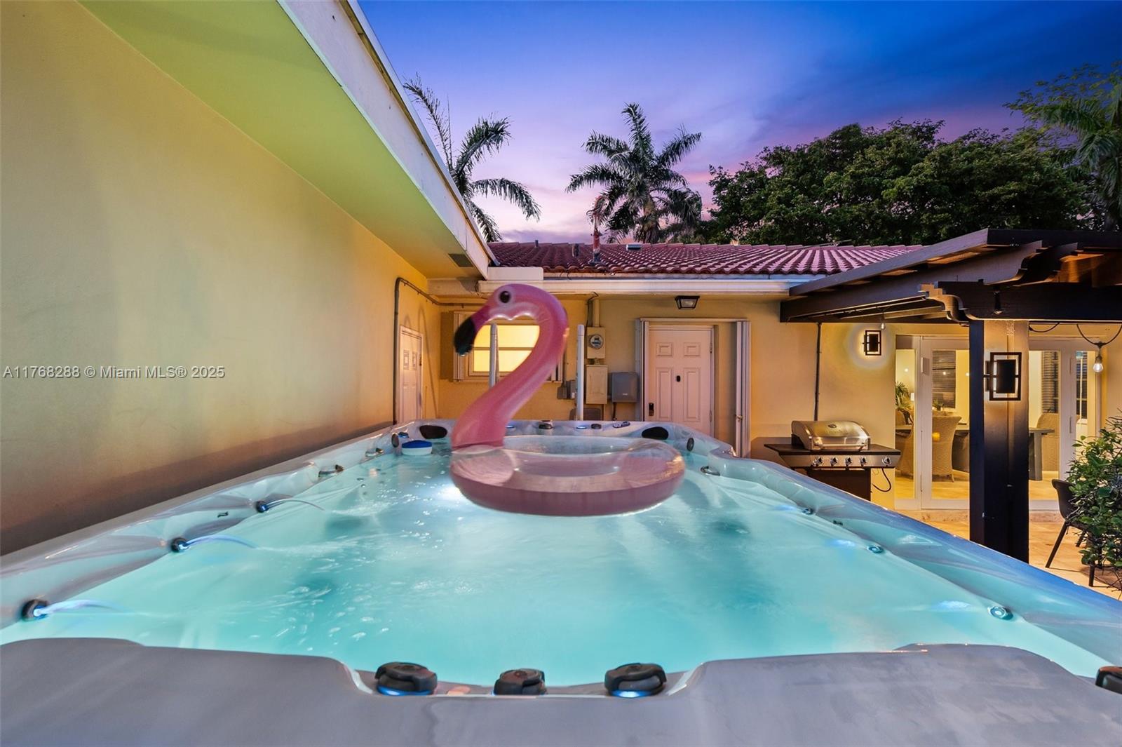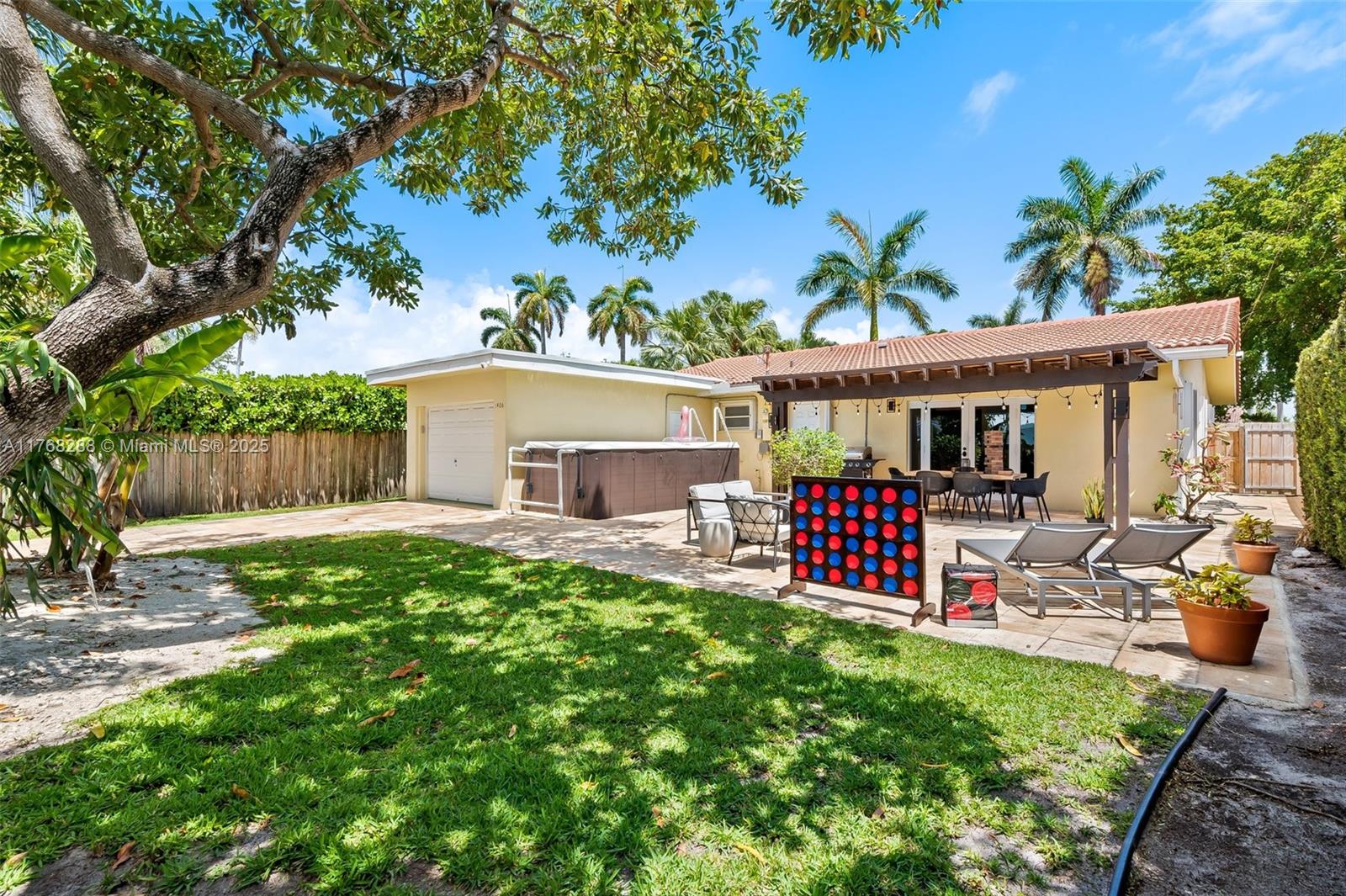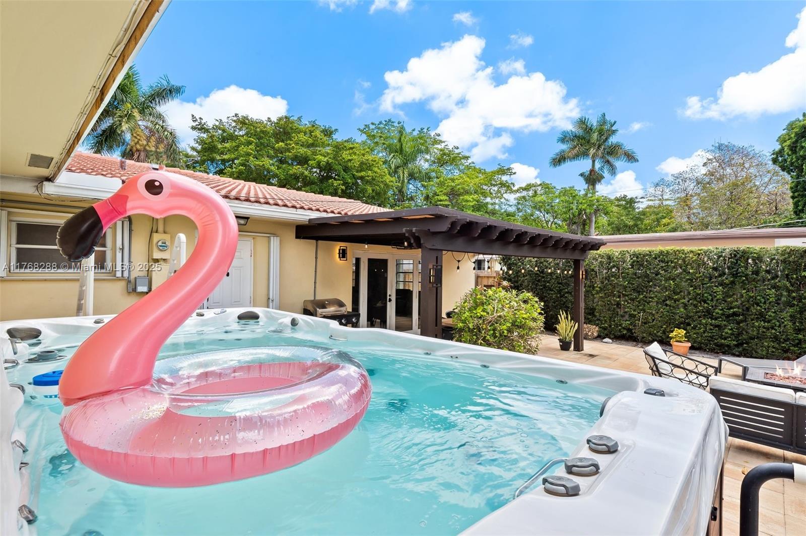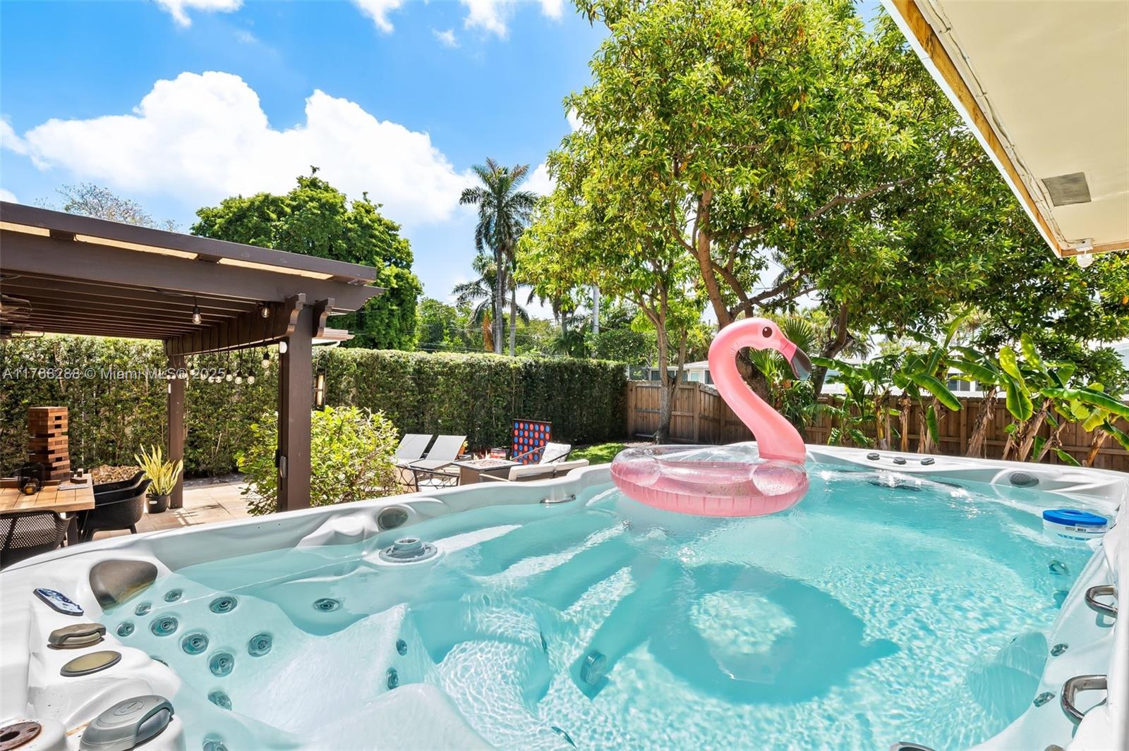 Beautifully maintained, three-bedroom and two-bathroom furnished single-family home just 1.6 miles from Hollywood Beach Park and the Intracoastal! Located in an upscale and quiet neighborhood, this home features marble floors, a large dining area, a spacious sunken living room, granite countertops, modern Euro-style kitchen cabinets, stainless steel appliances (fridge is less than 1 year old / microwave is less than 1 year old), a large circular driveway, 1 car garage, with additional parking directly in front of the garage. One of the best features of this home includes its huge backyard with fruit trees, a large swim spa, and a cozy outdoor dining area underneath the pergola. This home is immaculate and currently operates as a vacation rental property.