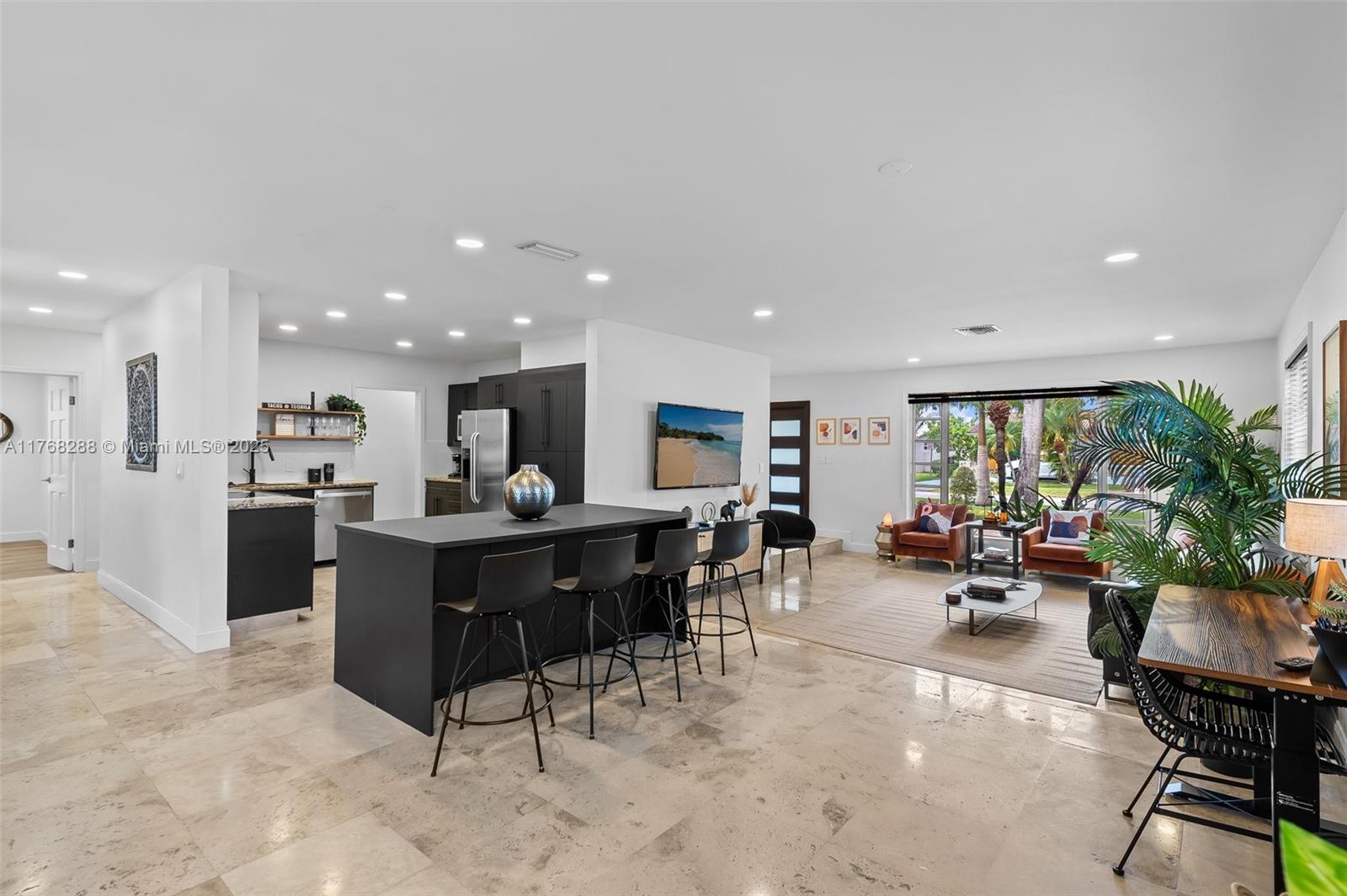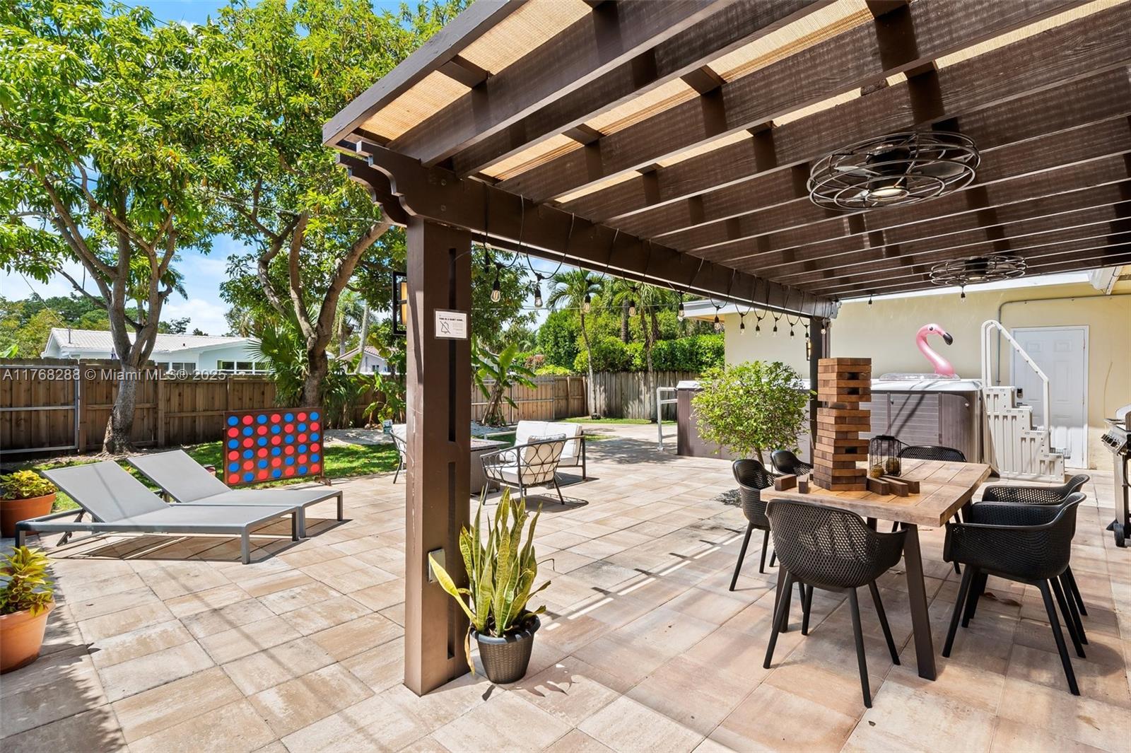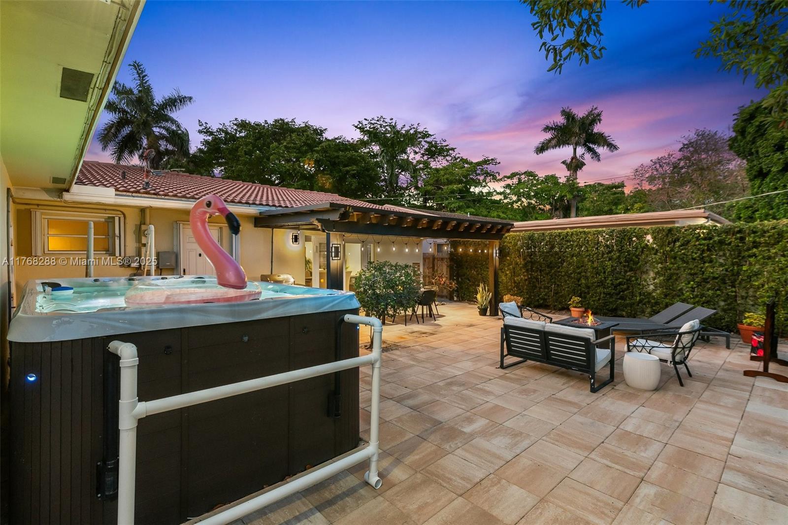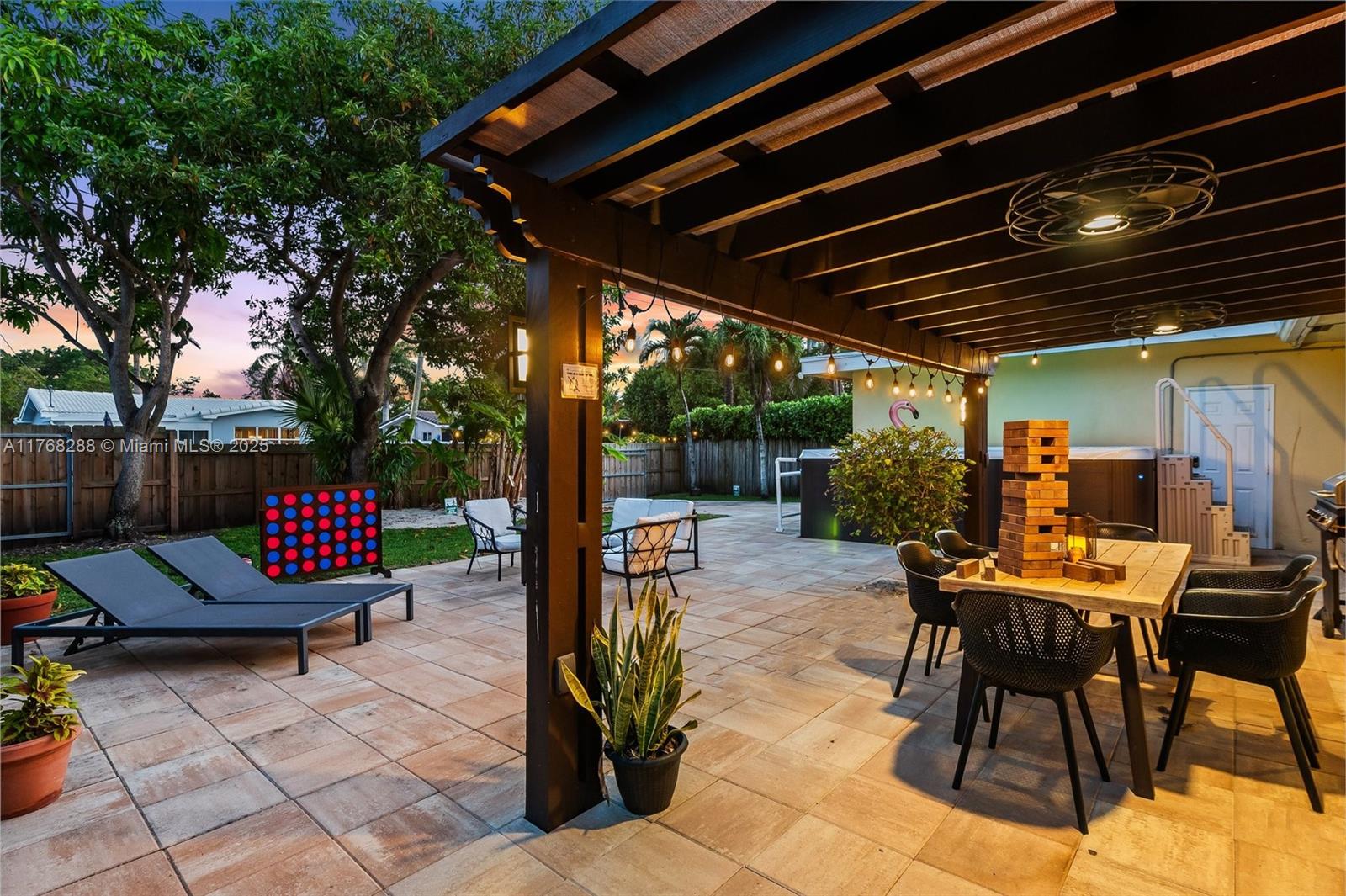 Beautifully maintained, three-bedroom and two-bathroom furnished single-family home just 1.6 miles from Hollywood Beach Park and the Intracoastal! Located in an upscale and quiet neighborhood, this home features marble floors, a large dining area, a spacious sunken living room, granite countertops, modern Euro-style kitchen cabinets, stainless steel appliances (fridge is less than 1 year old / microwave is less than 1 year old), a large circular driveway, 1 car garage, with additional parking directly in front of the garage. One of the best features of this home includes its huge backyard with fruit trees, a large swim spa, and a cozy outdoor dining area underneath the pergola. This home is immaculate and currently operates as a vacation rental property.
