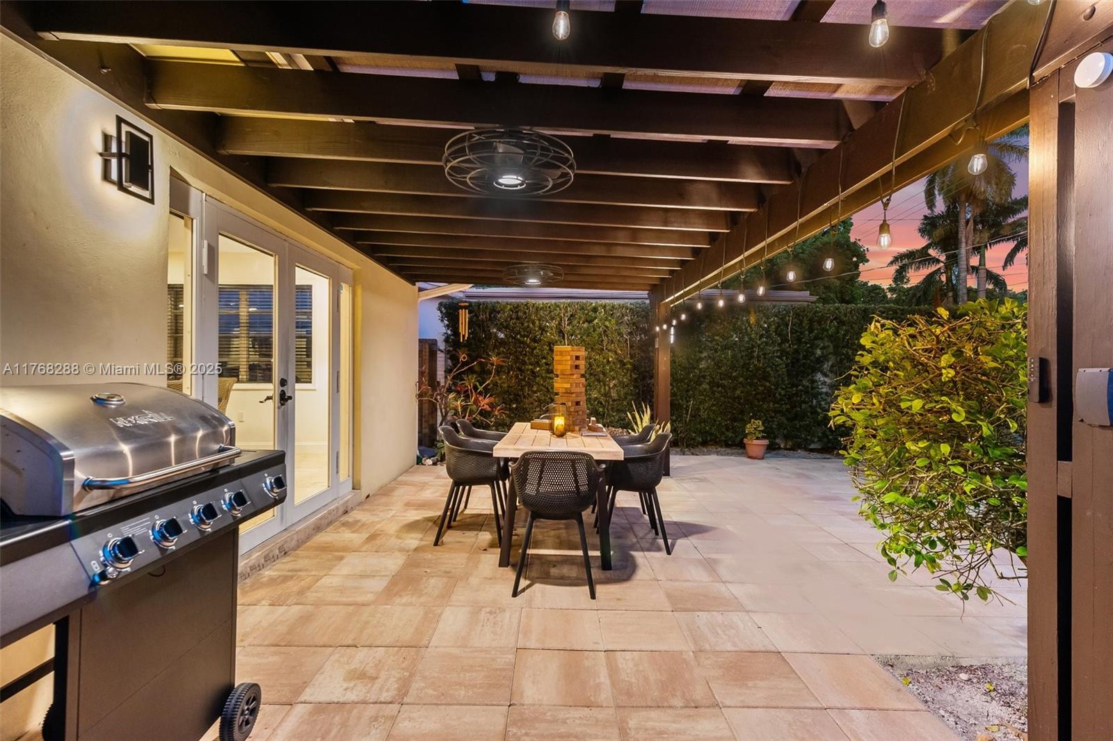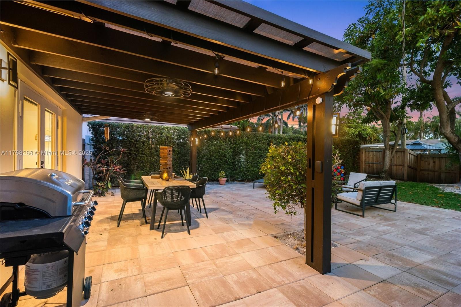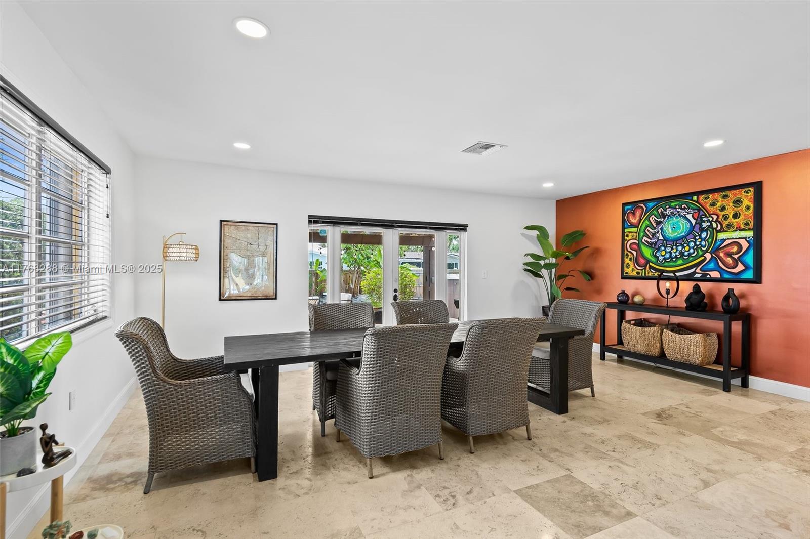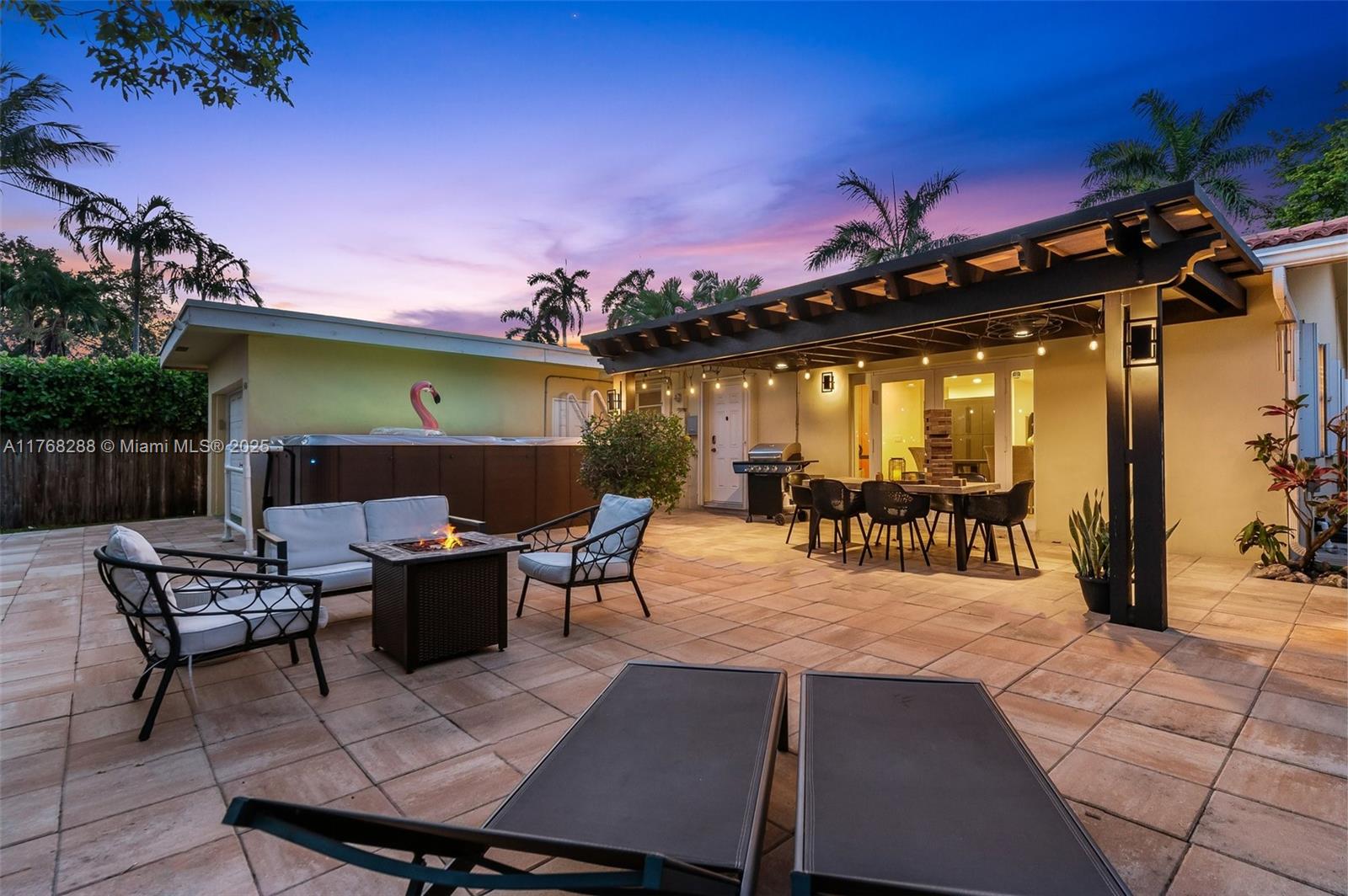 Beautifully maintained, three-bedroom and two-bathroom furnished single-family home just 1.6 miles from Hollywood Beach Park and the Intracoastal! Located in an upscale and quiet neighborhood, this home features marble floors, a large dining area, a spacious sunken living room, granite countertops, modern Euro-style kitchen cabinets, stainless steel appliances (fridge is less than 1 year old / microwave is less than 1 year old), a large circular driveway, 1 car garage, with additional parking directly in front of the garage. One of the best features of this home includes its huge backyard with fruit trees, a large swim spa, and a cozy outdoor dining area underneath the pergola. This home is immaculate and currently operates as a vacation rental property.