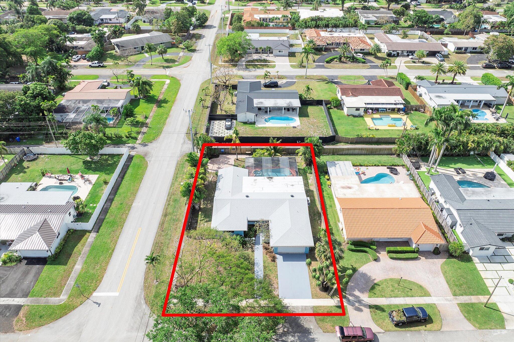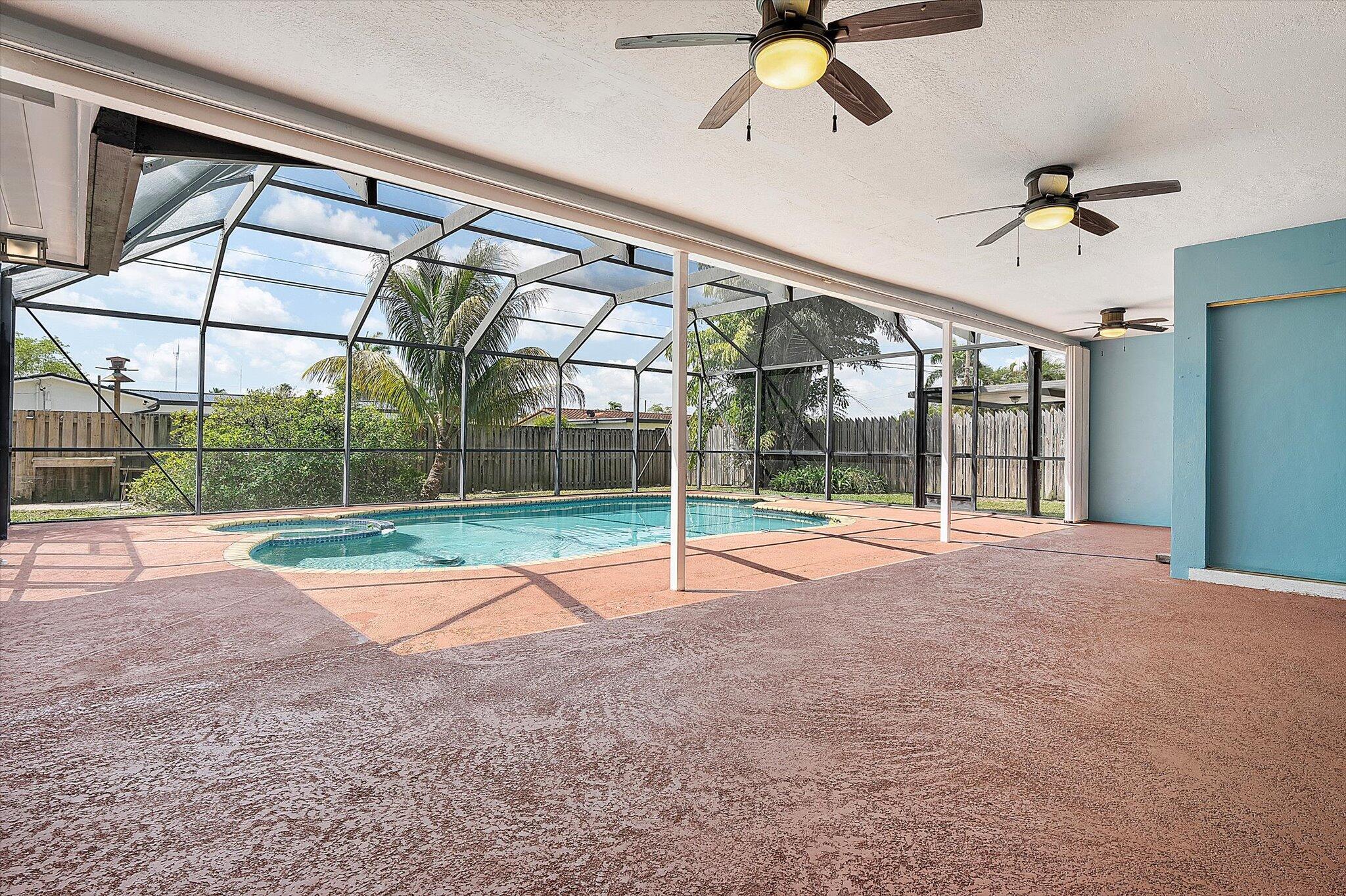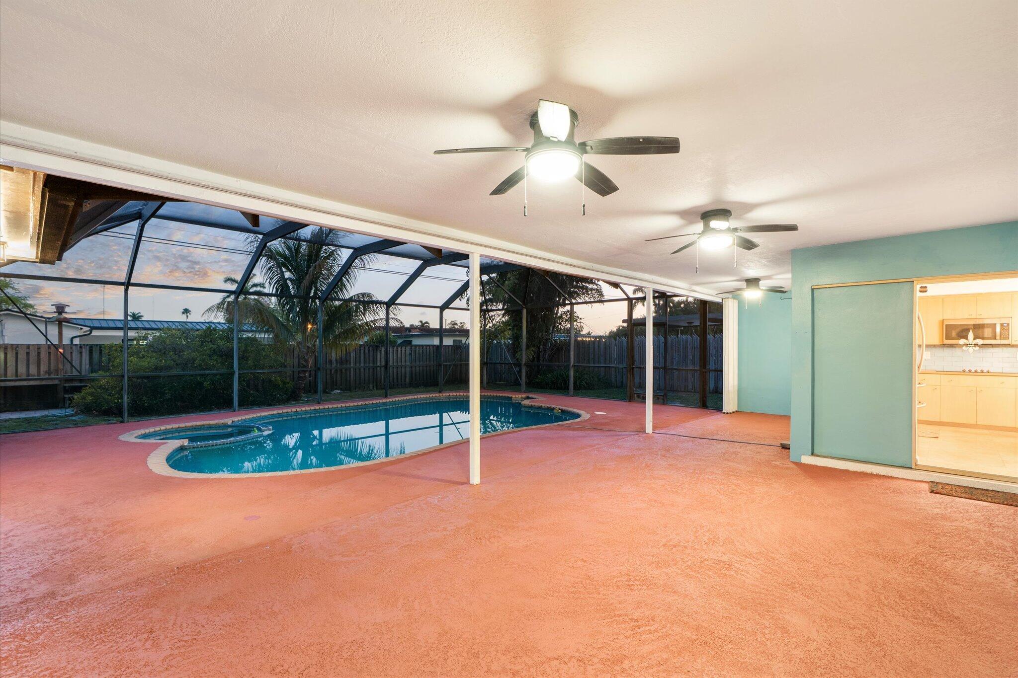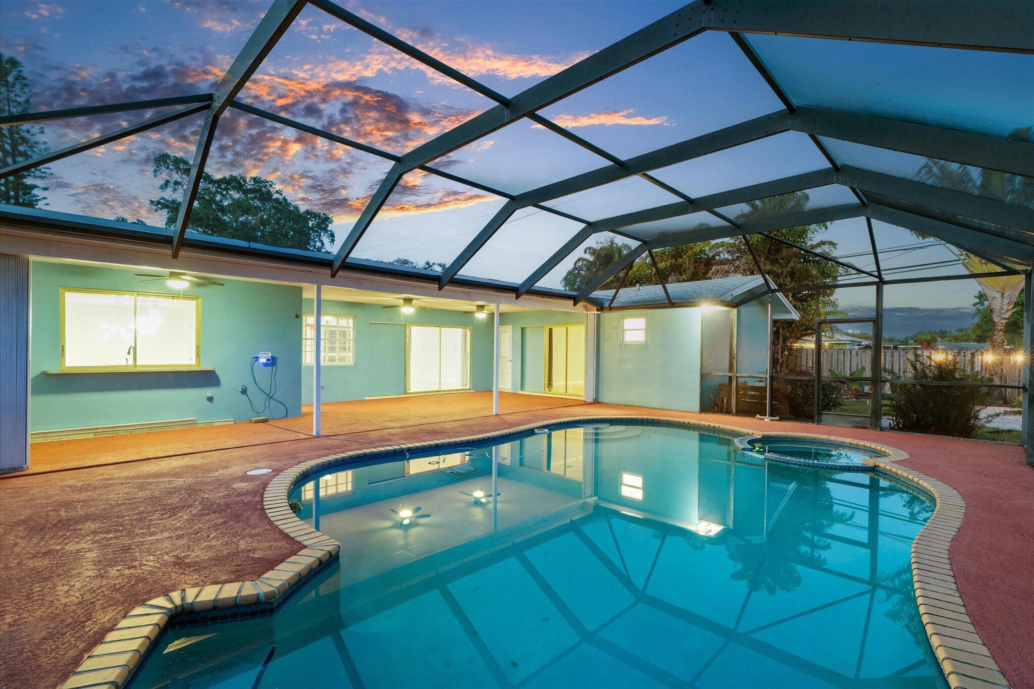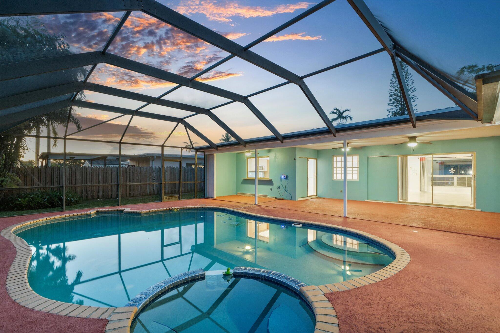 Welcome to this beautifully renovated single-family home in the highly sought-after Hollywood Hills. this 2,465 sq. ft home has travertine tile throughout, this 3-bedroom, 2-bathroom residence is nestled on over a quarter-acre corner lot with mature trees and tropical plants. Enjoy an open-concept floor plan with recessed lighting and an updated kitchen, perfect for modern living. The primary suite boasts a private sliding glass door leading to the pool area. Recent upgrades include a new architectural shingle roof with extra water barrier, new AC system, and a new hot water tank. Relax in the screened-in pool, making this home a true oasis. Don't miss out on this incredible opportunity!