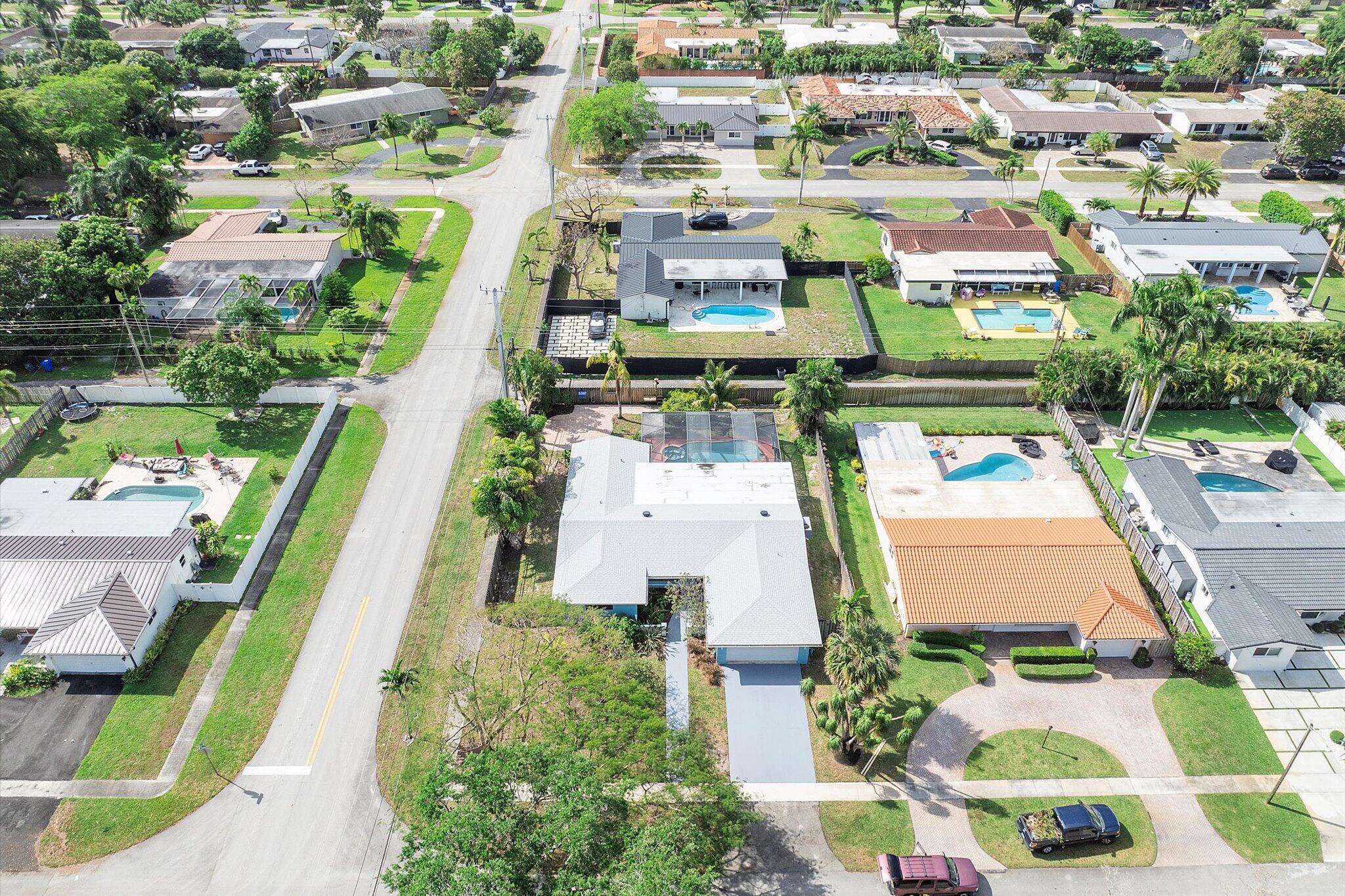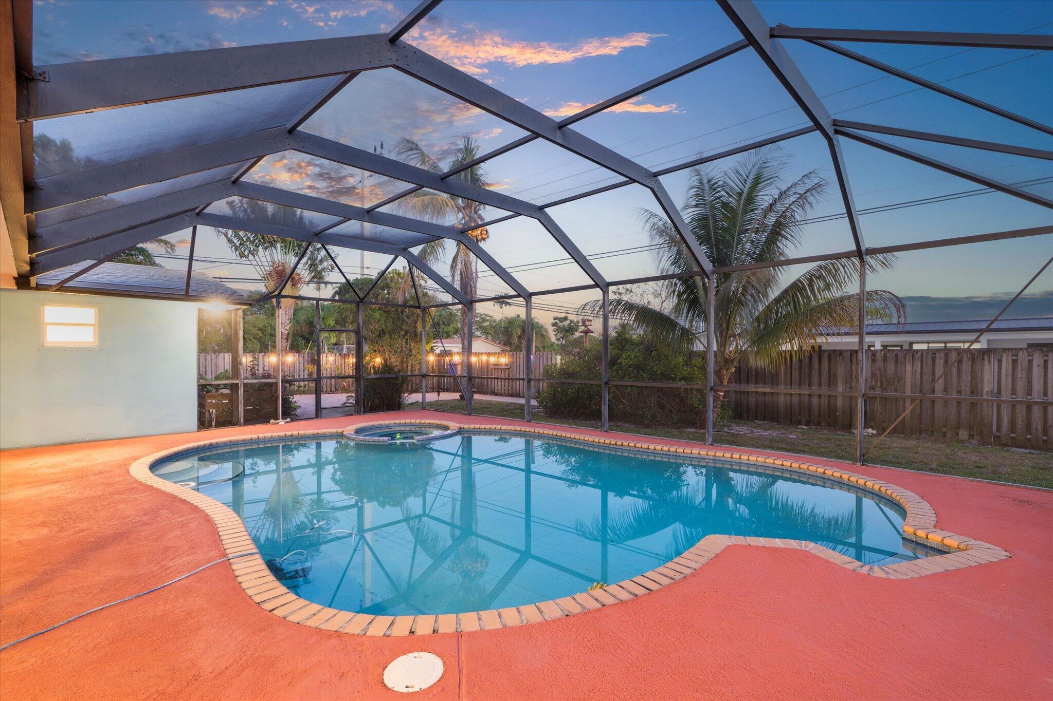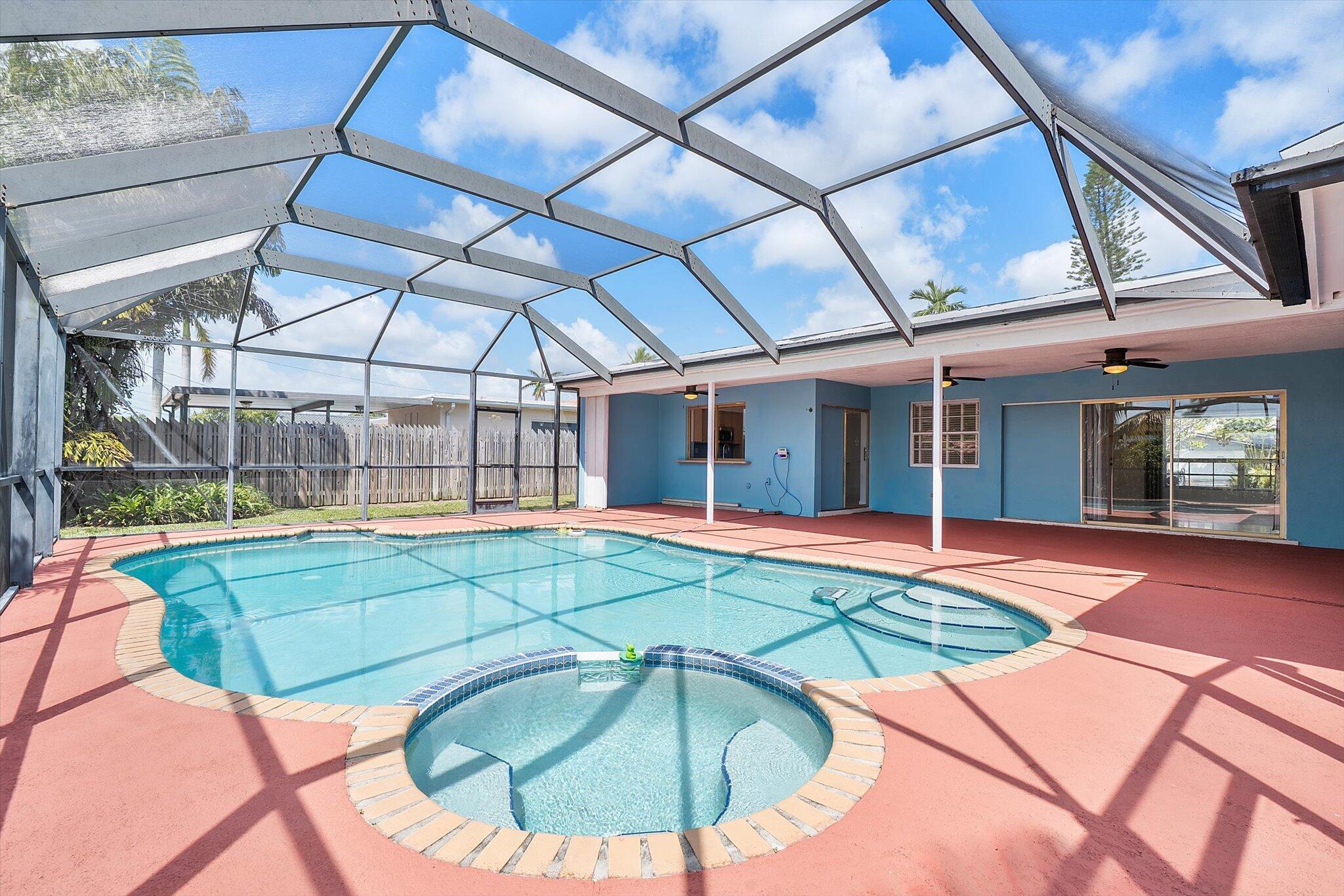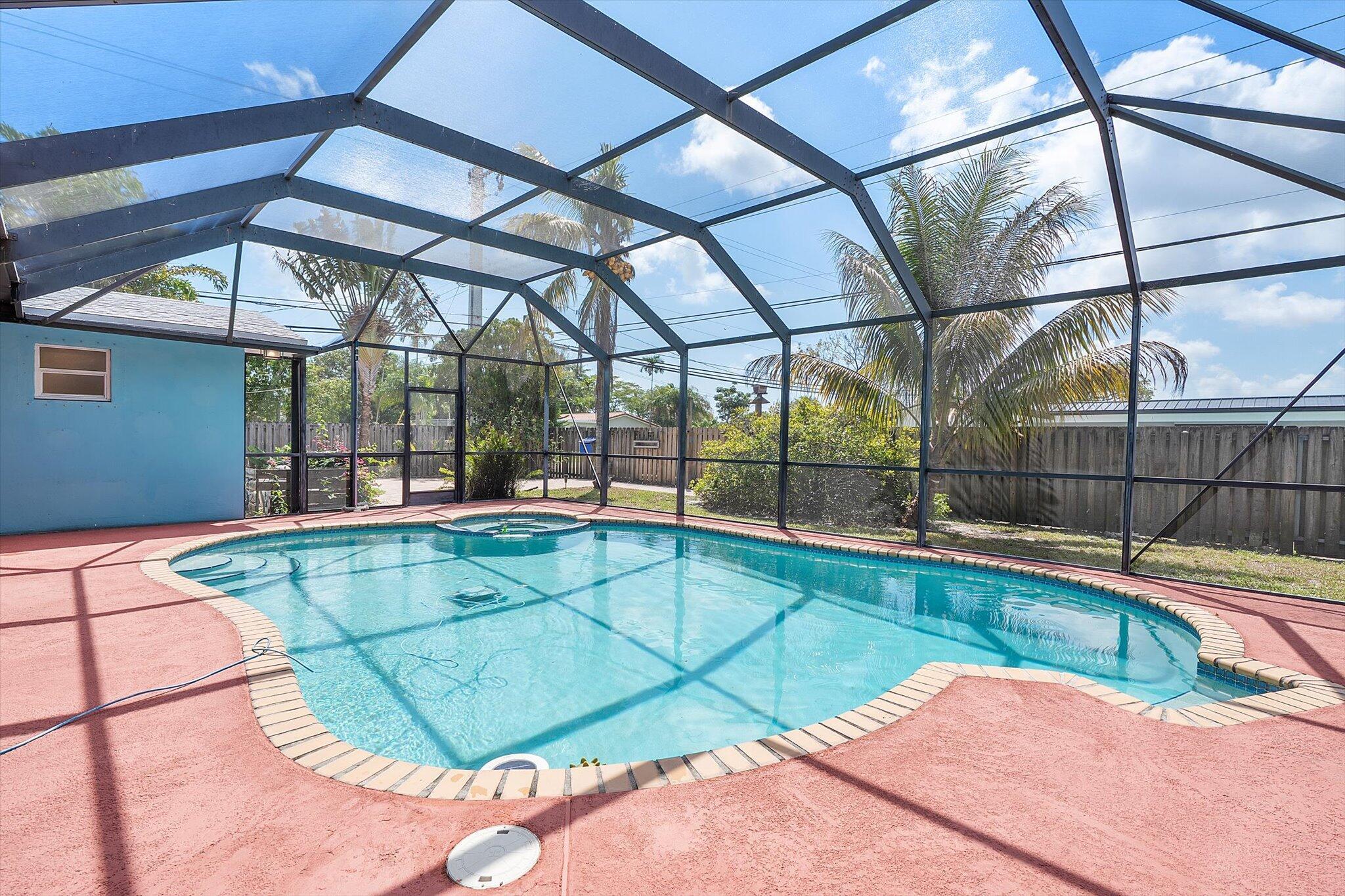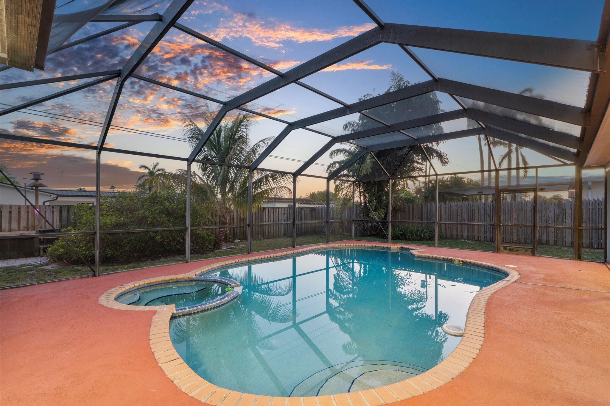 Welcome to this beautifully renovated single-family home in the highly sought-after Hollywood Hills. this 2,465 sq. ft home has travertine tile throughout, this 3-bedroom, 2-bathroom residence is nestled on over a quarter-acre corner lot with mature trees and tropical plants. Enjoy an open-concept floor plan with recessed lighting and an updated kitchen, perfect for modern living. The primary suite boasts a private sliding glass door leading to the pool area. Recent upgrades include a new architectural shingle roof with extra water barrier, new AC system, and a new hot water tank. Relax in the screened-in pool, making this home a true oasis. Don't miss out on this incredible opportunity!