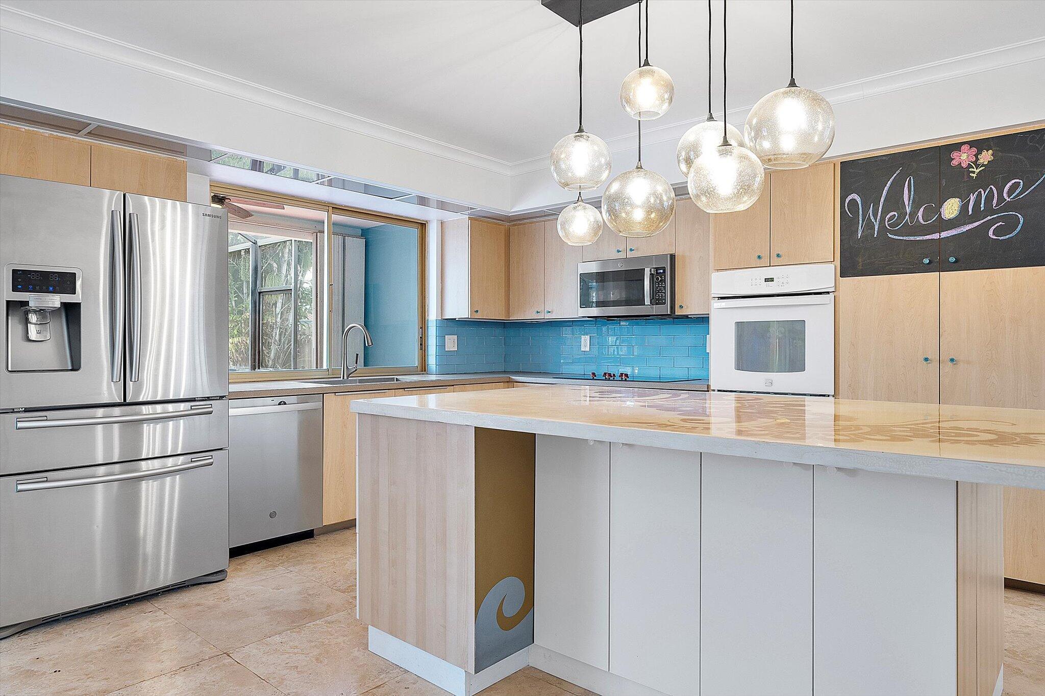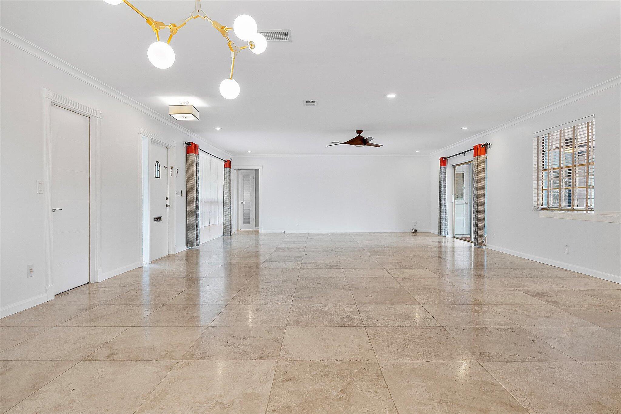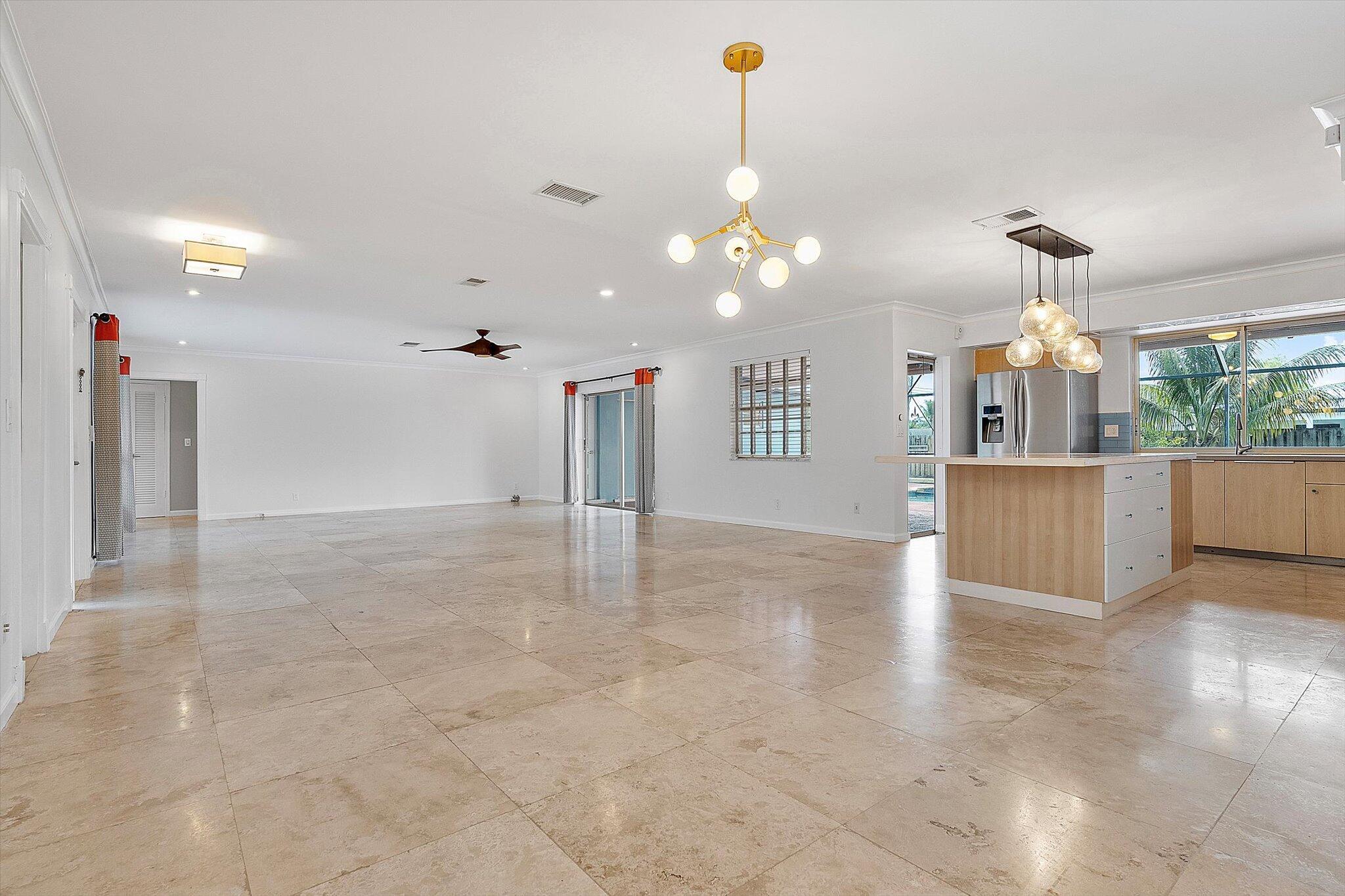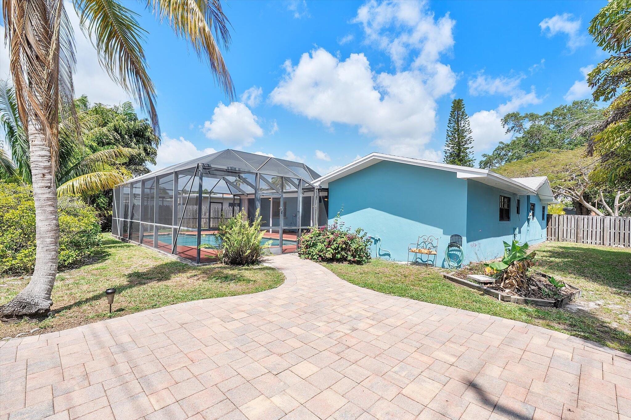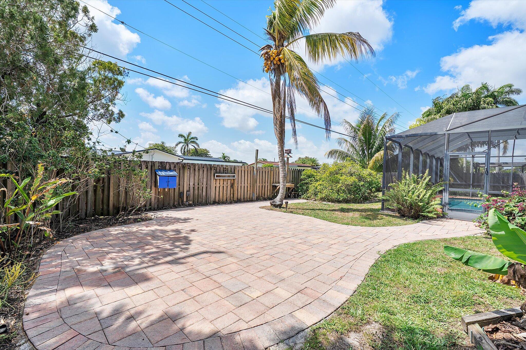 Welcome to this beautifully renovated single-family home in the highly sought-after Hollywood Hills. this 2,465 sq. ft home has travertine tile throughout, this 3-bedroom, 2-bathroom residence is nestled on over a quarter-acre corner lot with mature trees and tropical plants. Enjoy an open-concept floor plan with recessed lighting and an updated kitchen, perfect for modern living. The primary suite boasts a private sliding glass door leading to the pool area. Recent upgrades include a new architectural shingle roof with extra water barrier, new AC system, and a new hot water tank. Relax in the screened-in pool, making this home a true oasis. Don't miss out on this incredible opportunity!