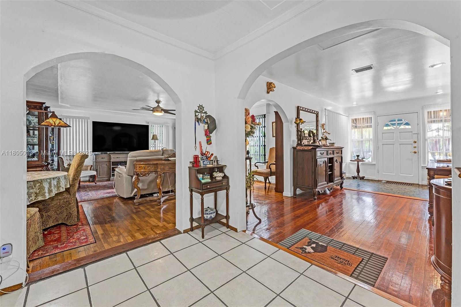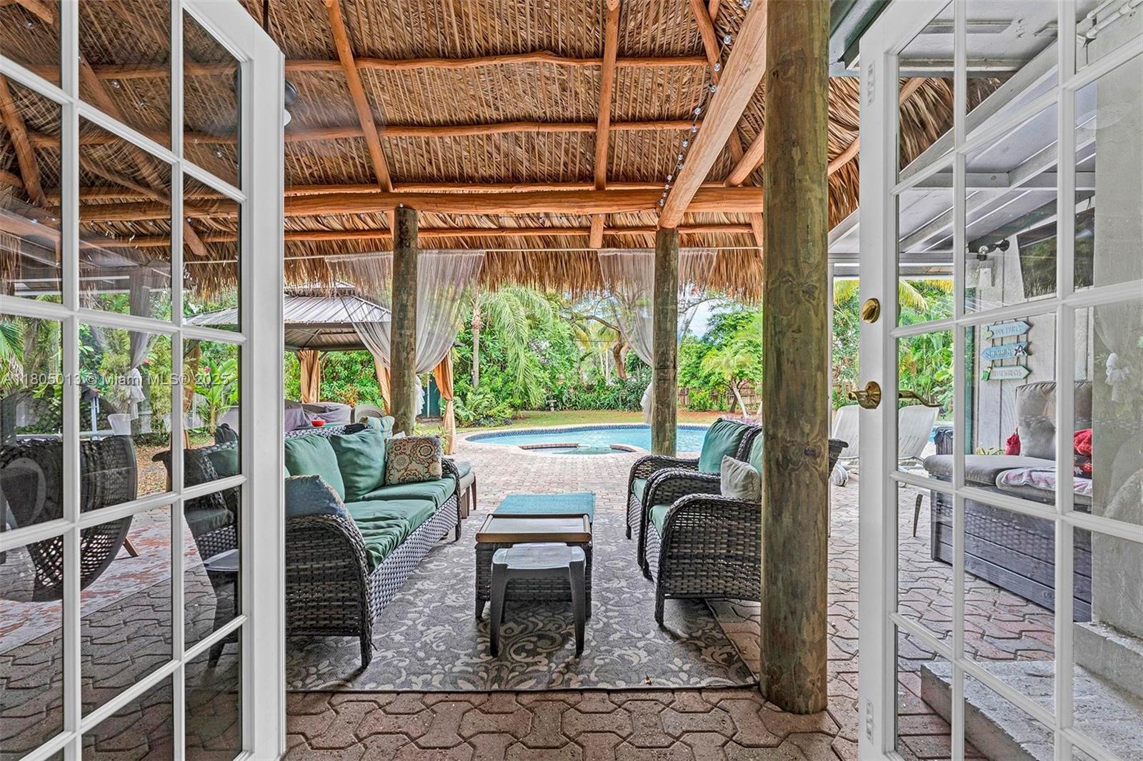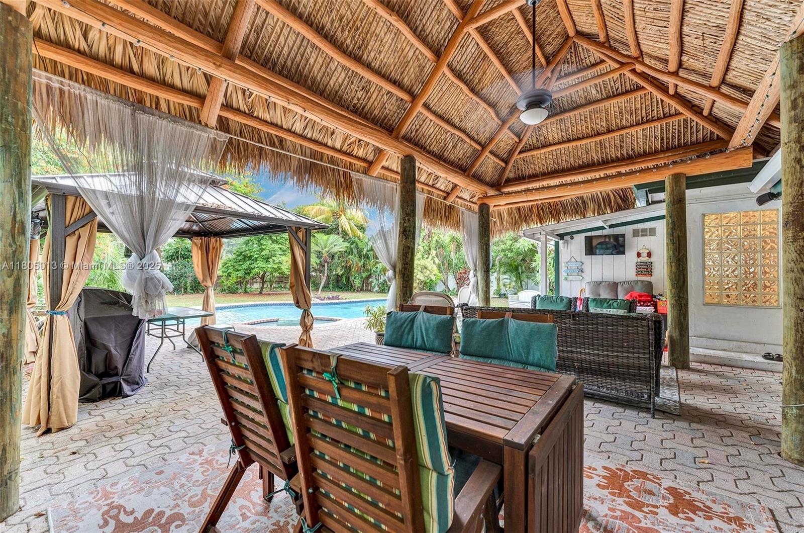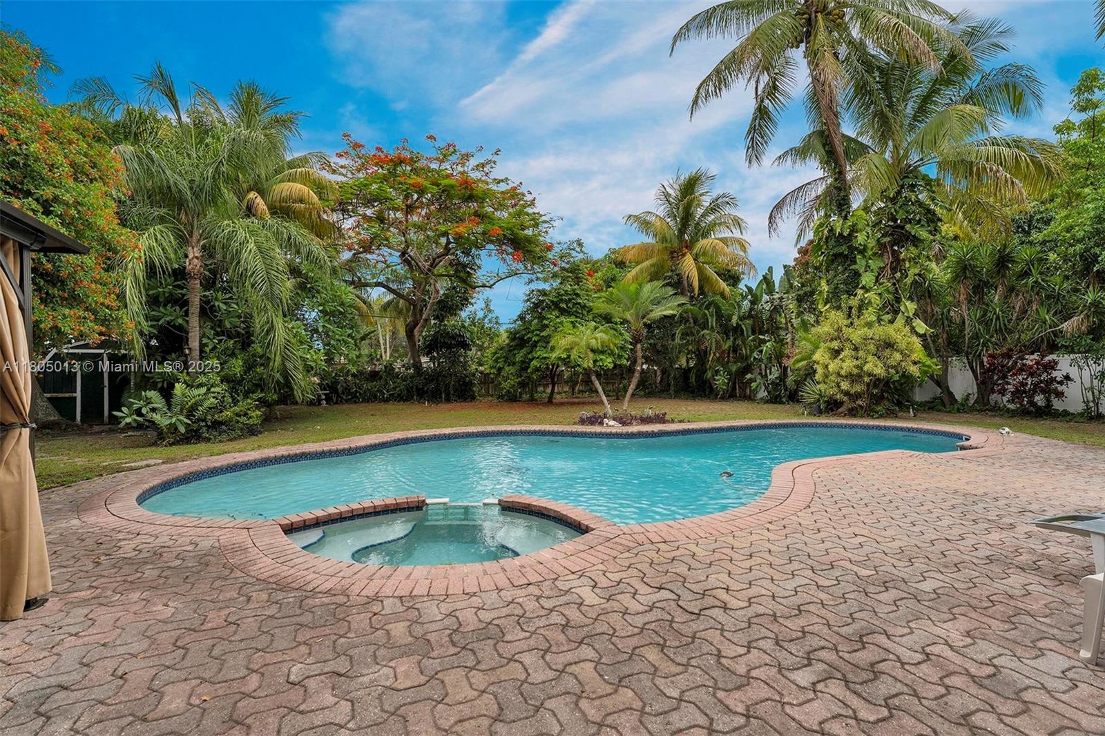 Endless potential in East Hollywood! This 3-bedroom, 3-bath home sits on an oversized half-acre lot, offering a rare opportunity to renovate or expand. While the home itself maintains its original character, the backyard is a true highlight—featuring a heated pool with Jacuzzi, a spacious tiki-style Nikki hut, tropical fruit trees, and a barbecue area perfect for entertaining, all under security cameras. The tropical landscaping creates a private, resort-like atmosphere, ideal for enjoying the South Florida lifestyle. No HOA, with plenty of room for RV/boat parking. Located just minutes from Hollywood Beach, Guitar Hotel, Hard Rock Casino, FLL airport, Downtown, shopping, and major highways. HIGH AIRBNB POTENTIAL!!! A great investment or blank canvas for your dream home. NOT A FLOOD ZONE !