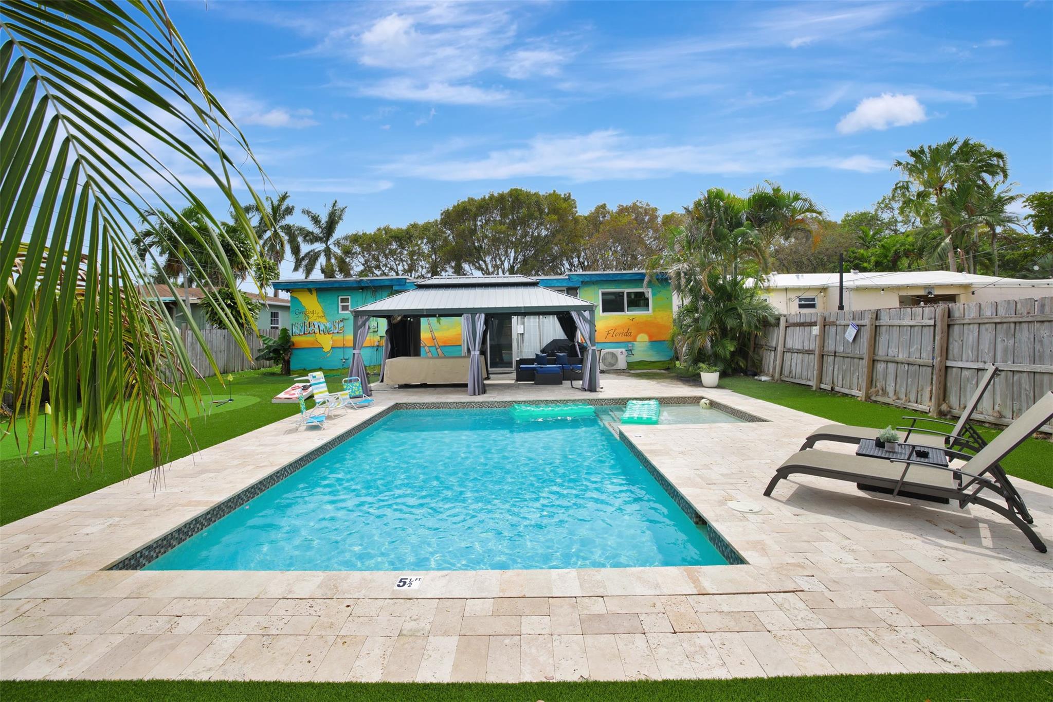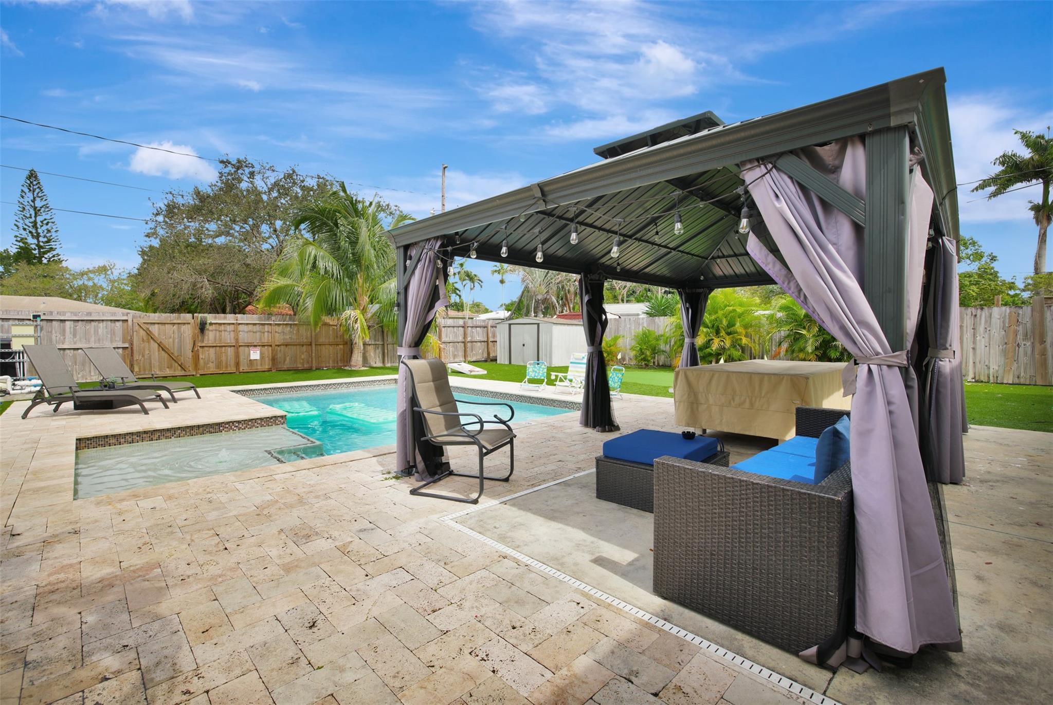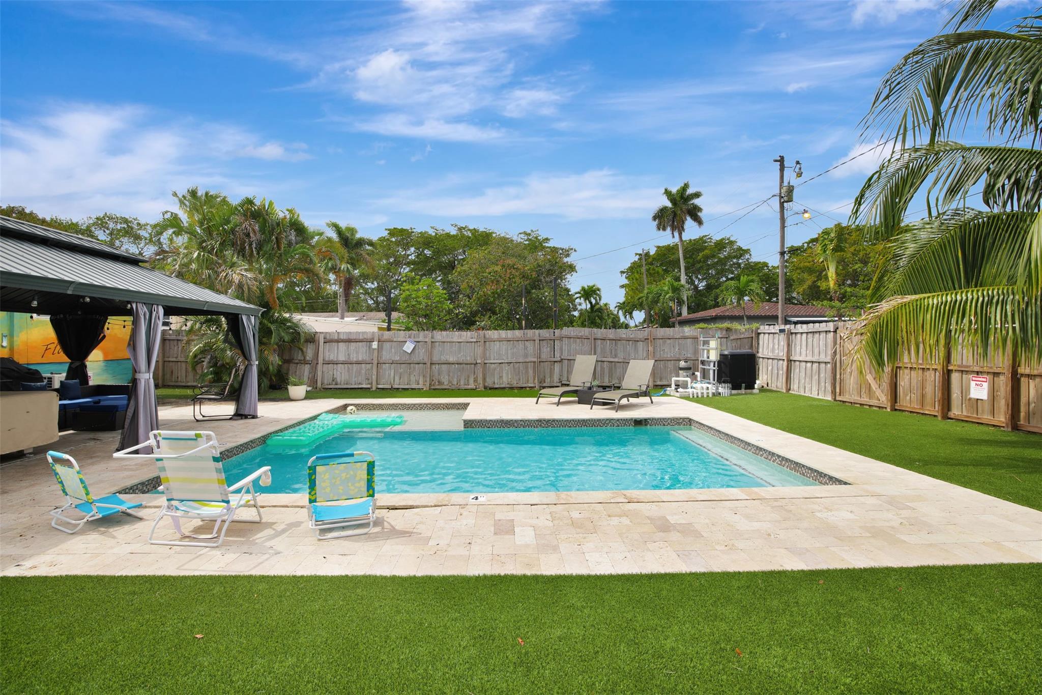 Fantastic house features expansive updated kitchen with stainless steel appliances, ample counter space and breakfast area. Impact windows, and panels for sliding glass doors. Modern/updated bathrooms. Huge fenced backyard with travertine pavers, pool, gazebo and putting area - great for entertaining! Large Florida Sunroom. Workshop off the Florida room. Lots more! Don't miss it!