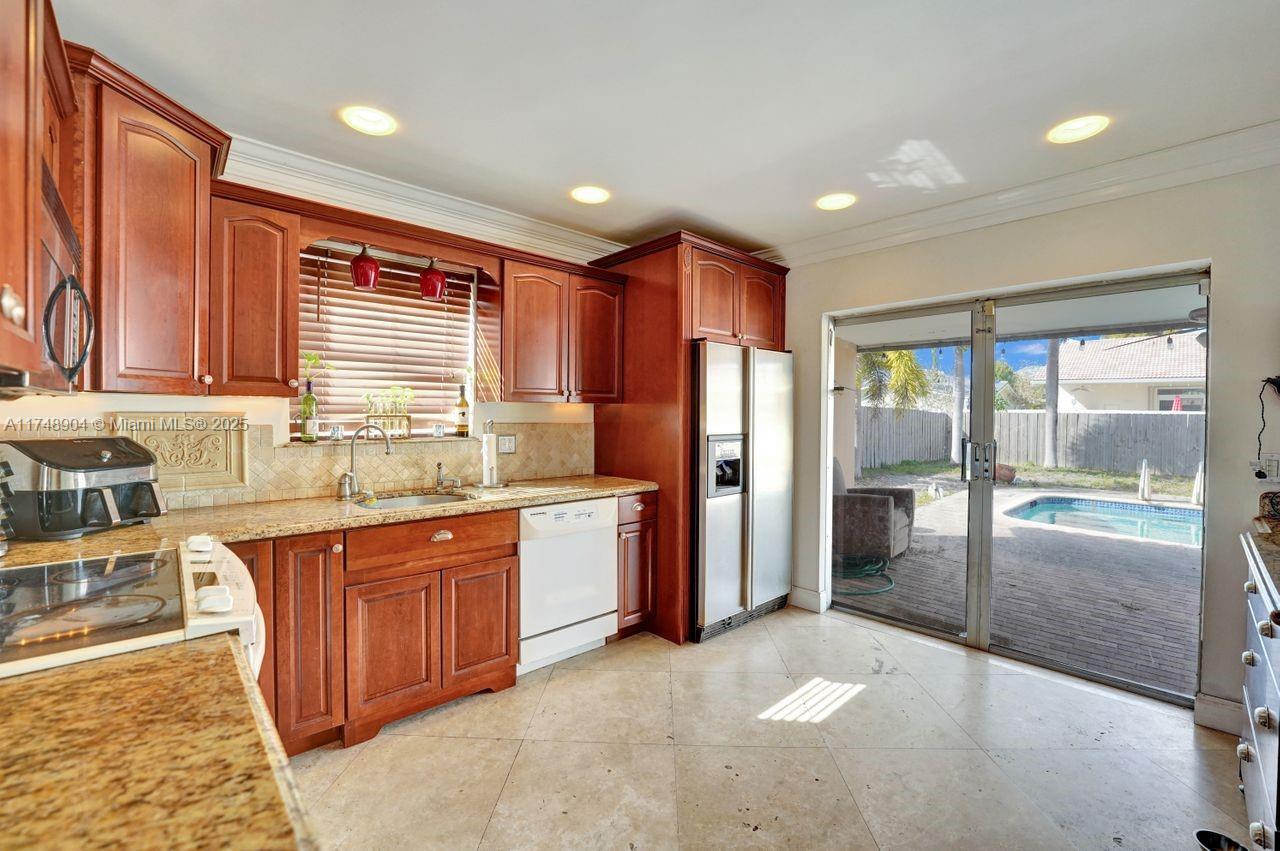 THREE BEDROOM PLUS MEDIA ROOM (COULD BE FORTH BEDROOM) IN PRIME HOLLYWOOD HILLS LOCATION ON DESIRABLE NORTH SIDE OF THE BOULEVARD ON A LOW-TRAFFIC STREET. THIS HOME IS A DIAMOND IN THE ROUGH. WITH TLC, IT WILL BE A SHINING GEM. FEATURING OPEN FLOOR PLAN WITH BEAUTIFUL VIEWS OF THE POOL AREA FROM THE LIVING ROOM AND PRIMARY BEDROOM.THREE BEDROOMS PLUS A ROOM OR A FOURTH BEDROOM. NO FLAT ROOF LIKE SIMILAR HOMES IN THE AREA. OVERSIZE GARAGE THAT WILL ACCOMMODATE TWO CARS AND A MOTORCYCLE. THE KITCHEN HAS BEEN REMODELED IN TRUE CHERRY WITH BEAUTIFUL PROFILED GRANITE COUNTERTOPS. DUAL ZONE CENTRAL AIR: BEAUTIFUL PAVED PATIO AND POOL WAS RESURFACED IN 2022. TRUE CABANA BATH ACCESSED FROM THE POOL. THE MASTER BATHROOM HAS ACCESS TO THE POOL, READY FOR YOUR IMAGINATIVE TOUCHES.