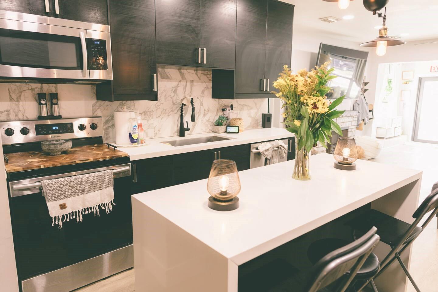 REDUCED! This beautifully remodeled single family, oasis combines modern elegance with warmth and functionality. Step into an open layout featuring contemporary finishes with luxury vinyl and tile flooring, and a designer kitchen with stainless steel appliances and granite countertops, ideal for both intimate dinners and entertaining. The serene backyard is your own retreat - complete with a fully equipped outdoor gas kitchen, a cozy fire pit and space to lounge, dine and unwind. .**NO HOA** move-in ready home offers everything you need for modern, stylish living! ADDED BONUS: converted detached garage in the back with a separate entrance and yard, leads to a one-bedroom unit, perfect for guests, extended family or as a rental opportunity. Close to Local amenities, FLL Airport and Beach!!!