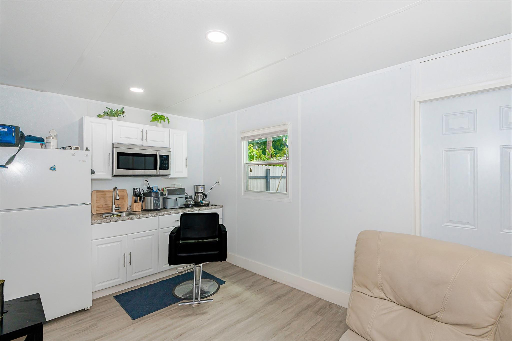 Charming 2-Bedroom Home with Detached Efficiency & Income Potential! Welcome to this beautifully upgraded 2-bedroom, 2-bathroom gem situated on a corner lot. Featuring a 2020 roof, impact windows and doors (2021), 2021 A/C, and a tankless water heater, this home offers peace of mind and energy efficiency. Step inside to a modern, open-concept layout with renovated kitchen and bathrooms, sleek finishes, and plenty of natural light. Outside, the property boasts a large detached efficiency unit with a private fenced yard—perfect for in-law quarters, rental income, or a home office setup. Ideal for first-time homebuyers looking to house hack and offset their mortgage. Prime location, generous lot, and smart updates make this a must-see!