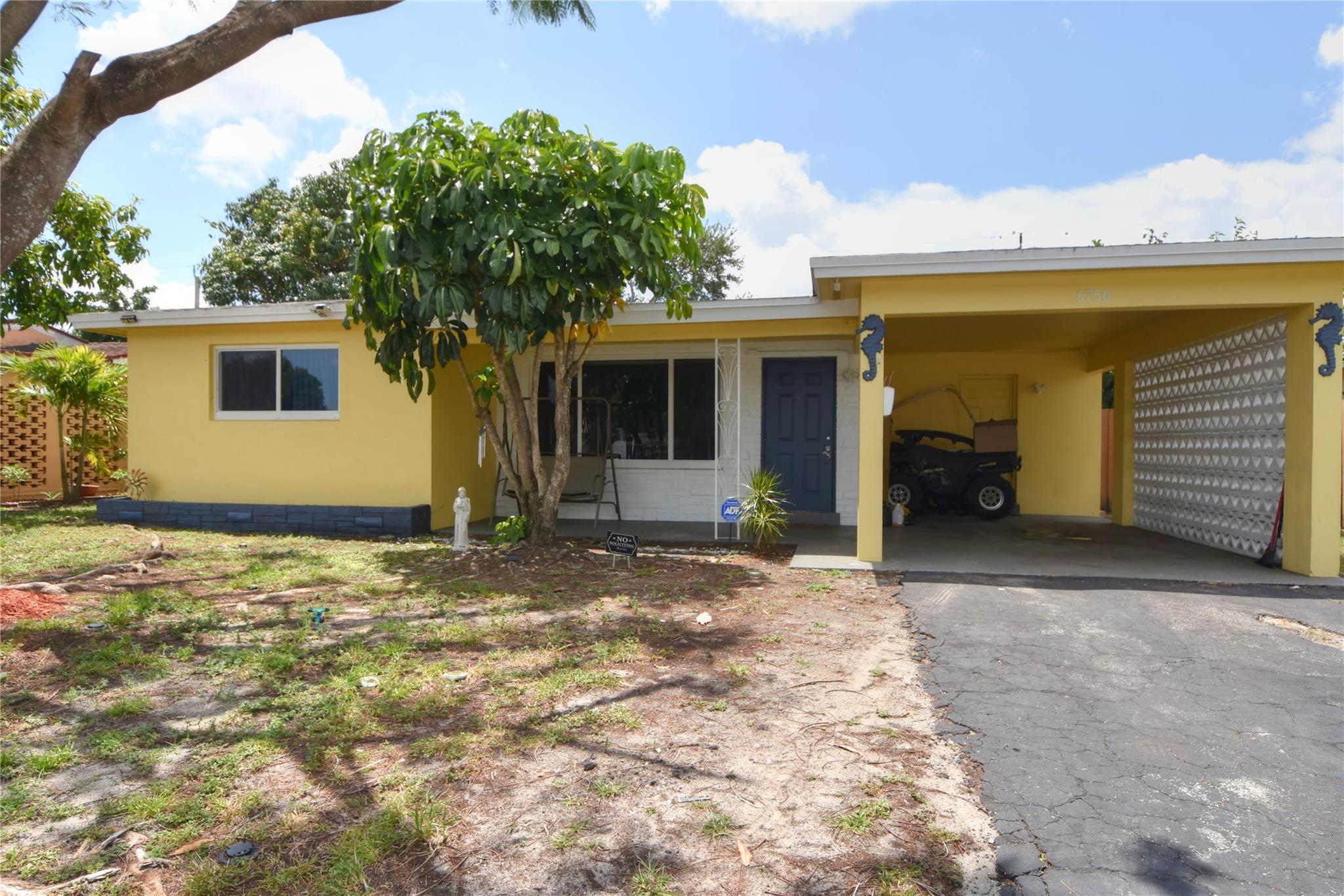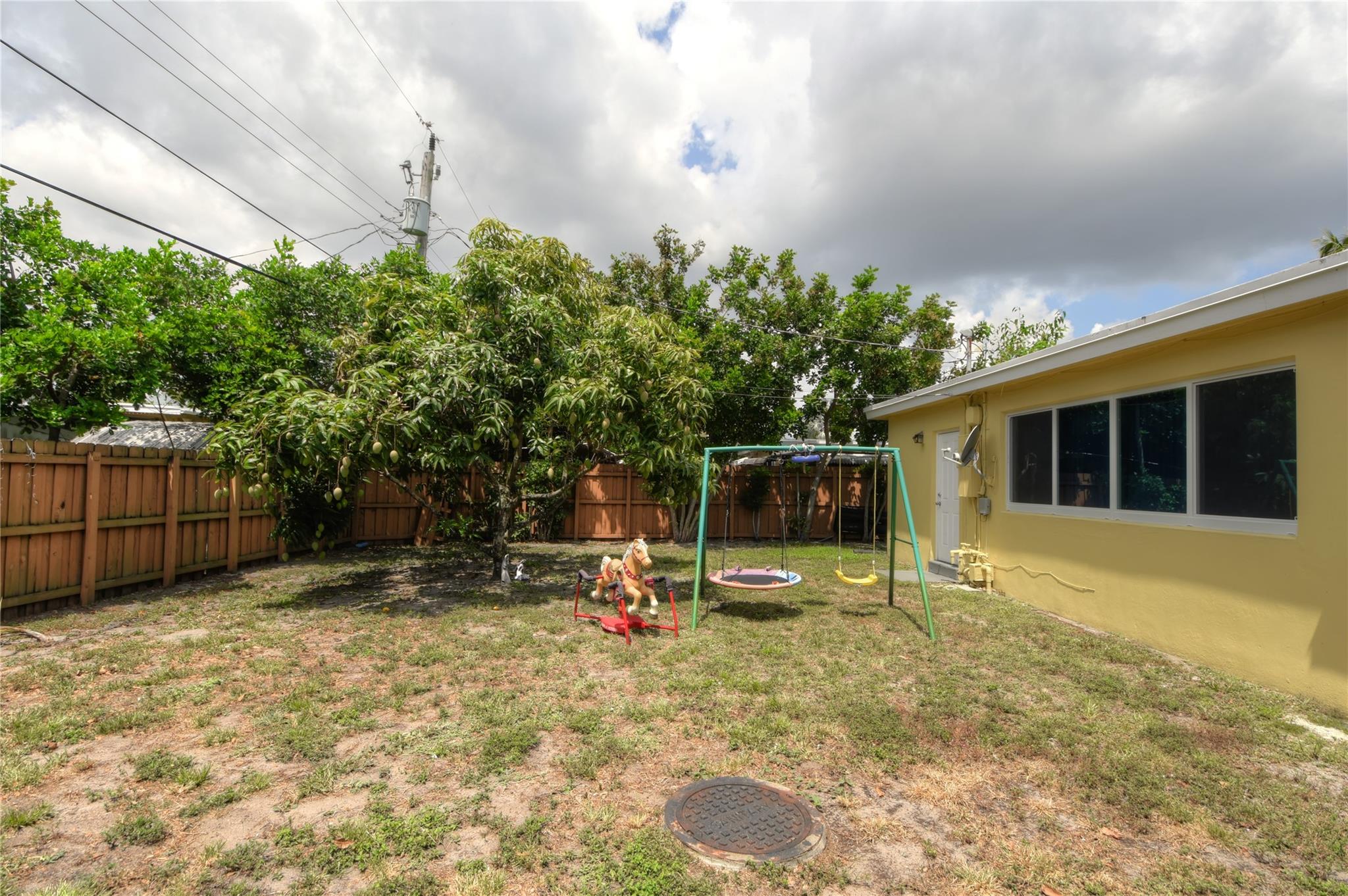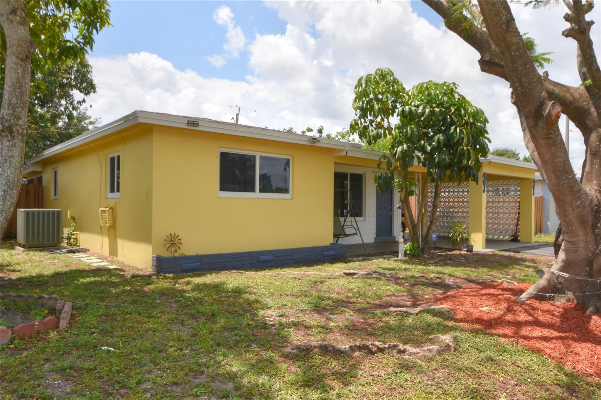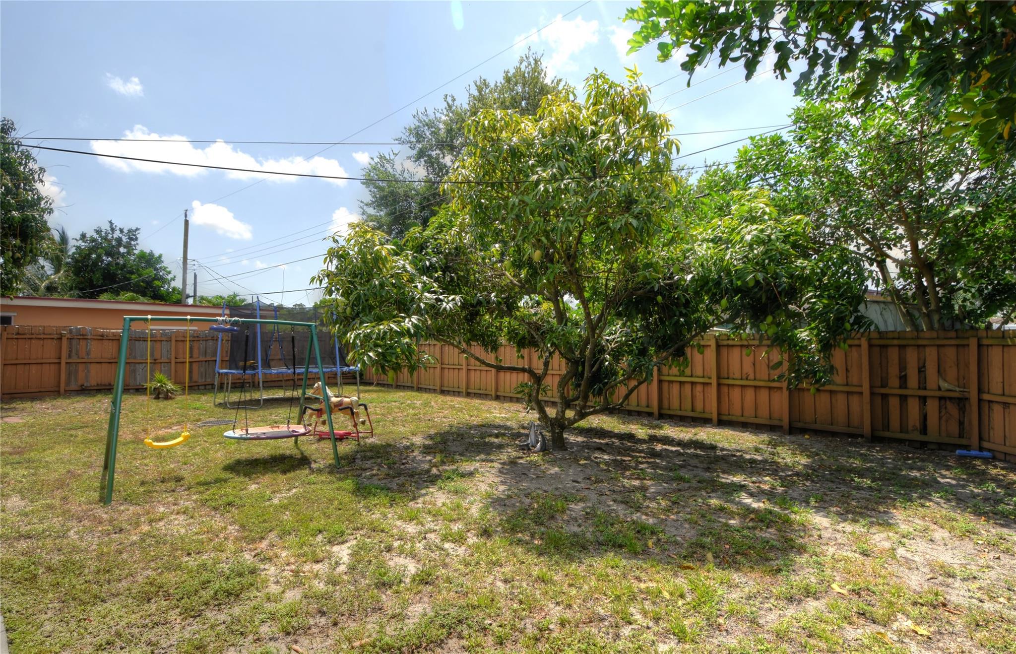 Welcome to your new home! Nestled on a generous lot with a sprawling backyard, this delightful ranch-style residence offers a seamless flow. Step inside to discover a grand living space, easily accommodating distinct dining, living, and family areas. The eat-in kitchen conveniently opens to a sizable laundry and pantry. You'll appreciate the bright and airy bedrooms, along with the added peace of mind of impact windows and a newer septic system. Parking is a breeze with a carport providing direct kitchen access, plus driveway space. The fenced backyard boasts a bountiful mango tree, while a majestic shade tree graces the front. Enjoy the convenience of a fantastic neighborhood park just down the block.