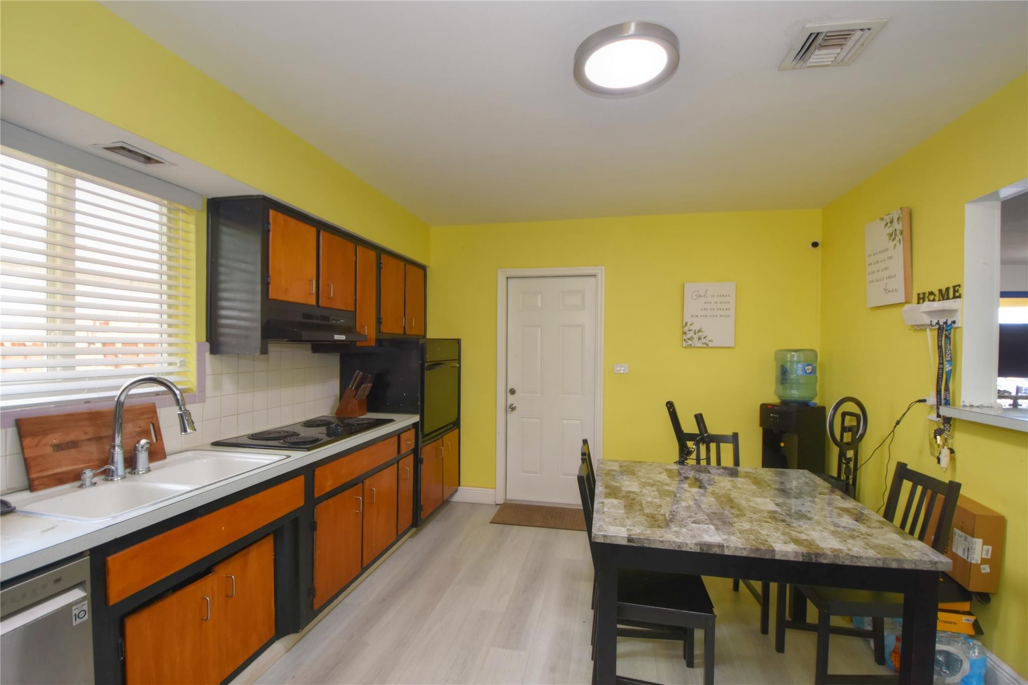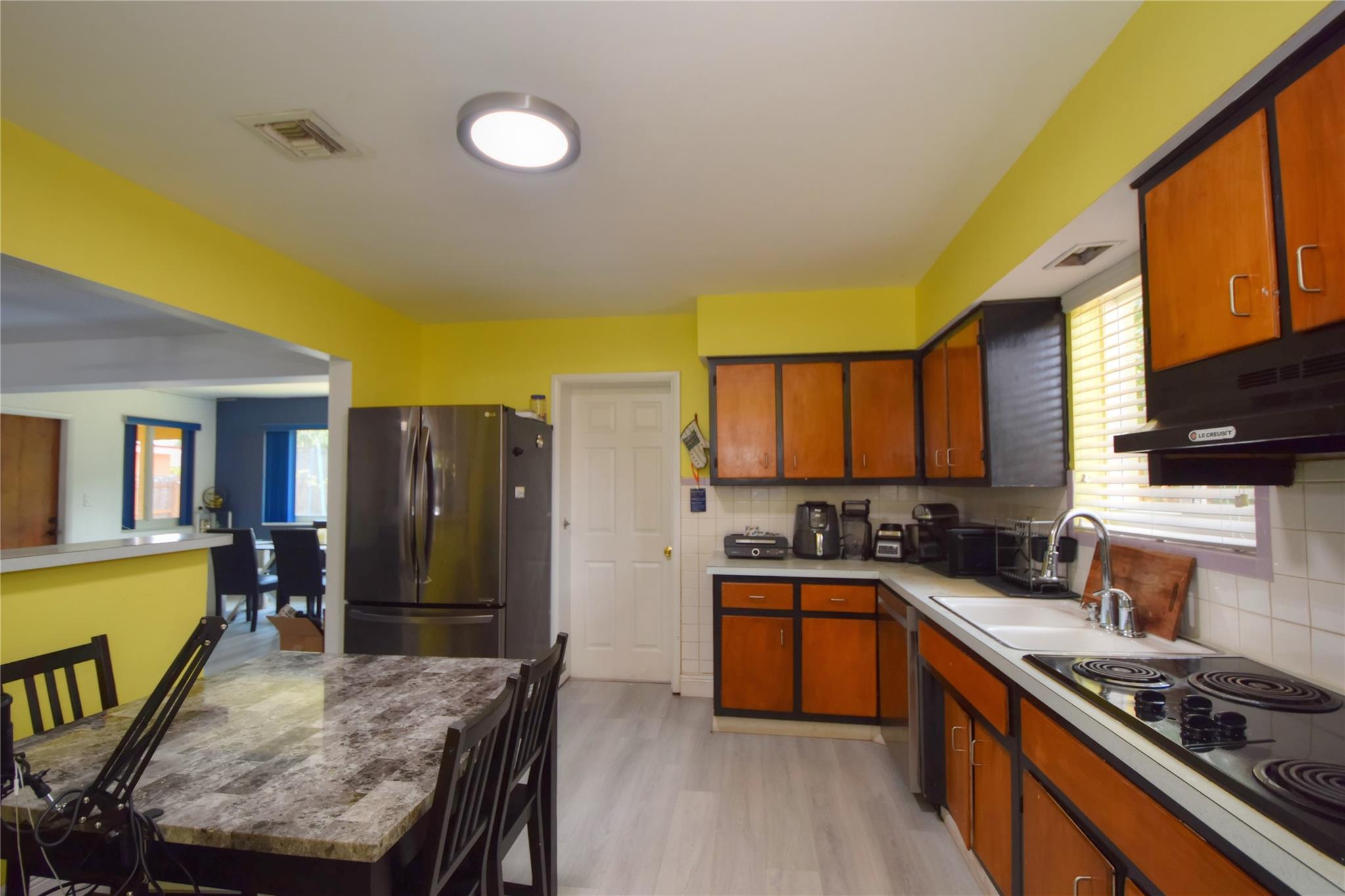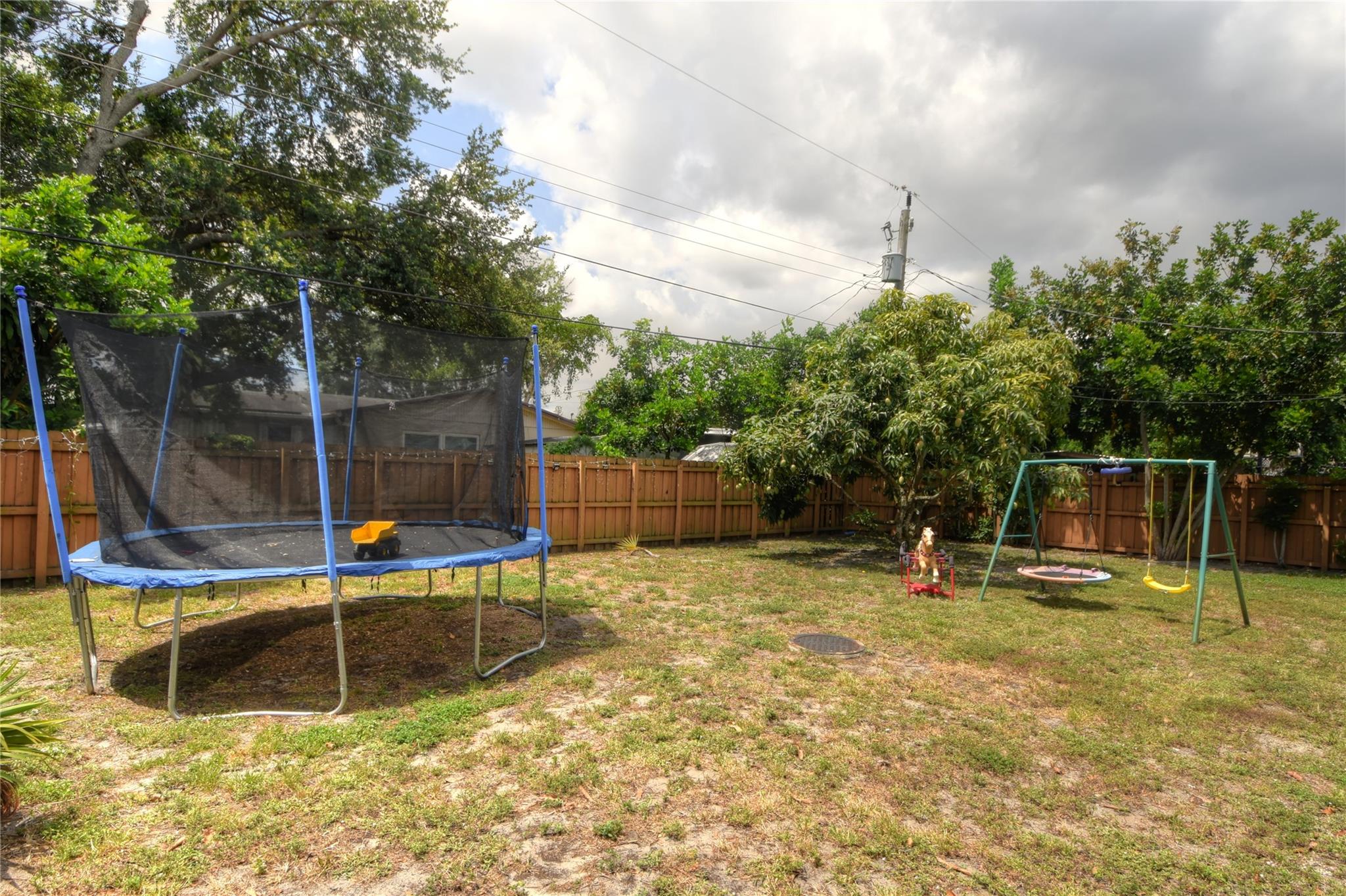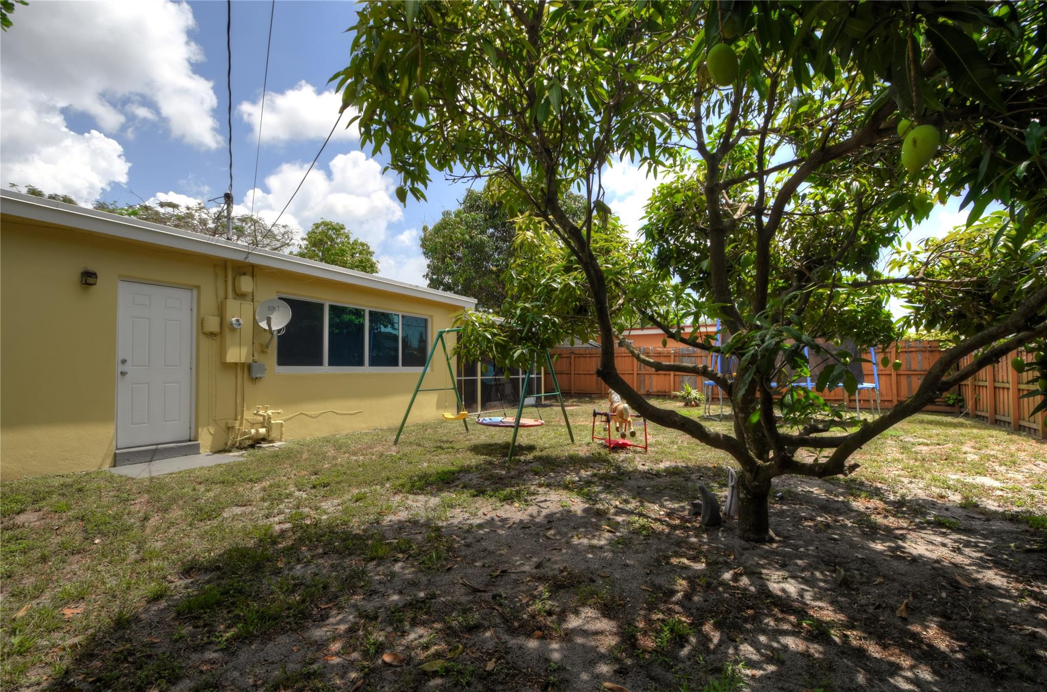 Welcome to your new home! Nestled on a generous lot with a sprawling backyard, this delightful ranch-style residence offers a seamless flow. Step inside to discover a grand living space, easily accommodating distinct dining, living, and family areas. The eat-in kitchen conveniently opens to a sizable laundry and pantry. You'll appreciate the bright and airy bedrooms, along with the added peace of mind of impact windows and a newer septic system. Parking is a breeze with a carport providing direct kitchen access, plus driveway space. The fenced backyard boasts a bountiful mango tree, while a majestic shade tree graces the front. Enjoy the convenience of a fantastic neighborhood park just down the block.