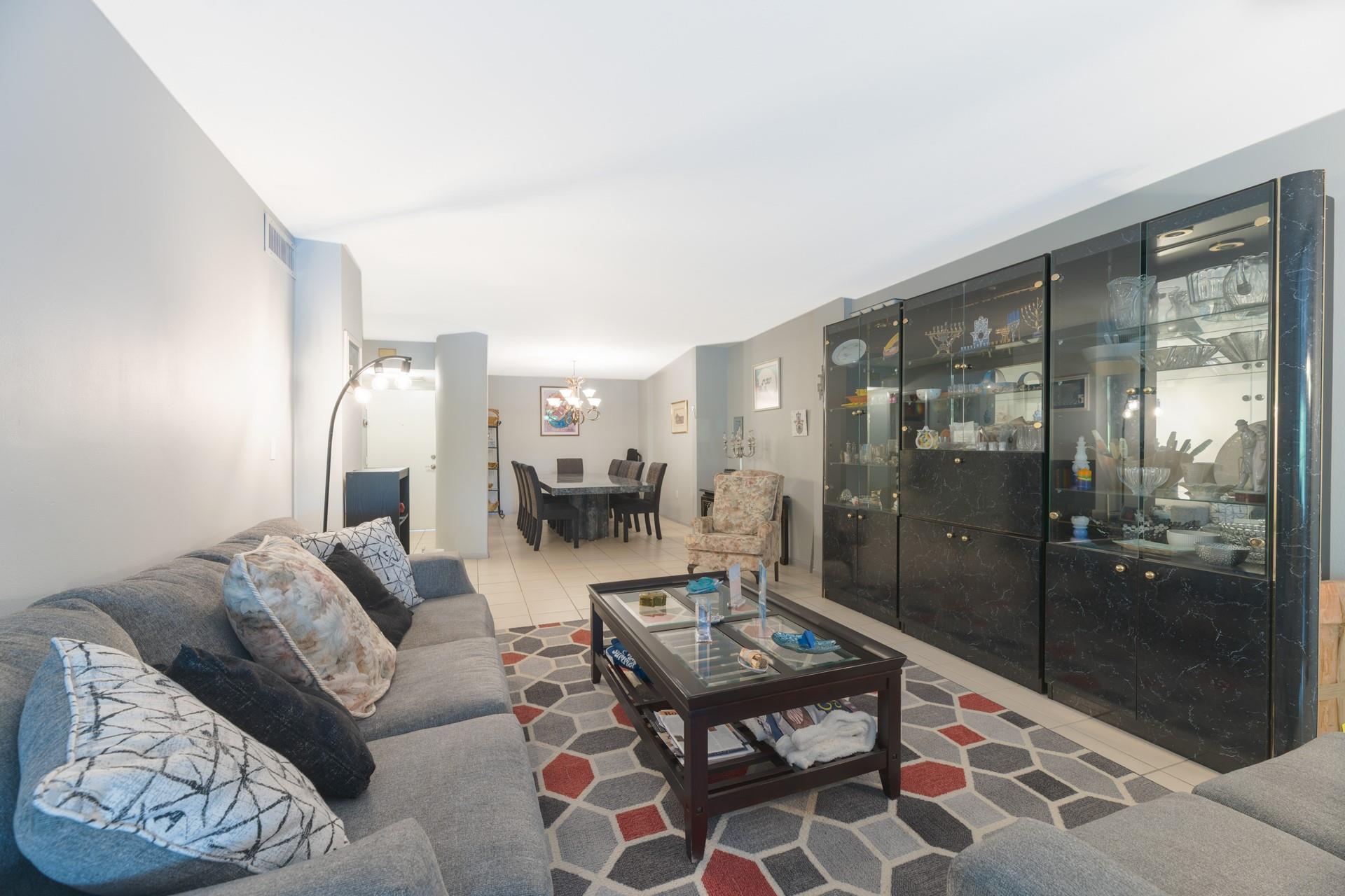 Stunning 2-bedroom, 2.5-bath waterfront condo in the sought-after Grandview. This spacious unit features walk-in closets galore and a roomy, light-filled living room & bedrooms. Enjoy the beautiful views of the canal and golf course from the large screened-in balcony, accessible from both bedrooms & the living room. The formal dining room adds to the charm, and additional storage is conveniently located just outside the entrance. This unit comes with 1 covered parking spot & ample guest parking. The community offers fantastic amenities, including a new pool and jacuzzi, gym, clubhouse, game room, and BBQ area. With 24-hour security, a roving guard, and on-site management, safety and convenience are top priorities. Ideally located within walking distance to houses of worship and shopping.