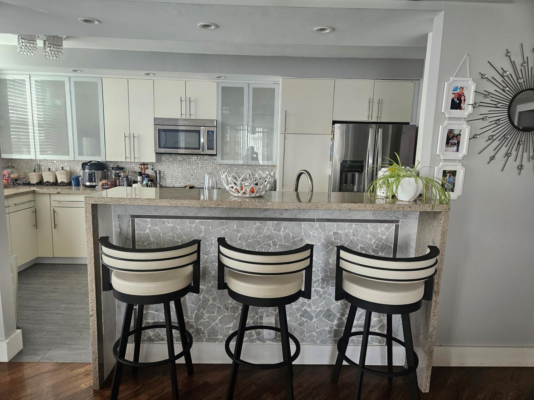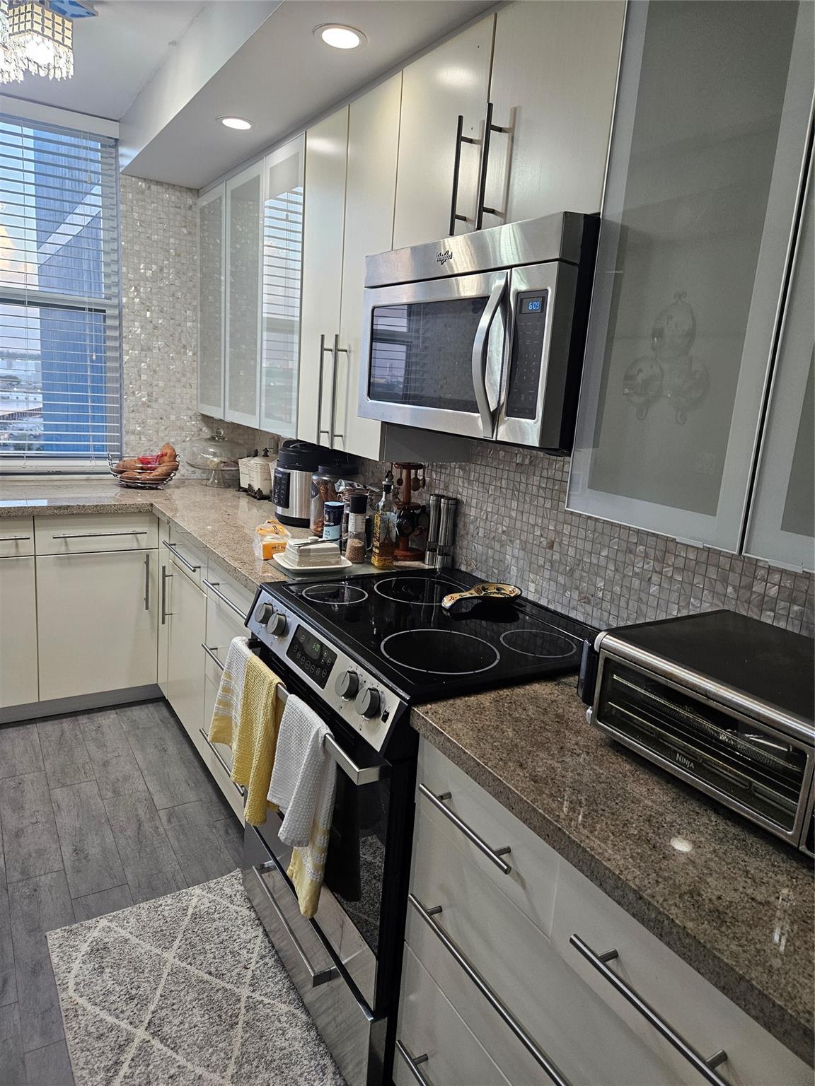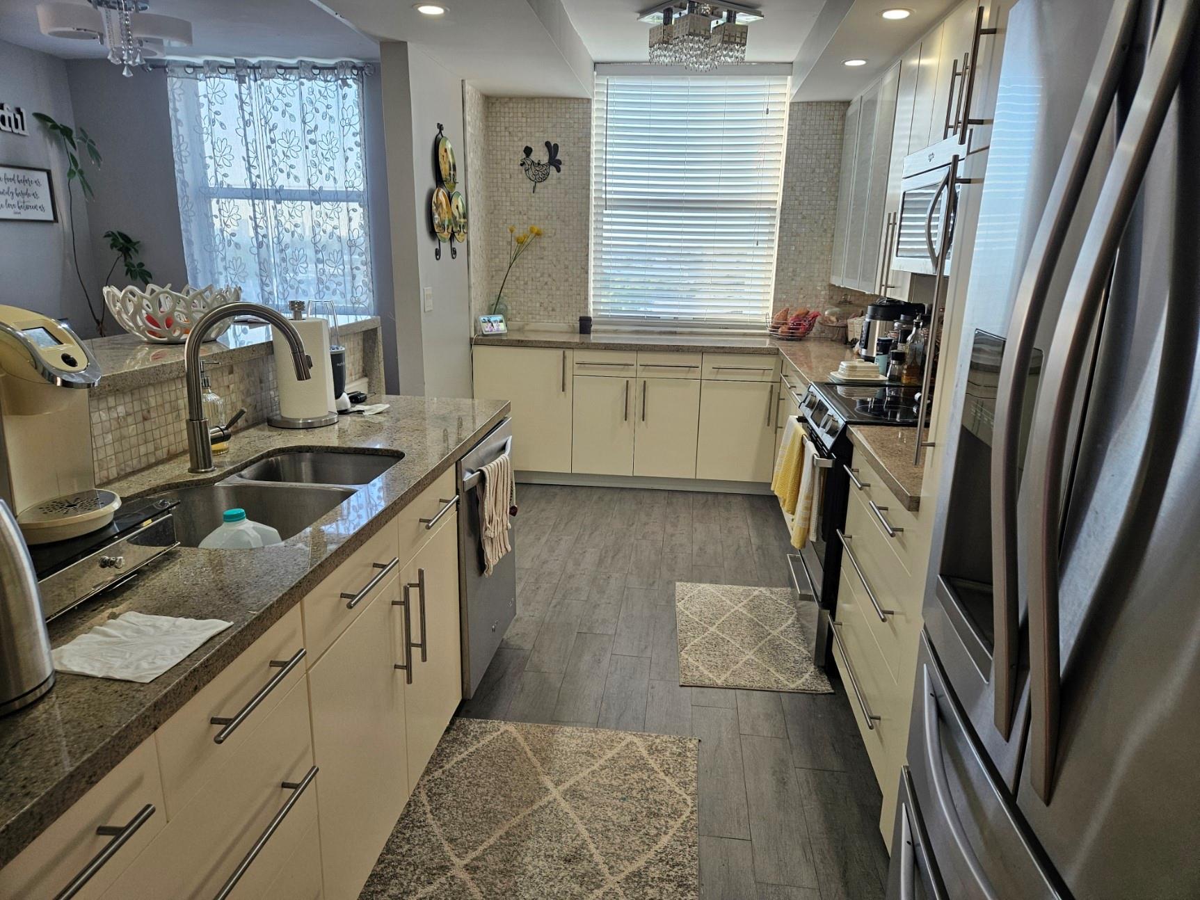 Very spacious corner unit in the sought after Hillcrest community. All age building. This unit has been fully updated. Tankless water heater. Bathrooms are equipped with LED mirrors and panel shower heads. Open floor living. Ceiling fans in all the rooms. All the windows are hurricane impact windows, including the balcony enclosure. Balcony enclosure gives more livable space with a beautiful view of the park and lakes. Water, trash, Internet and cable are included in the monthly HOA fee. Assigned parking a few steps away from the front door. There is pride in ownership in this home. Seller will assist with closing costs at full price offer. This unit is a must see. All furnishings are available for sale. Owner/Agent.