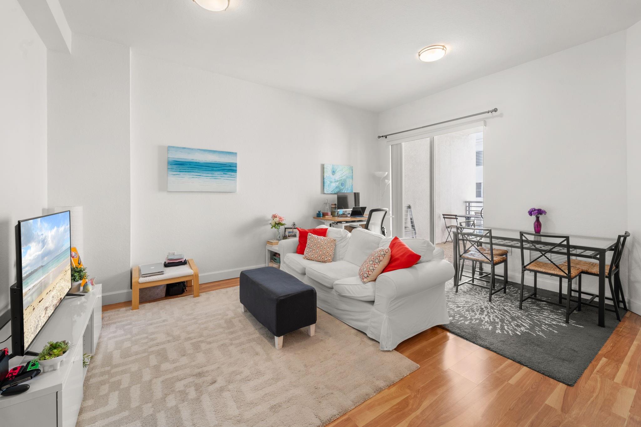 Welcome to this oversized 1BD/1BA located at The Radius Condos, one of the most sought-after buildings in East Hollywood. This bright and airy unit boasts a open floor plan, full laundry room and an expansive closet, making it one of the larger one-bedroom layouts available. The property is on a floor that boasts an extra foot of air space so the high ceilings make the large living space feel even bigger. Experience luxury with amenities like a concierge, 24- hour security, gym, sauna, and resident's lounge. Enjoy valet, assigned, and guest parking, plus conveniences like cable, internet, and rentable storage. Just a short walk from Downtown and minutes from our award winning Broadwalk and Beach, this pet-friendly high-rise offers an affordable South Florida lifestyle worth living.