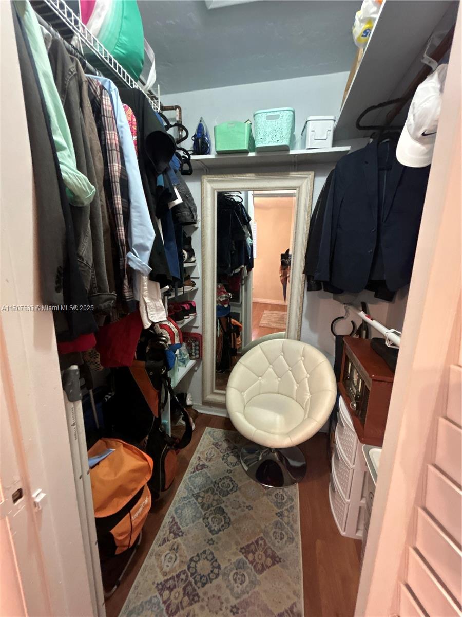 Come live in a quiet and private location in East Hollywood. 7 minutes to Hollywood beach. This is a 1 bed 1 bath location 2nd floor and is a corner unit. Neat, clean and spacious with newer flooring throughout. Kitchen offers a farm sink and has a tankless water heater. There is also a mini split unit installed. The master room has a walk-in closet with useful access on both sides, and some attic storage. The building has only 19 units. Well groomed, super quiet and maintained- it provides you with a private and quiet atmosphere. Property has secured electronic access from north and south. Designated parking. Hurricane shutters. The roof is new and association holds some reserves. Low monthly Fee. Washer/Dryer onsite, small storage available.