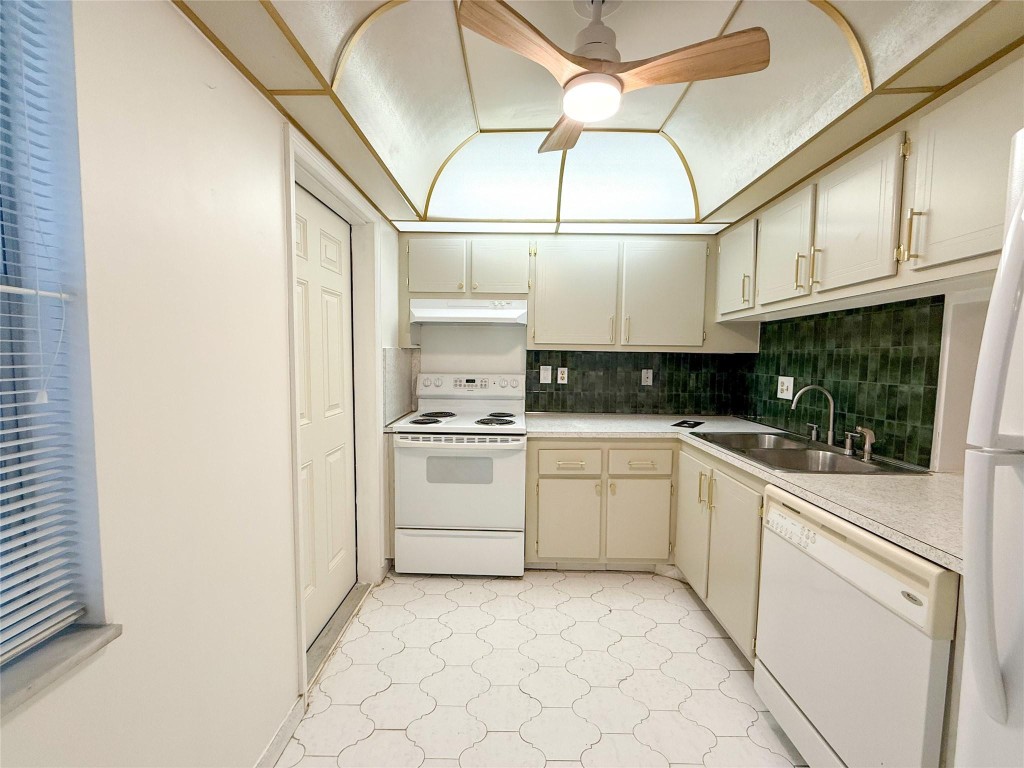 Welcome to your serene retreat in the heart of Hallandale Beach! This freshly painted condo offers the perfect blend of comfort and convenience in a well-maintained 55+ community. Enjoy beautifully renovated bathrooms, a partially remodeled kitchen, and easy-care tile flooring throughout. The spacious bedroom is a standout, featuring three closets, including a generous walk-in for all your storage needs. Step outside to your screened-in patio overlooking lush greenery — a peaceful spot for morning coffee or relaxing evenings. This community offers amenities, including a pool, well-equipped gym, soothing sauna, and walking paths. Located just minutes from the beach, you're never far from sun and sand. Secure call box entry for peace of mind. Assoc. requires 698 credit score.