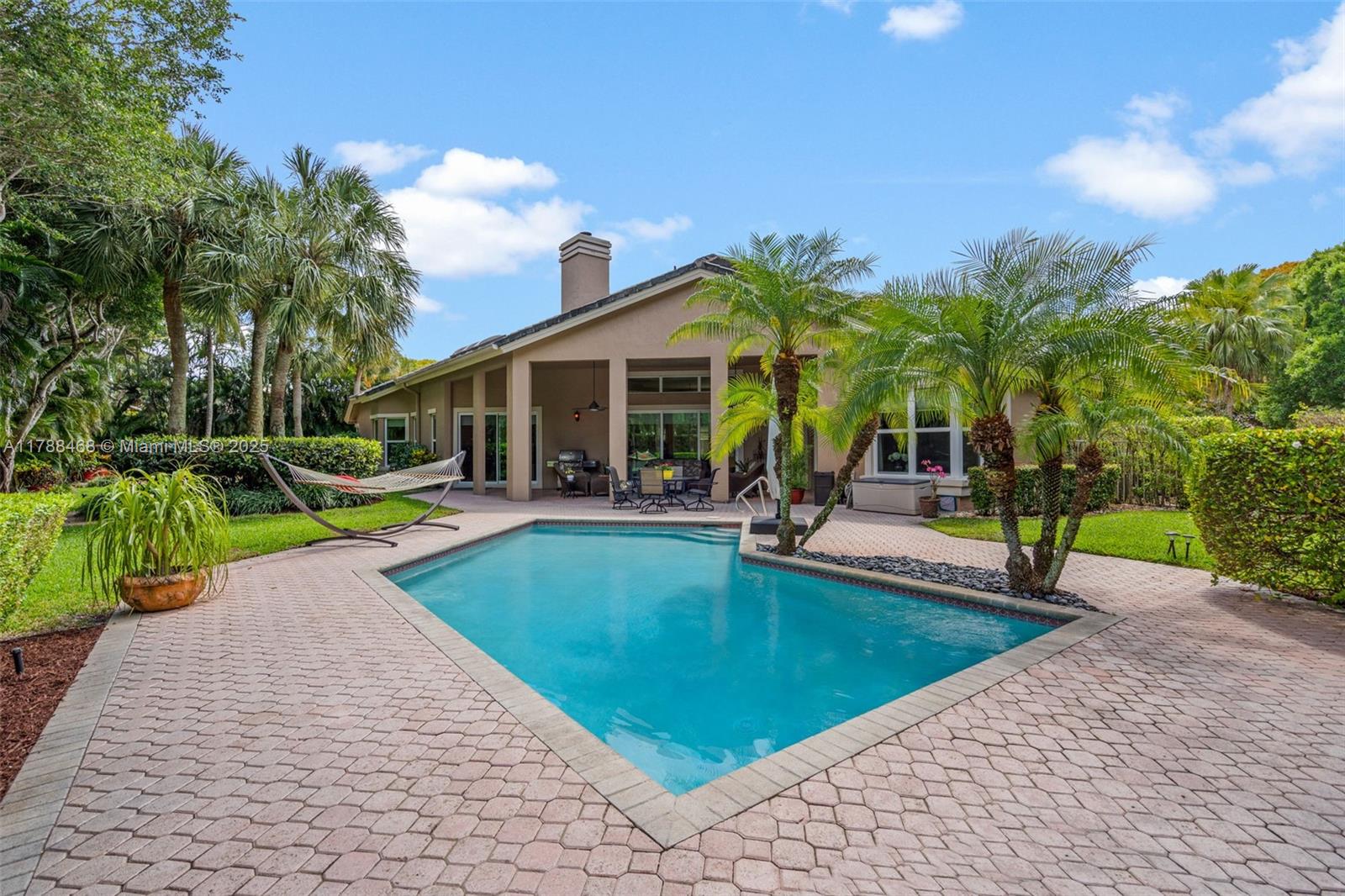 Elegant Family Living in a Gated Tropical Oasis. This 4 Bed + Den, 3.5 Bath home offers refined family living with space, comfort, and style. The 3 car garage has a converted extra room adding an additional 285 Sqft making the total under A/C approx 4,200 sqft. Enjoy high ceilings, expansive living areas, a dedicated home office, and sunlit bedrooms with tranquil garden and pool views. A gourmet remodeled kitchen & new bathrooms add modern convenience, while serene bedrooms provide restful private spaces. Step into your private backyard paradise with a sparkling pool and outdoor living room --perfect for entertaining. Hurricane Impact Windows & Doors 2019. Close to Top Cooper City schools, parks, and upscale shopping, this is luxury living made for family life. Easy to Show!