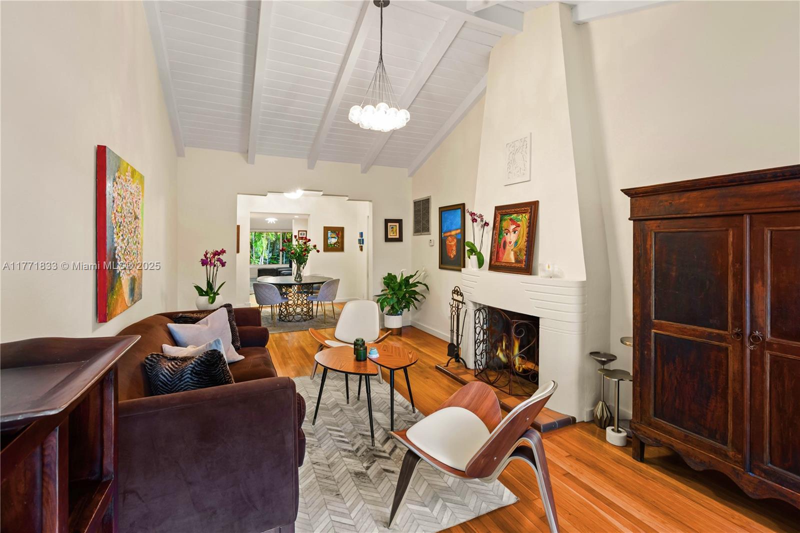 Lovely Mediterranean Coral Gables home with 3-Bedrooms, 3-baths on a large 8,475 sq. ft. lot with plenty of room to expand or build a pool. Beautiful wood floors, vaulted ceilings, impact windows and doors. Great family room, living and dining, wood burning fire place and beautiful natural light. Kitchen has wood cabinetry and stainless steel appliances, home has a one car garage and is only a short walk from downtown coral gables and its many restaurants and business district.