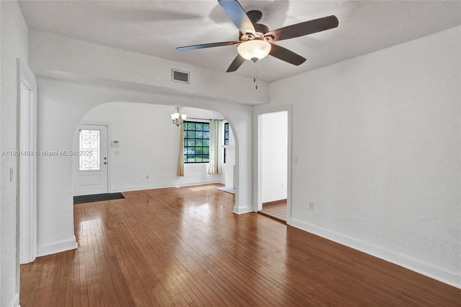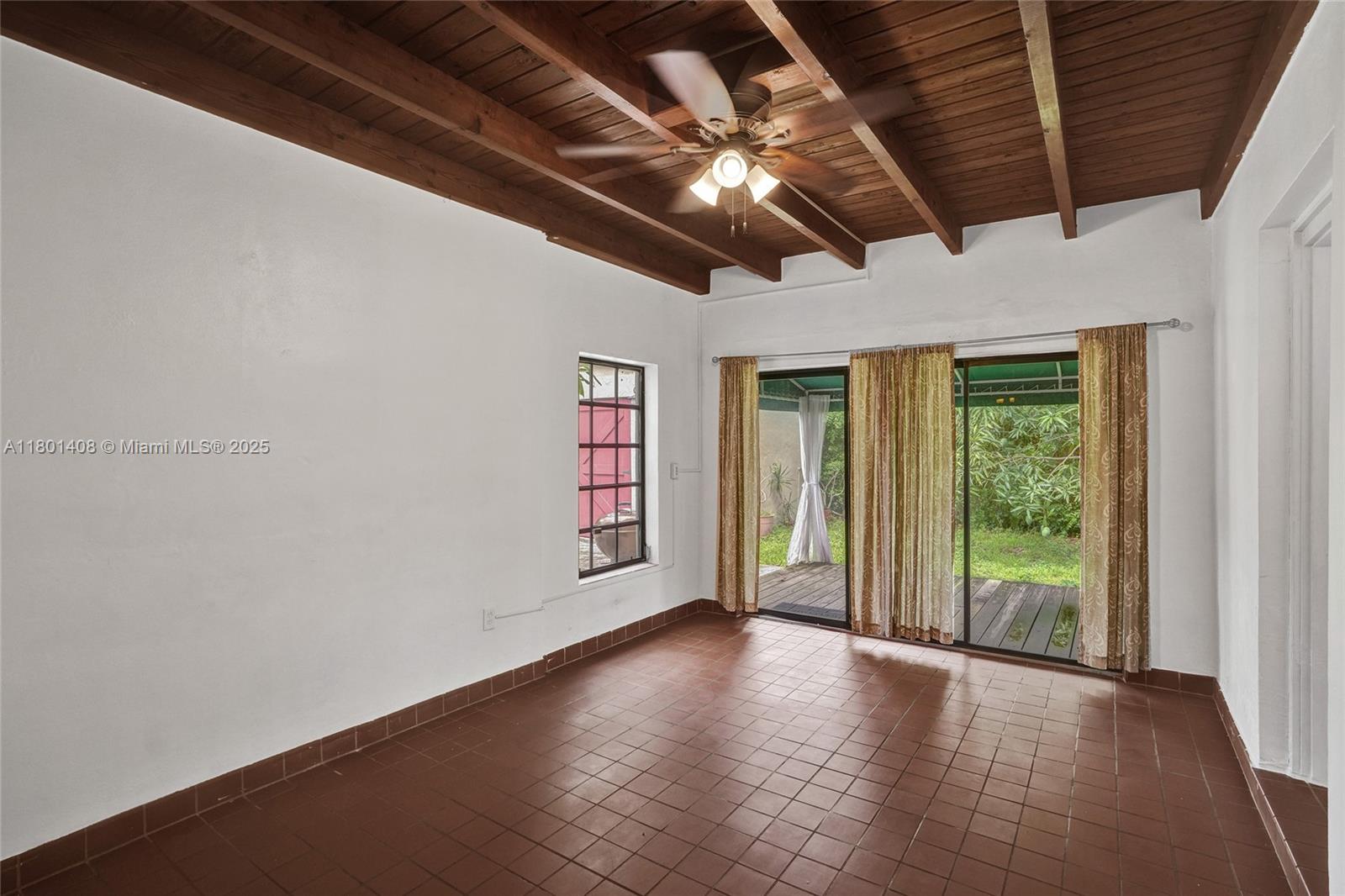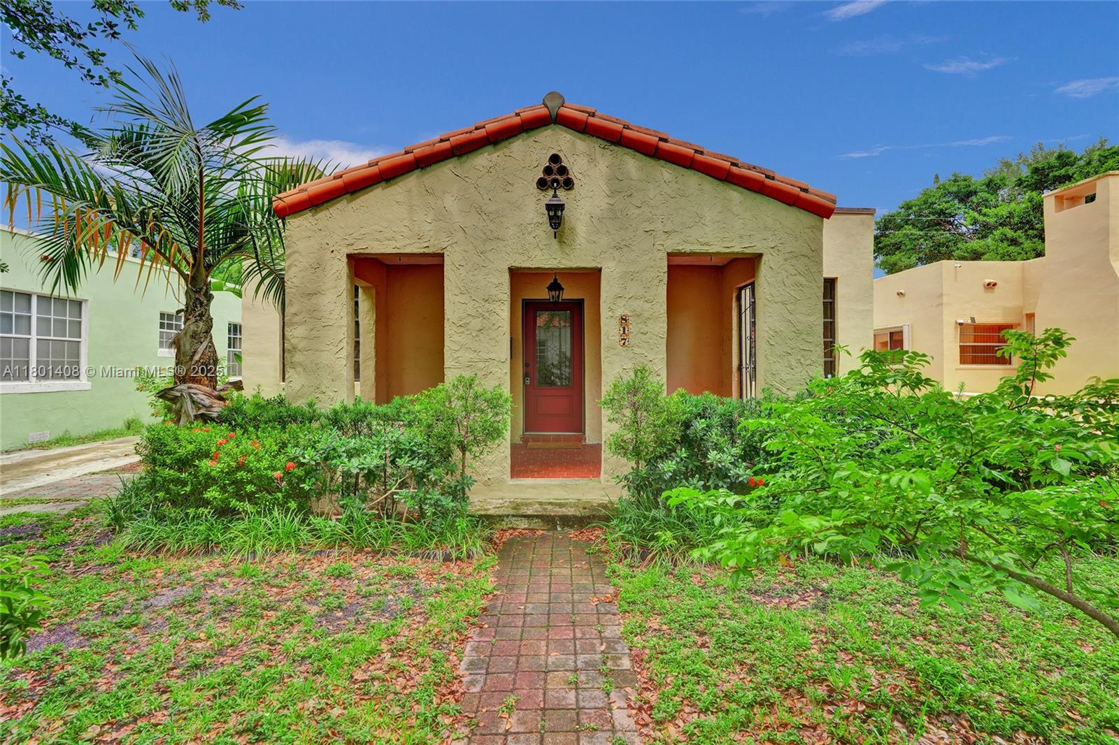 Charming 1926 Old Spanish home in North Gables with spectacular hardwood floors, fireplace, and high volume ceilings. Spacious backyard with covered veranda and detached garage with endless possibilities. The roof and electrical were completely redone in 2014. The home sits on a quiet street a short distance from Miracle Mile, Coconut Grove and Miami International Airport. Great opportunity to move into Coral Gables without breaking the bank.