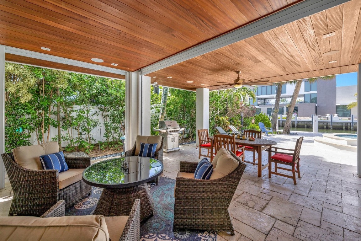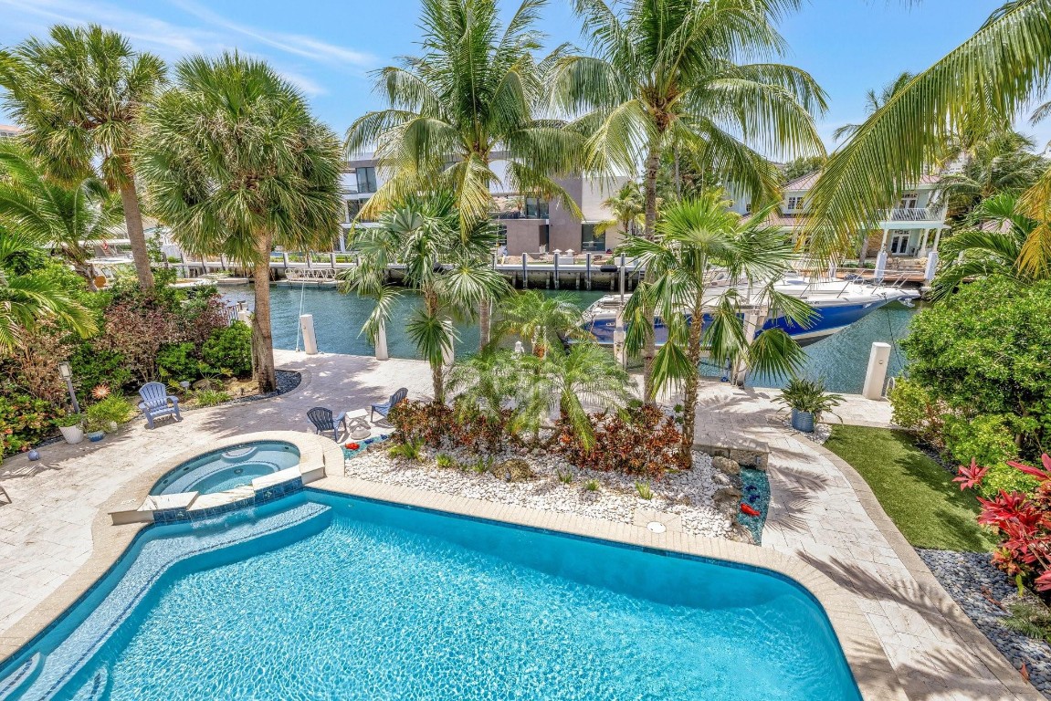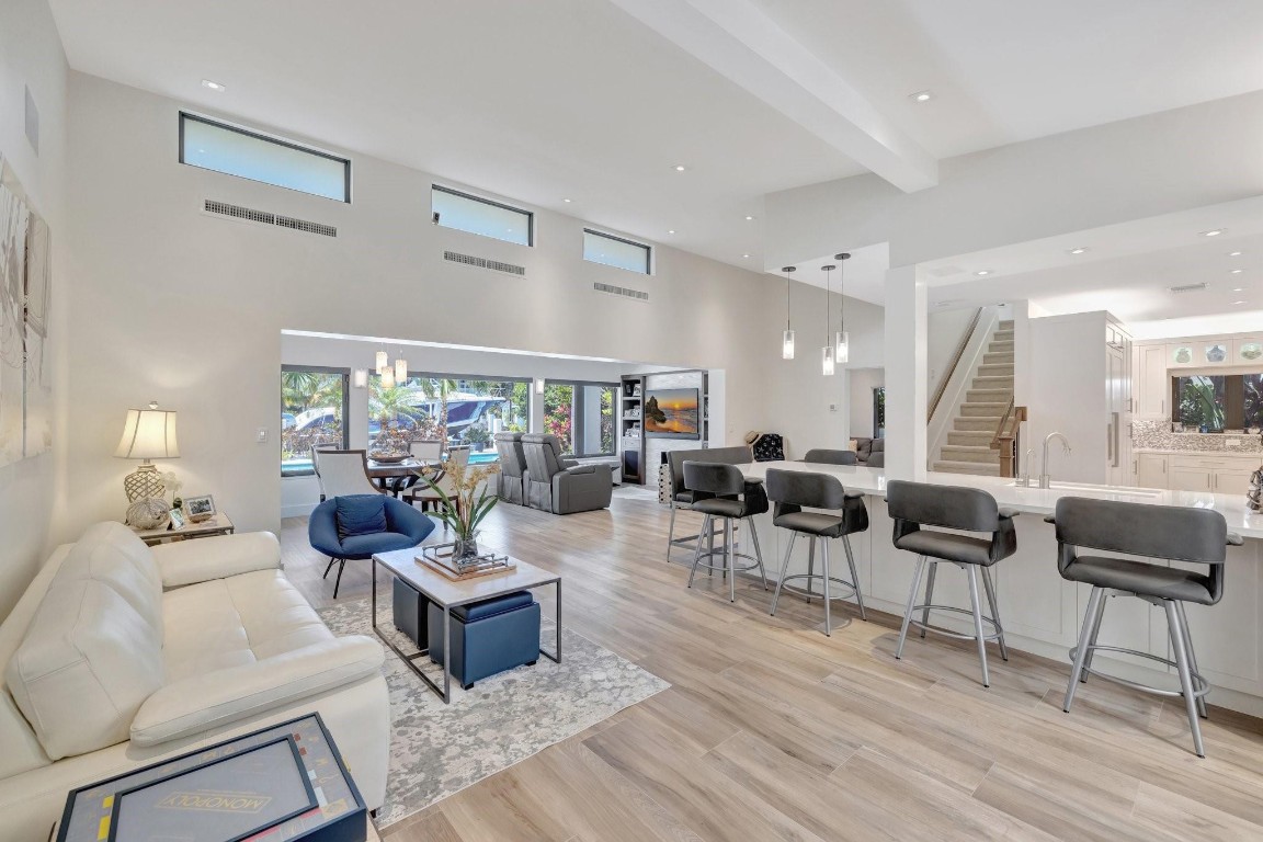 Located in the prestigious, guard-gated Seven Isles with 24/7 security patrol, this fully remodeled (2018) 4BD/4.5BA waterfront home offers 76 feet on a wide canal with a boat lift, ocean access, and no fixed bridges. With 3,766 sq ft of living space, it features two expansive primary suites—one up, one down—ideal for guests or multigenerational living. Enjoy a resort-style pool, spa, lush subtropical landscaping, whole-house generator, and chef’s kitchen. Close to the beach and Las Olas from this prime Fort Lauderdale location. Designed for both elegance and function, the open floor plan is ideal for entertaining, with light-filled living spaces that flow effortlessly to the outdoors. Minutes from world-class shopping, dining, this home is the complete South Florida lifestyle package.