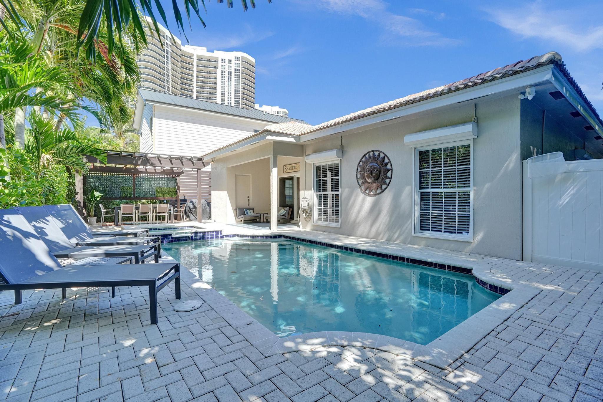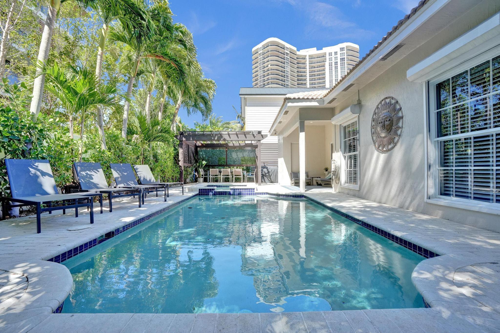 Nestled in a rare Beachfront community this beautiful custom home boasts a perfect blend of elegance + comfort just STEPS from the sand. Featuring 3 spacious bedrooms and 2.5 bathrooms, this home offers out a thought-out space for entertainment and relaxation. Completely open floor plan with unique u-shaped kitchen offers so much counter & seating space. Split floor plan between the Bedrooms. Master suite features a luxurious BR with a floating tub + Walk in closet. Backyard oasis where you get to enjoy the coastal breeze. Pool + Hot tub. Cabana Bathroom. Outdoor Shower. Pergola for shade perfect to enjoy a meal outside! 2 Car Garage. This home will ensure you a lifestyle of ease and comfort. Walk/Golf cart to Publix & so many restaurants. Close to LBTS, Downtown Las Olas & Airport.