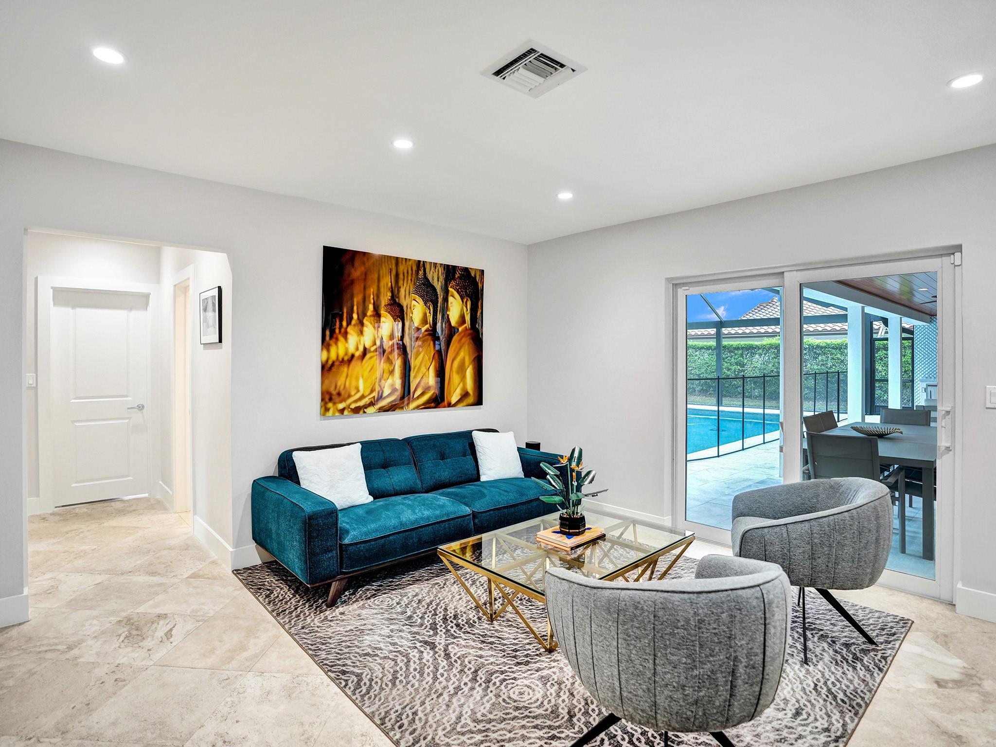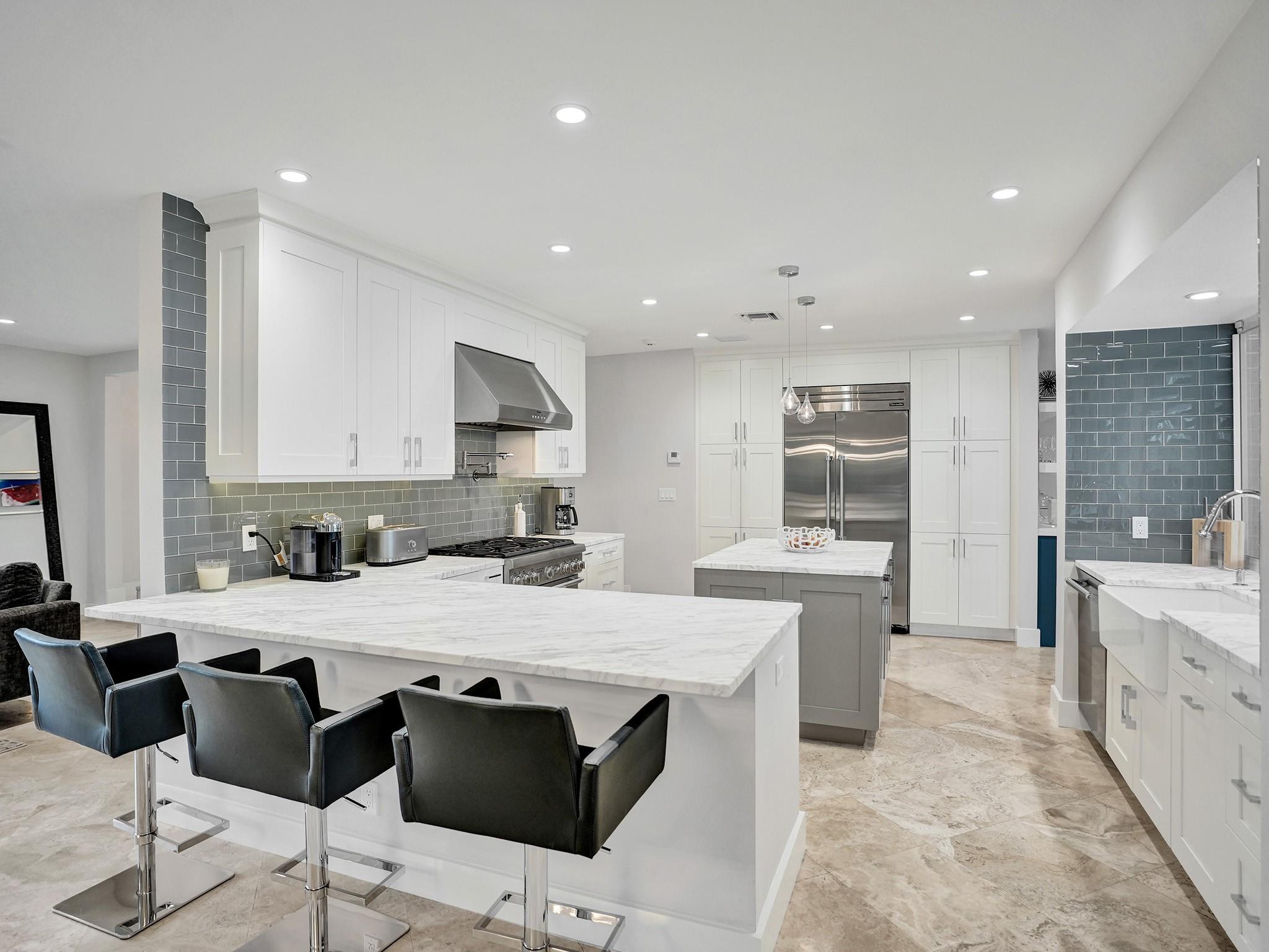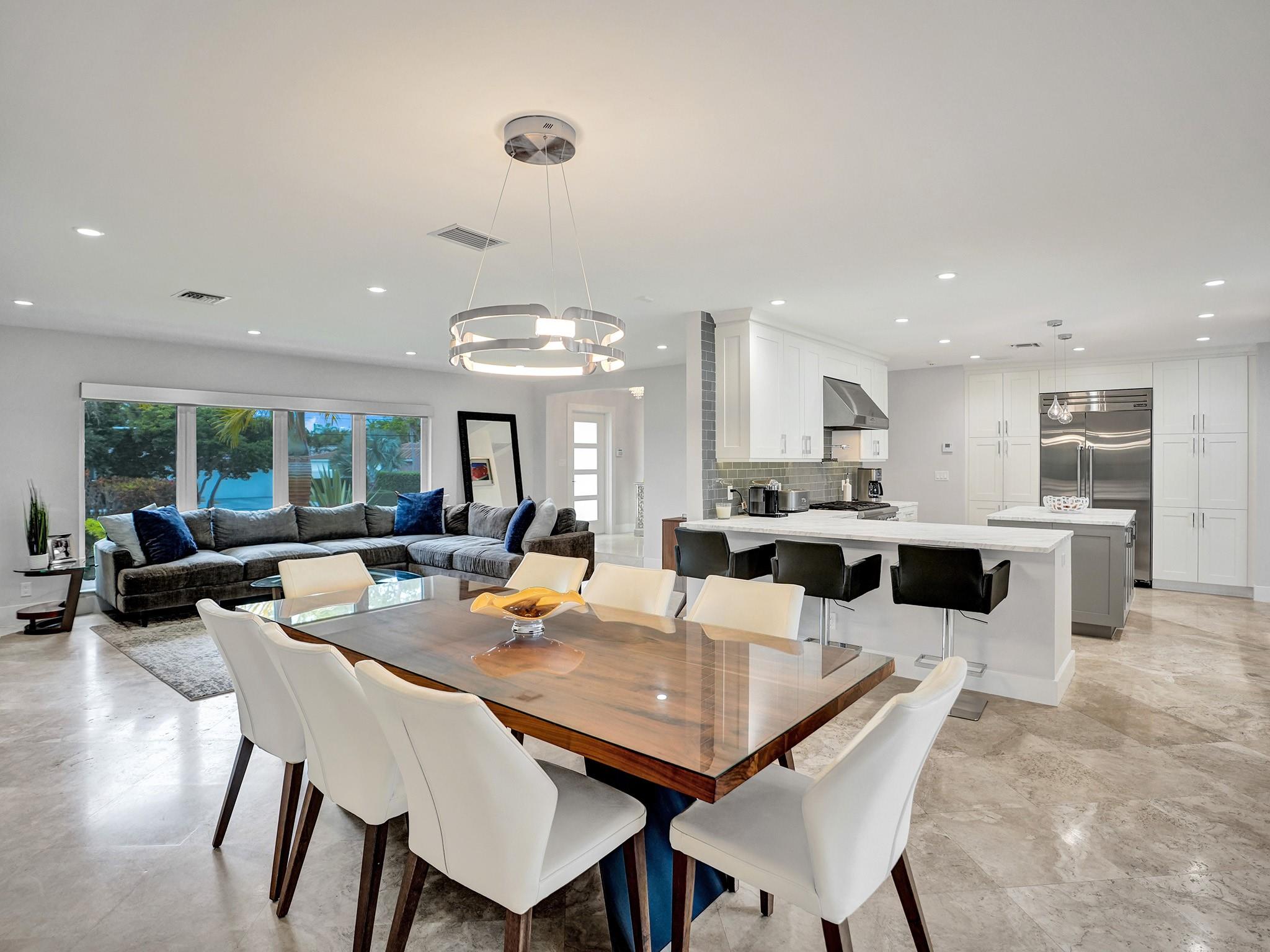 Completely remodeled home on the private Coral Ridge Country Club golf course. Fantastic views. Incredible breeze all year (back yard faces directly East). Very high end remodel with no expense spared- Thermador appliances, HansGrohe fixtures, custom cabinetry in baths and kitchen. All Impact Glass & PVC sewer lines. New Metal roof installed 2024! One of the best porches you will ever see with custom Tongue & Groove ceiling and new built in summer kitchen. Massive backyard is approximately 50'x90' of grass! Beautiful pool area (heated and salt water pool). Custom kitchen has 6 burner gas range, tons of storage and many custom features. Open floor plan with tons of storage and closets. Large bedrooms. Awesome master w/ big bath (steam shwr) and great closets. New AC & Tankless water heater.