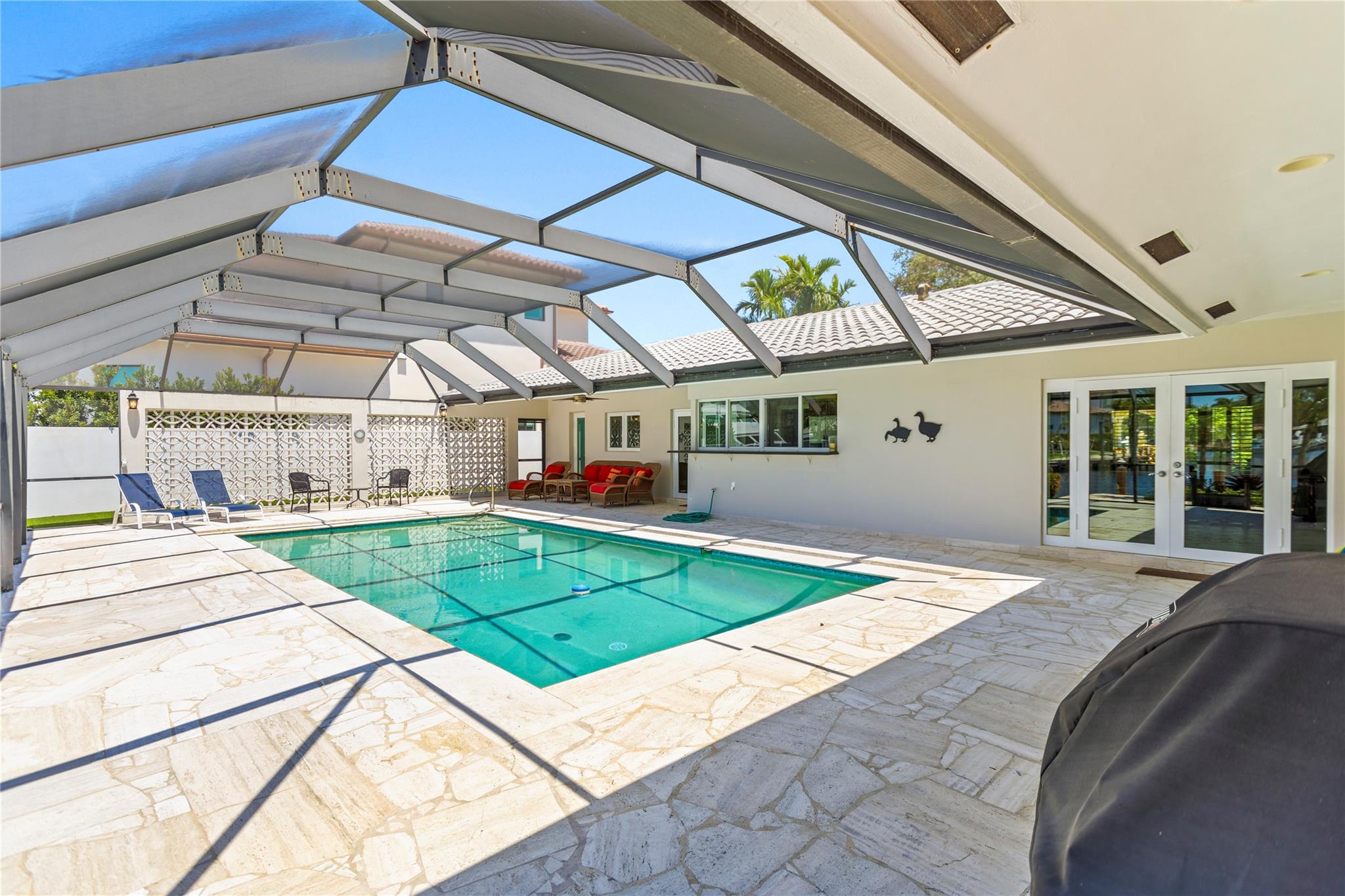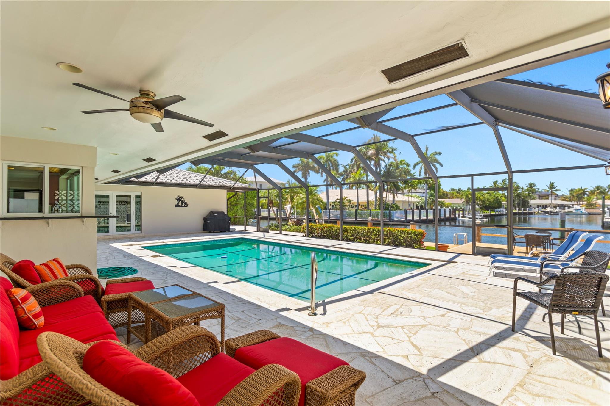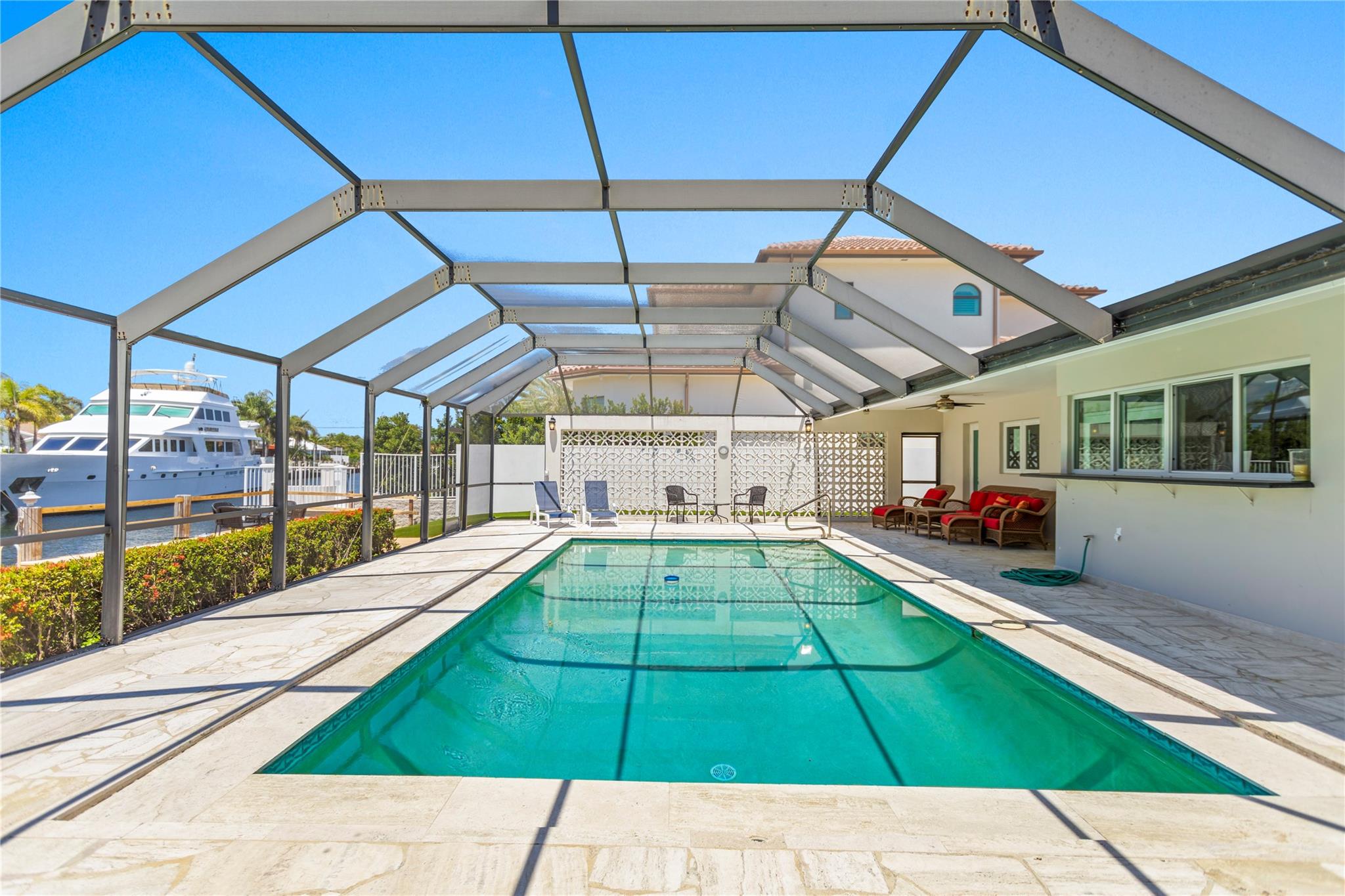 BOATERS DELIGHT! WELCOME TO HISTORIC, PRESTIGIOUS & SOUGHT AFTER LANDINGS NEIGHBORHOOD OF FORT LAUDERDALE DEVELOPED BY FAMOUS ARCHITECT HAFT GAINES JUST SOUTH OF BAY COLONY. THIS 3/3 HOME IS SITUATED JUST 3 HOMES FROM THE INTRACOASTAL WATERWAYS FOR EASY DIRECT OCEAN ACCESS AND SPECTACULAR VIEWS OF RARE WIDE T-CANAL WITH 85' WATERFRONT. SPACIOUS KITCHEN WITH EXTRA COUNTER SPACE, GRANITE COUNTER TOPS AND SS APPLIANCES, WINE FRIDGE AND PASS THRU WINDOW TO YOUR PRIVATE BACKYARD OASIS BOASTING POOL, CABANA BATH WITH STEAM SHOWER, COMPOSITE DOCK AREA, IMPACT WINDOWS, ARTIFICIAL TURF FRONT & BACK & EXTRA OFFICE SPACE. THIS IDEAL FAMILY RESIDENCE IS LOCATED NEAR PINE CREST SCHOOL, WESTMINSTER ACADEMY, LAUDERDALE BY THE SEA, BEACHES AND FINE DINING. SOUTH FLORIDA LIVING AT ITS BEST!