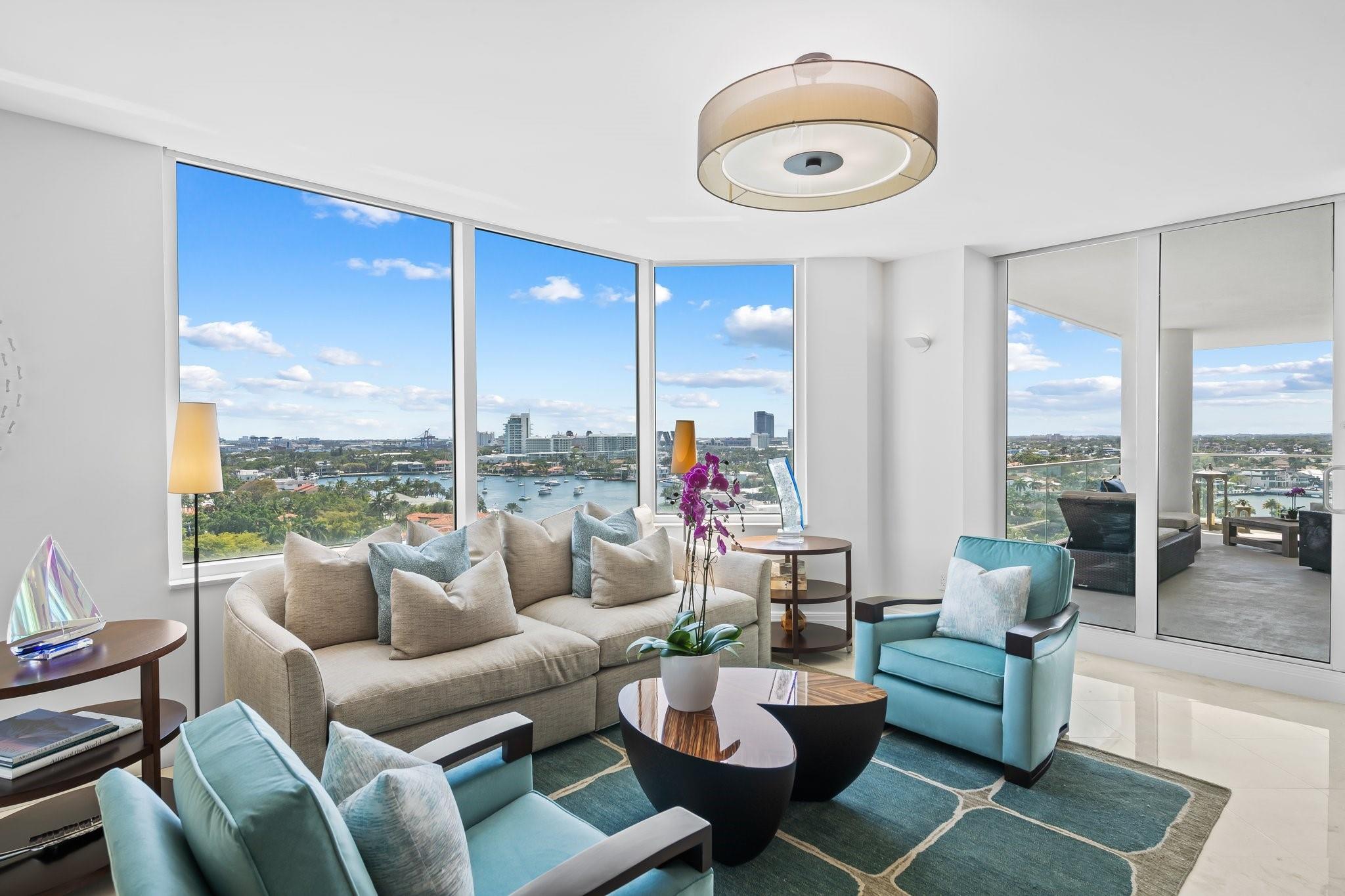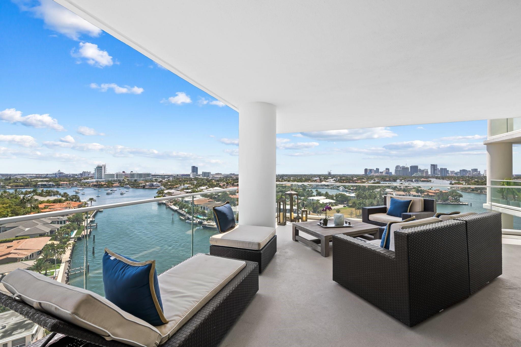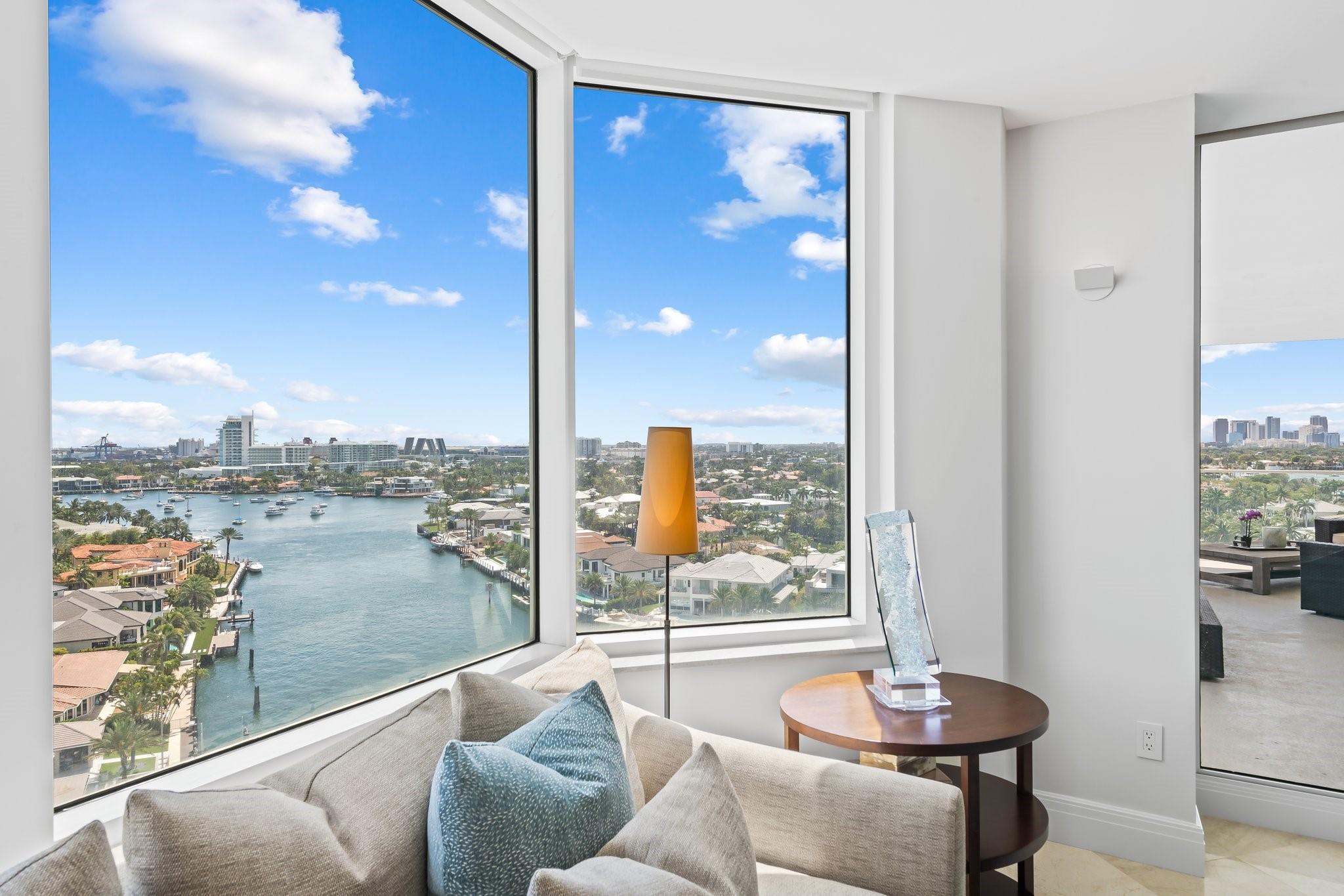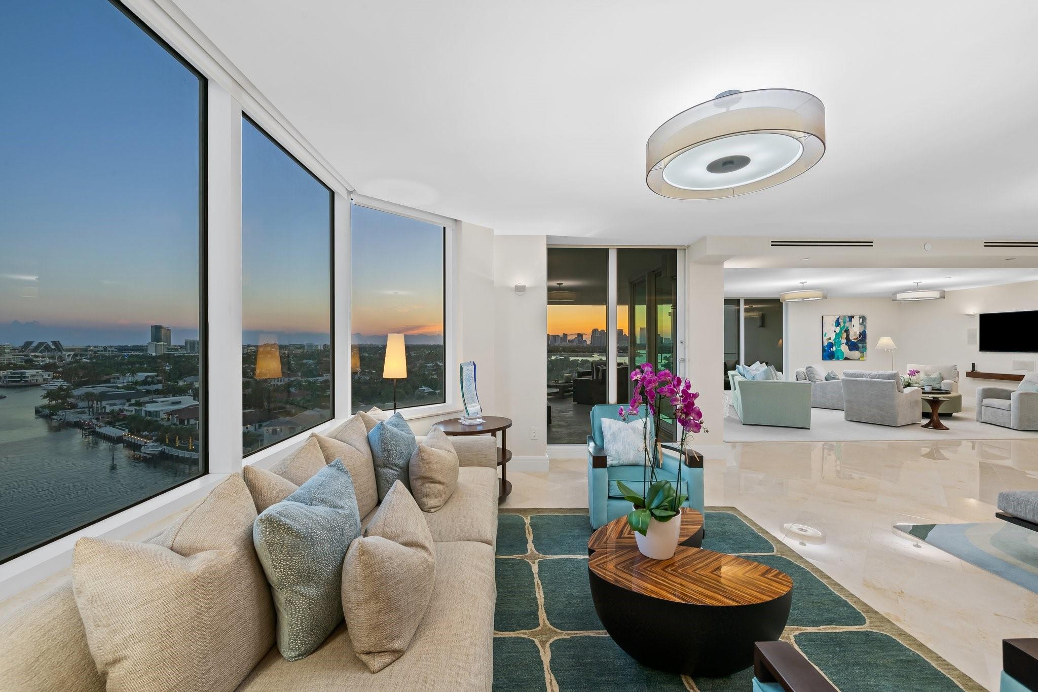 Experience luxury living on the vibrant Intracoastal in this elegantly furnished condo in Fort Lauderdale. With 3,368 square feet of beautifully designed interior space, this 3-bedroom, 2.5-bathroom residence offers breathtaking views of Fort Lauderdale, the Port, the Intracoastal Waterway, and Ocean. Nestled in a boutique building with just 44 units, this home features high ceilings and expansive windows that capture the scenic surroundings. Enjoy the expansive wrap-around balcony, perfect for soaking in the stunning vistas. The property boasts a waterfront barbq area and ocean access, ideal for leisure and entertainment. Appreciate the walkable neighborhood that's mere minutes from shopping, dining, and entertainment. This residence presents an unparalleled lifestyle opportunity!