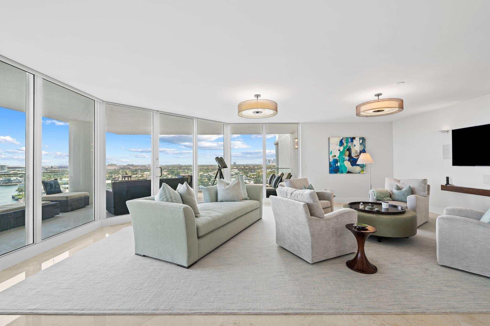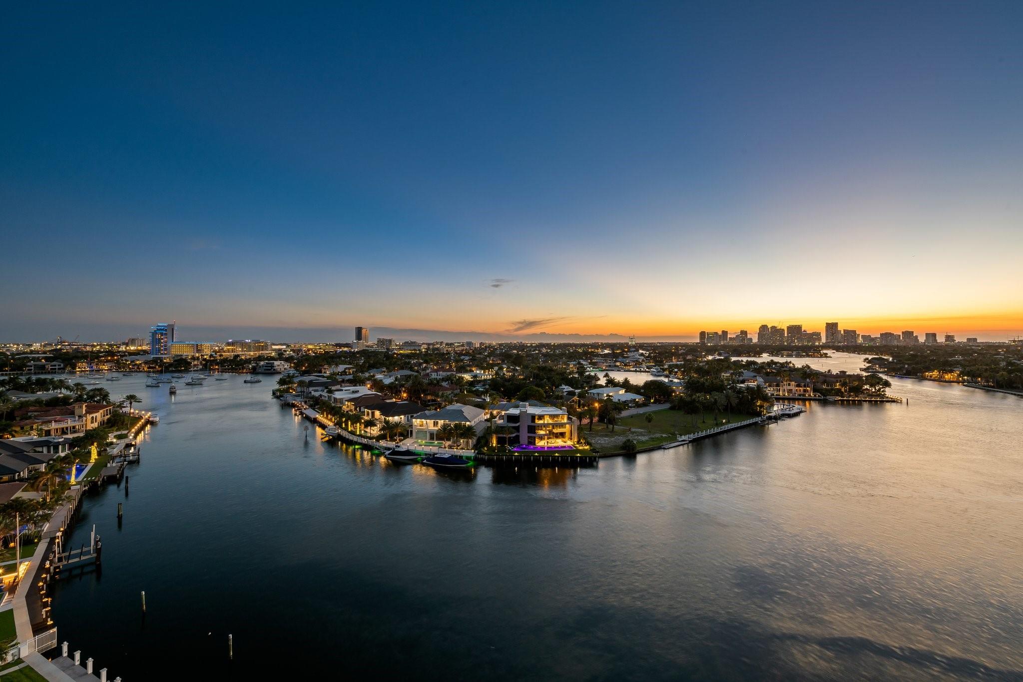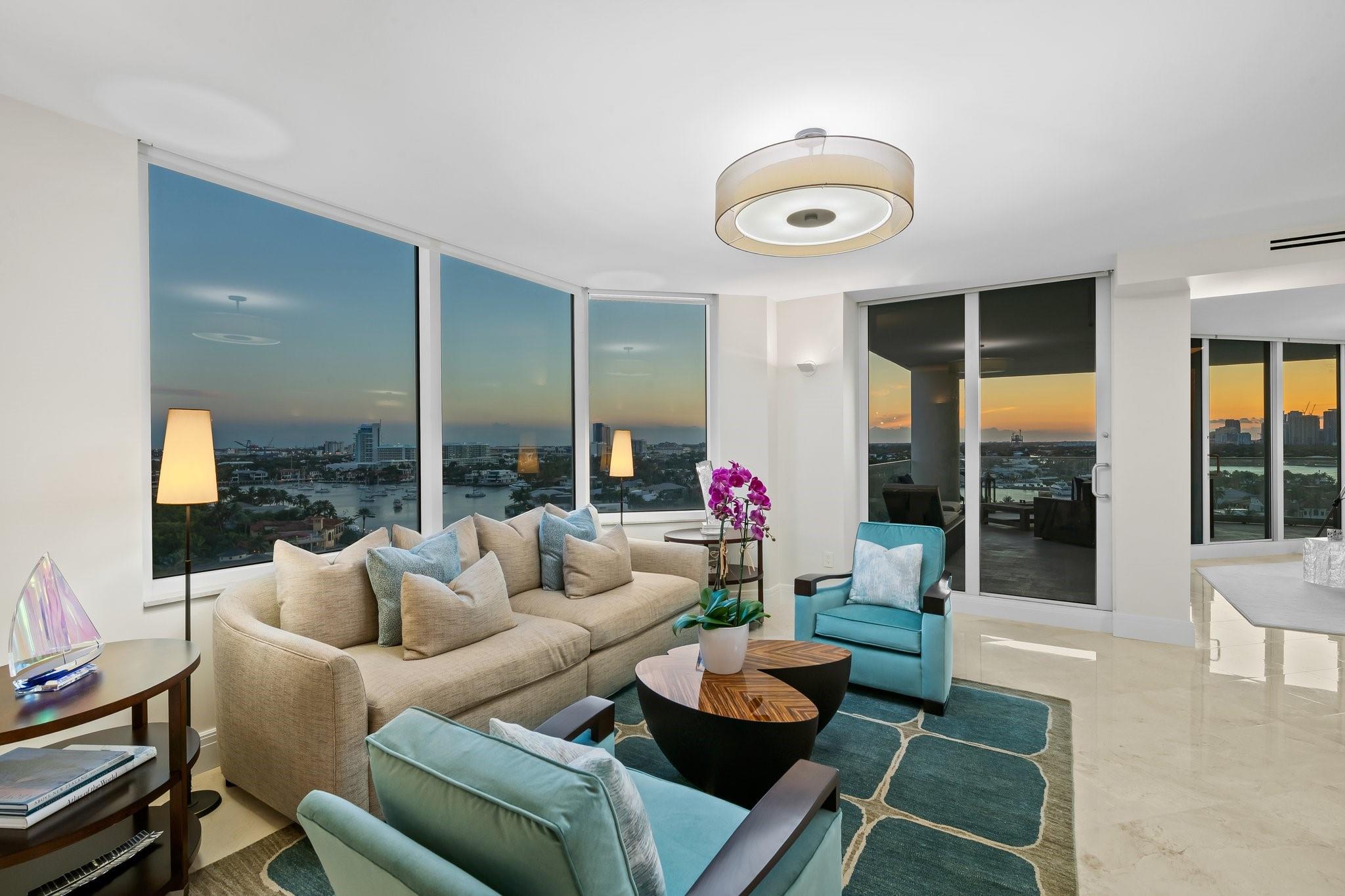 Experience luxury living on the vibrant Intracoastal in this elegantly furnished condo in Fort Lauderdale. With 3,368 square feet of beautifully designed interior space, this 3-bedroom, 2.5-bathroom residence offers breathtaking views of Fort Lauderdale, the Port, the Intracoastal Waterway, and Ocean. Nestled in a boutique building with just 44 units, this home features high ceilings and expansive windows that capture the scenic surroundings. Enjoy the expansive wrap-around balcony, perfect for soaking in the stunning vistas. The property boasts a waterfront barbq area and ocean access, ideal for leisure and entertainment. Appreciate the walkable neighborhood that's mere minutes from shopping, dining, and entertainment. This residence presents an unparalleled lifestyle opportunity!