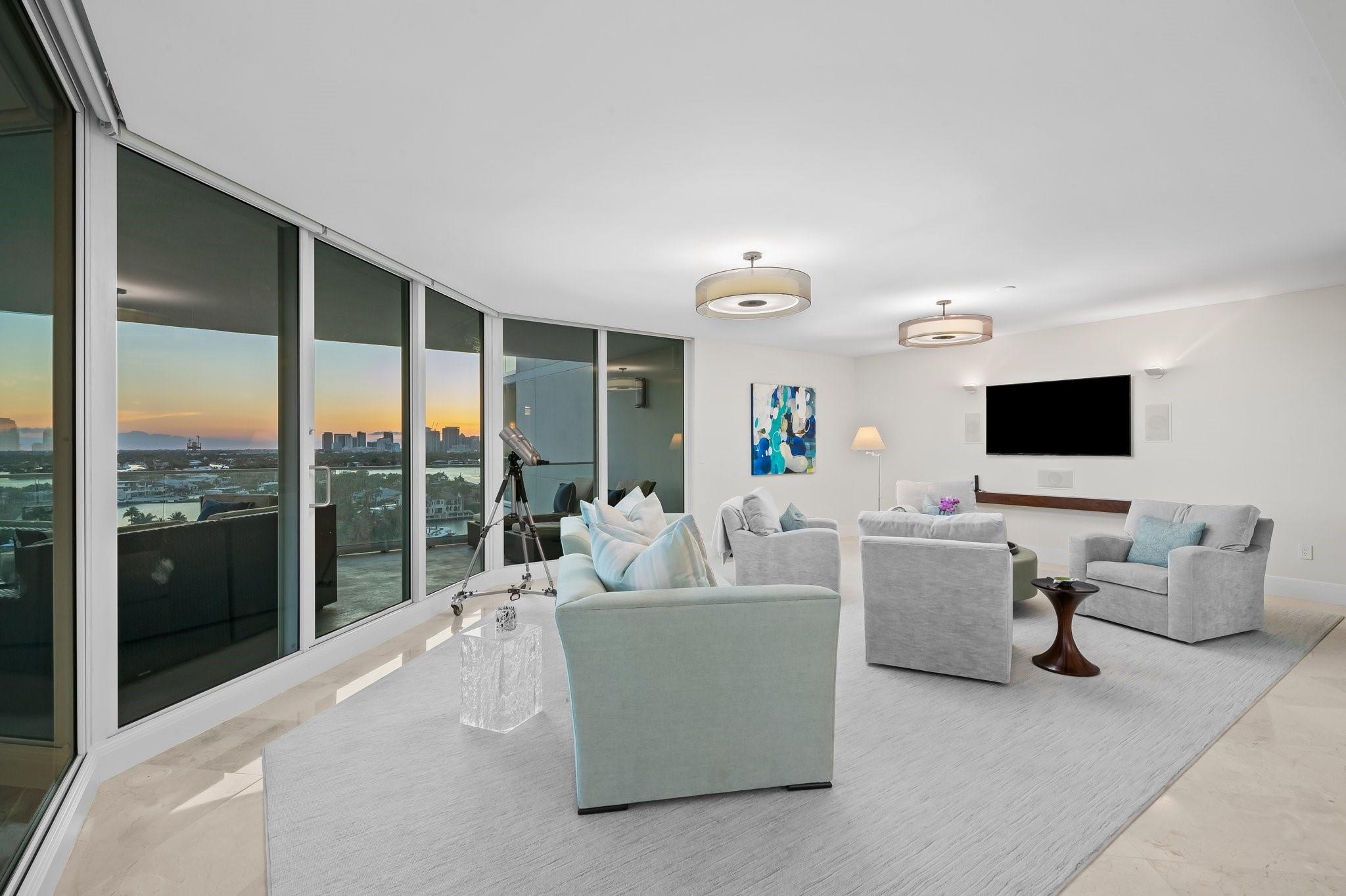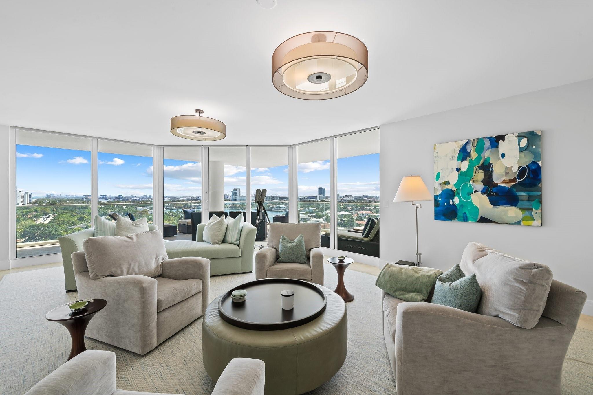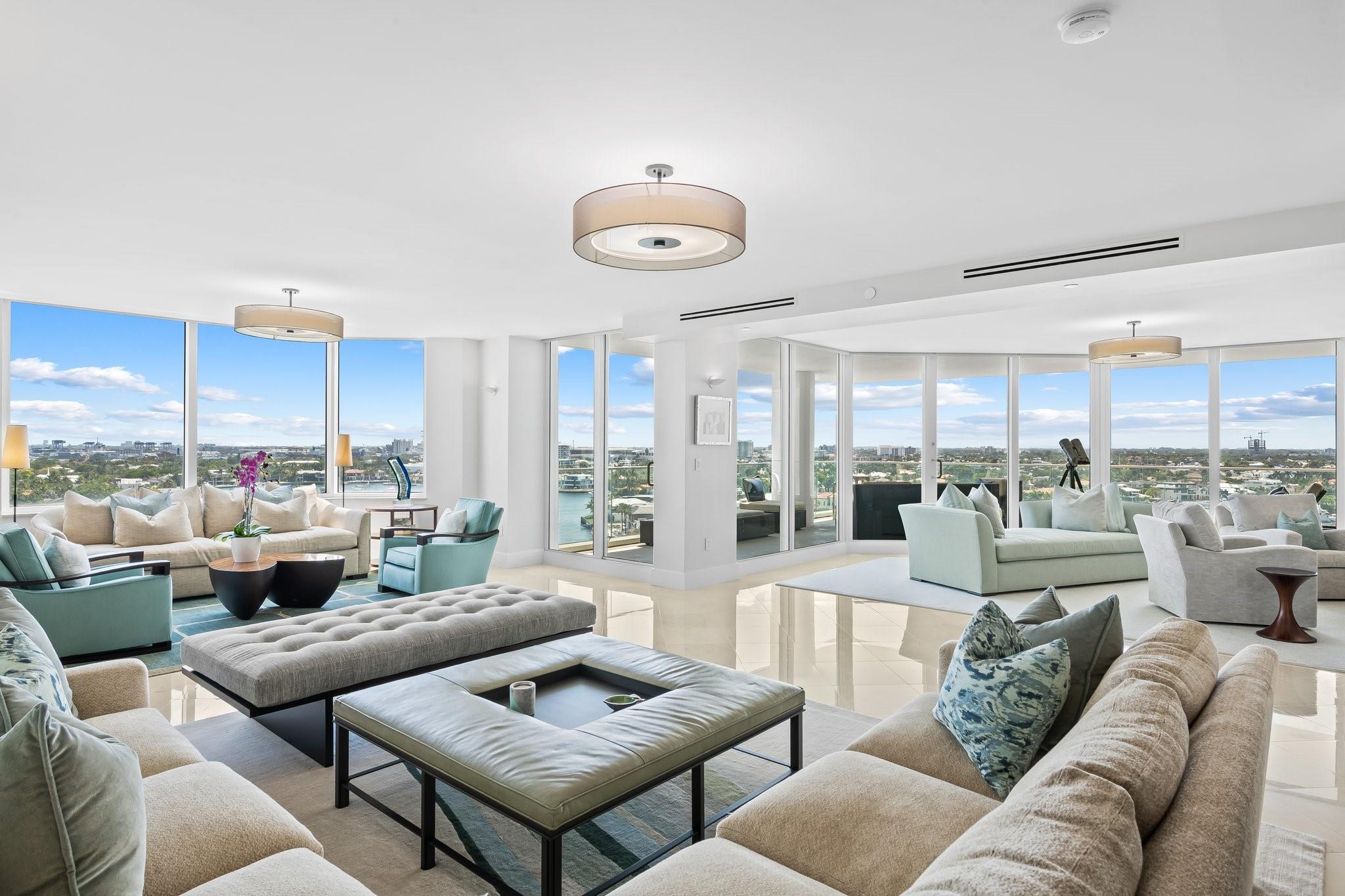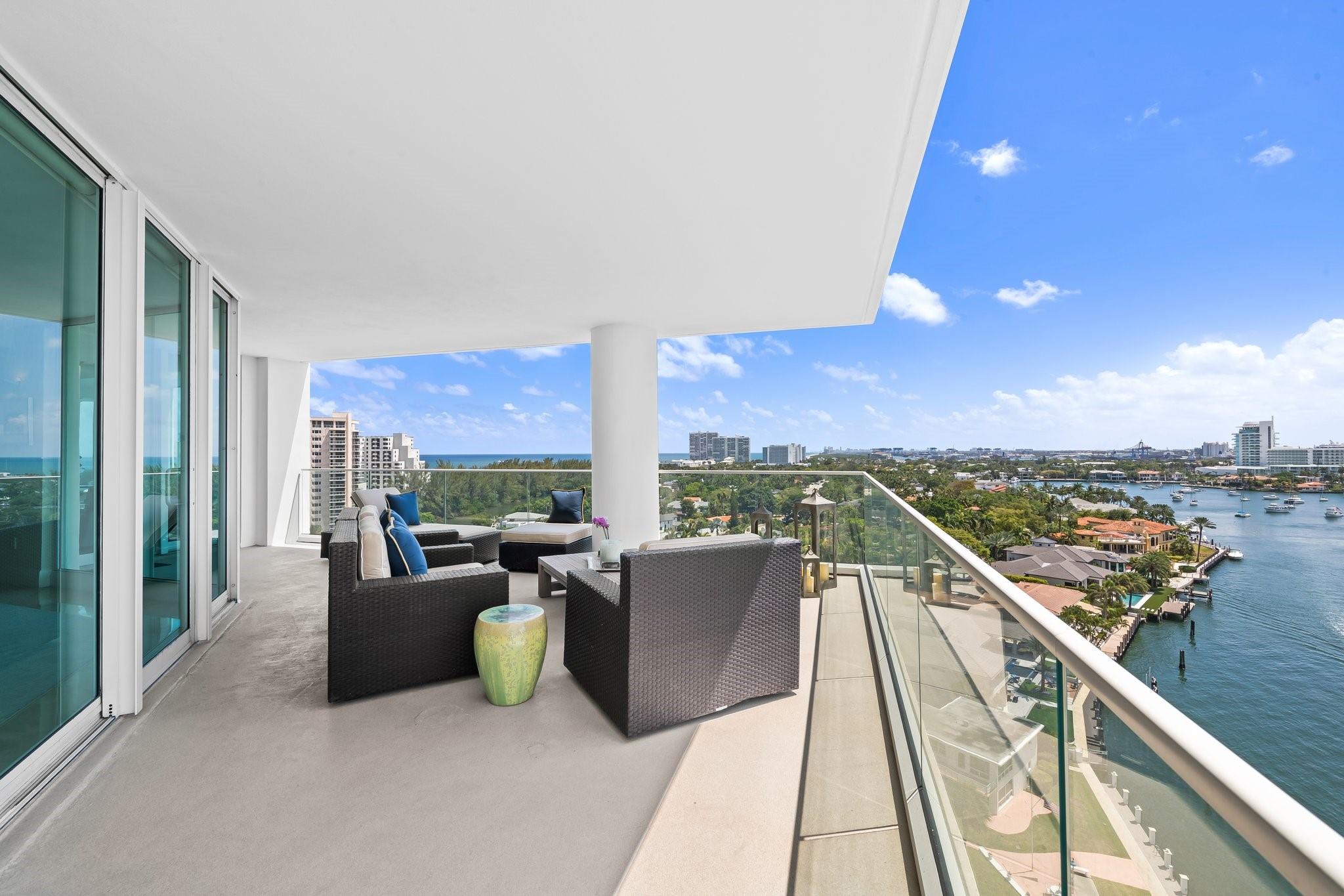 Experience luxury living on the vibrant Intracoastal in this elegantly furnished condo in Fort Lauderdale. With 3,368 square feet of beautifully designed interior space, this 3-bedroom, 2.5-bathroom residence offers breathtaking views of Fort Lauderdale, the Port, the Intracoastal Waterway, and Ocean. Nestled in a boutique building with just 44 units, this home features high ceilings and expansive windows that capture the scenic surroundings. Enjoy the expansive wrap-around balcony, perfect for soaking in the stunning vistas. The property boasts a waterfront barbq area and ocean access, ideal for leisure and entertainment. Appreciate the walkable neighborhood that's mere minutes from shopping, dining, and entertainment. This residence presents an unparalleled lifestyle opportunity!