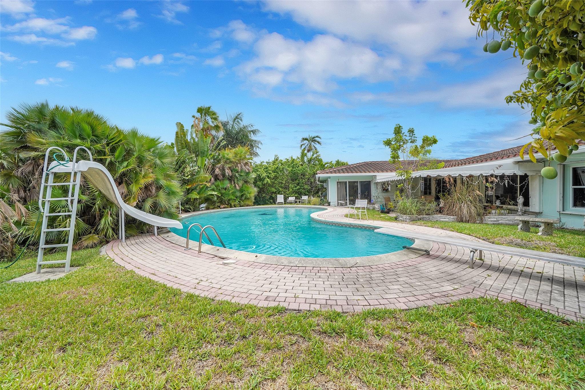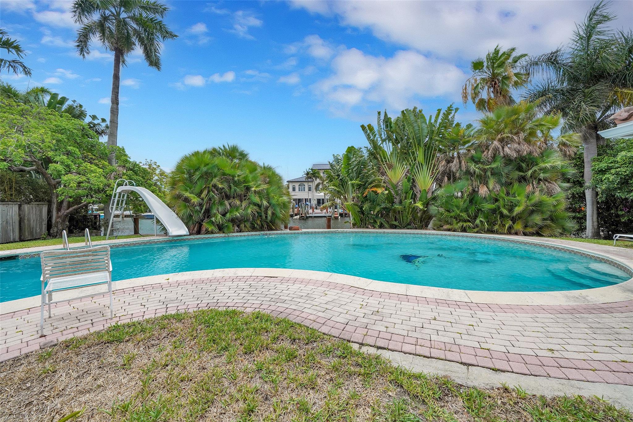 Incredible opportunity in one of Fort Lauderdale’s top waterfront neighborhoods! This 4-bed, 3-bath home sits on a 12,500 sq ft lot with 100 feet of deep water frontage, no fixed bridges, and direct ocean access—ideal for boaters or developers. Offering 2,648 sq ft of living space, the home features a spacious layout, large bedrooms, 2 car garage, and a private dock, pool, water slide, and outdoor entertaining areas. Spacious open floor plan ideal for today's living. Located minutes from the beach, Coral Ridge Country Club, top rated schools, and shopping. Surrounded by luxury homes, this property has huge upside potential to create a custom waterfront estate in a premier location.